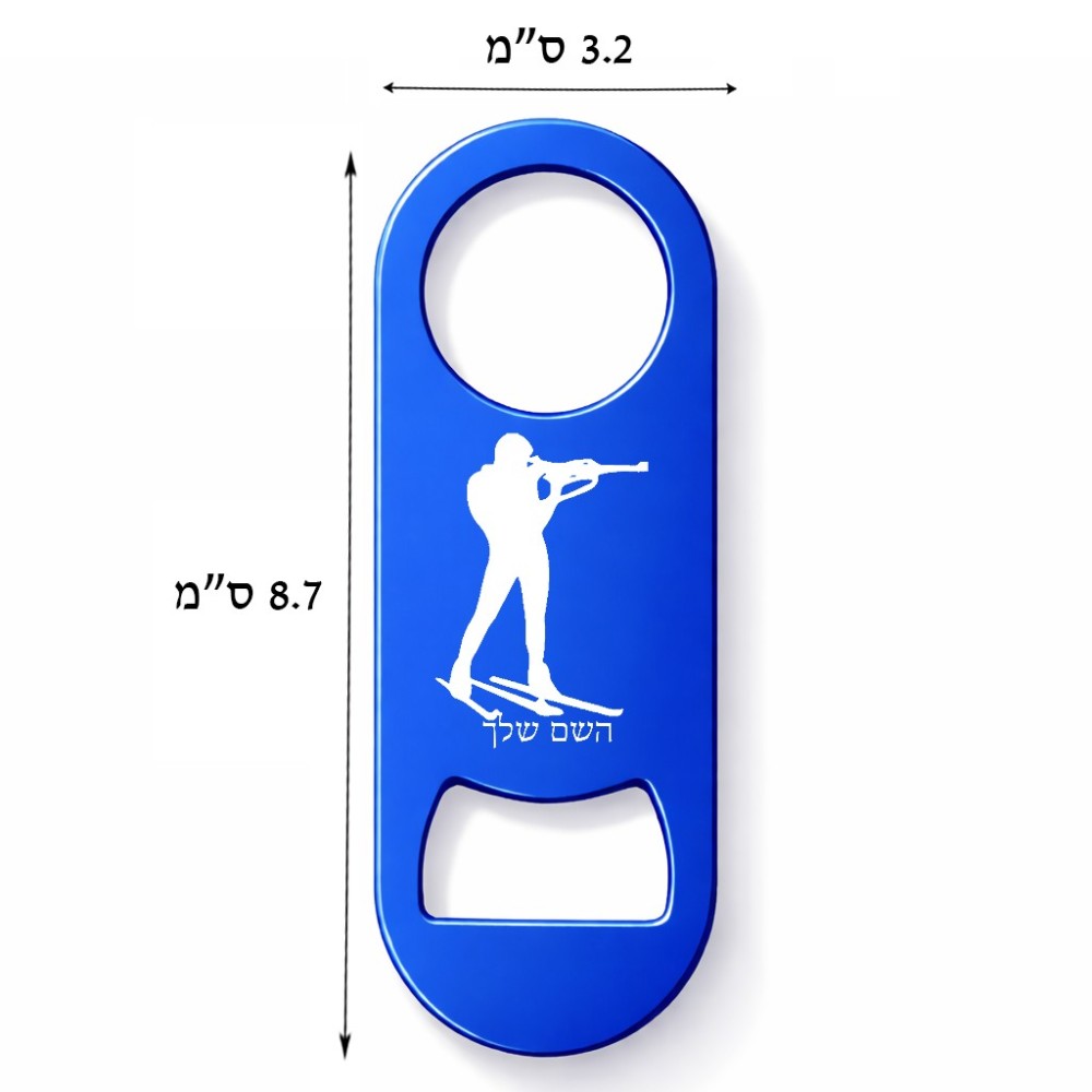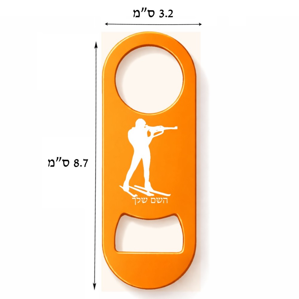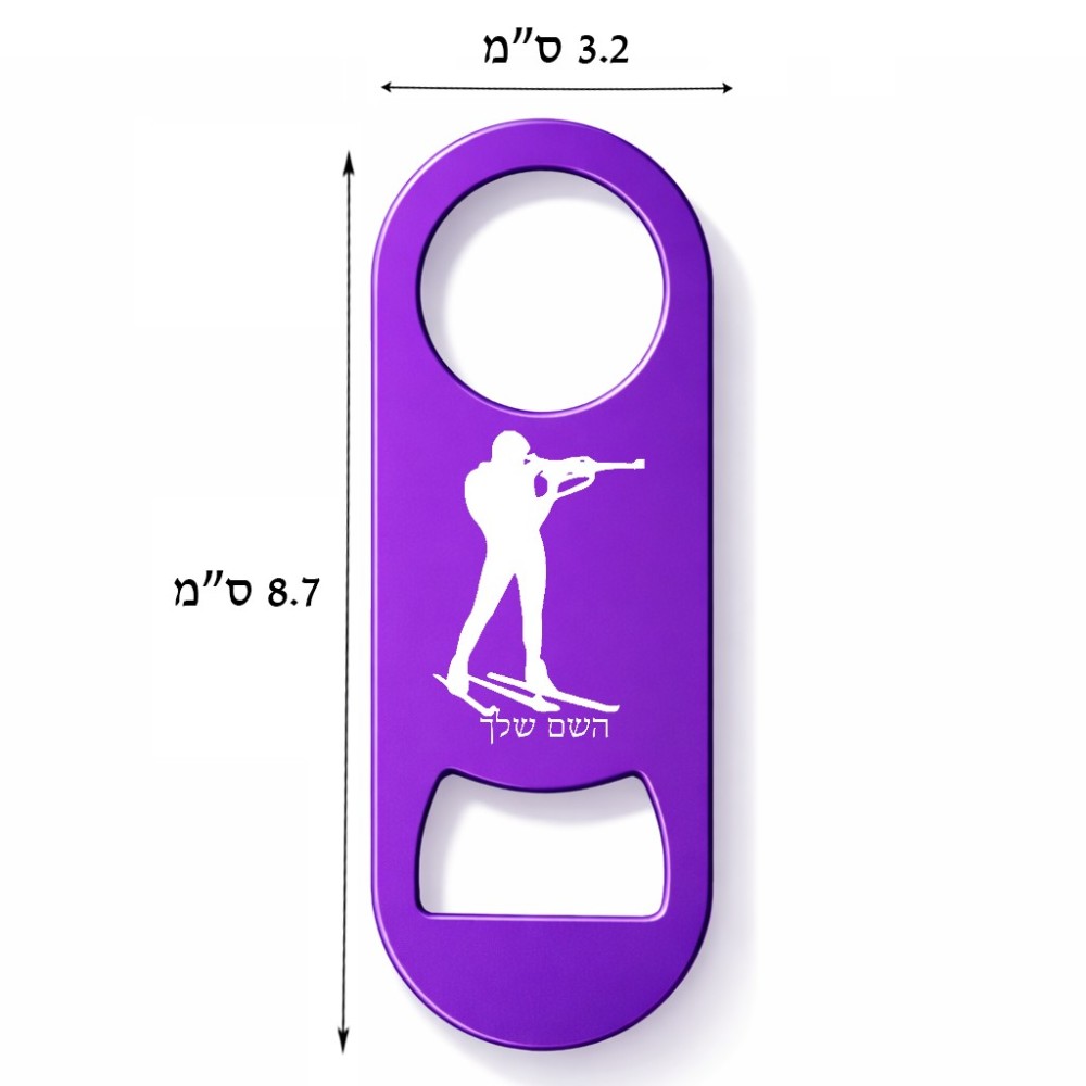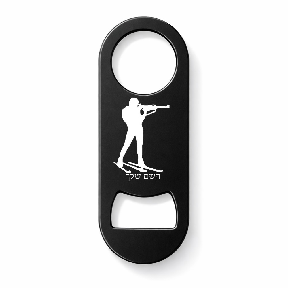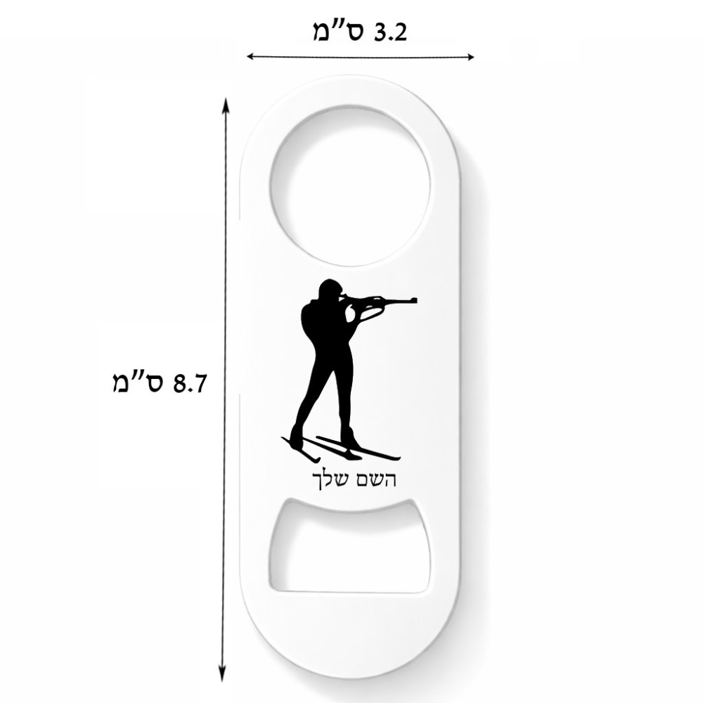 פותחן בקבוקים בעיצוב אישי עם השם שלך בעיצוב ביאתלון גודל הפותחן 3.2 × 8.7 ס"מ