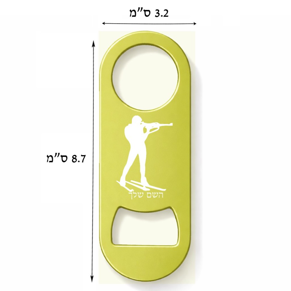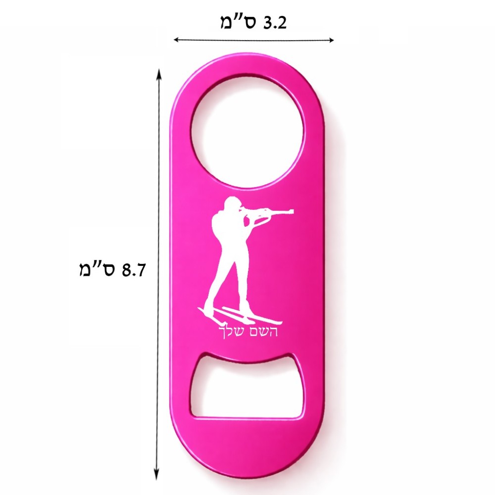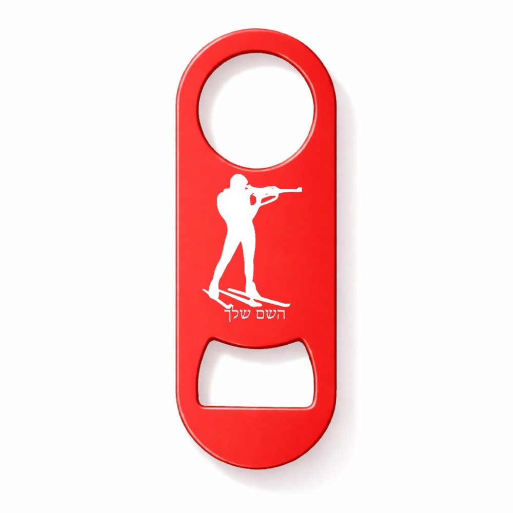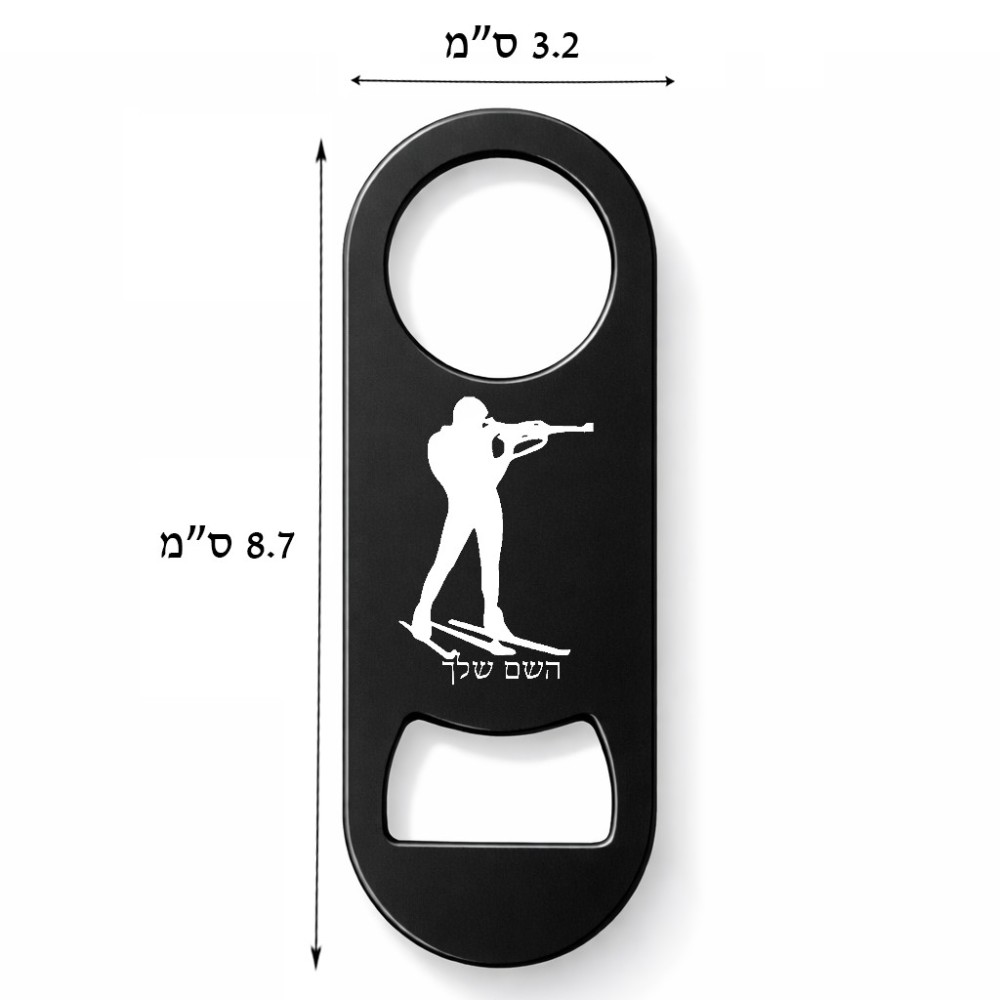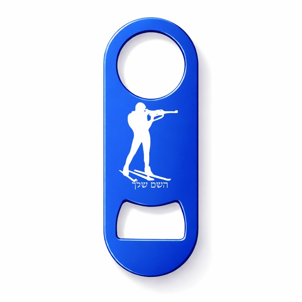 פותחן בקבוקים בעיצוב אישי עם השם שלך בעיצוב ביאתלון גודל הפותחן 3.2 × 8.7 ס"מ