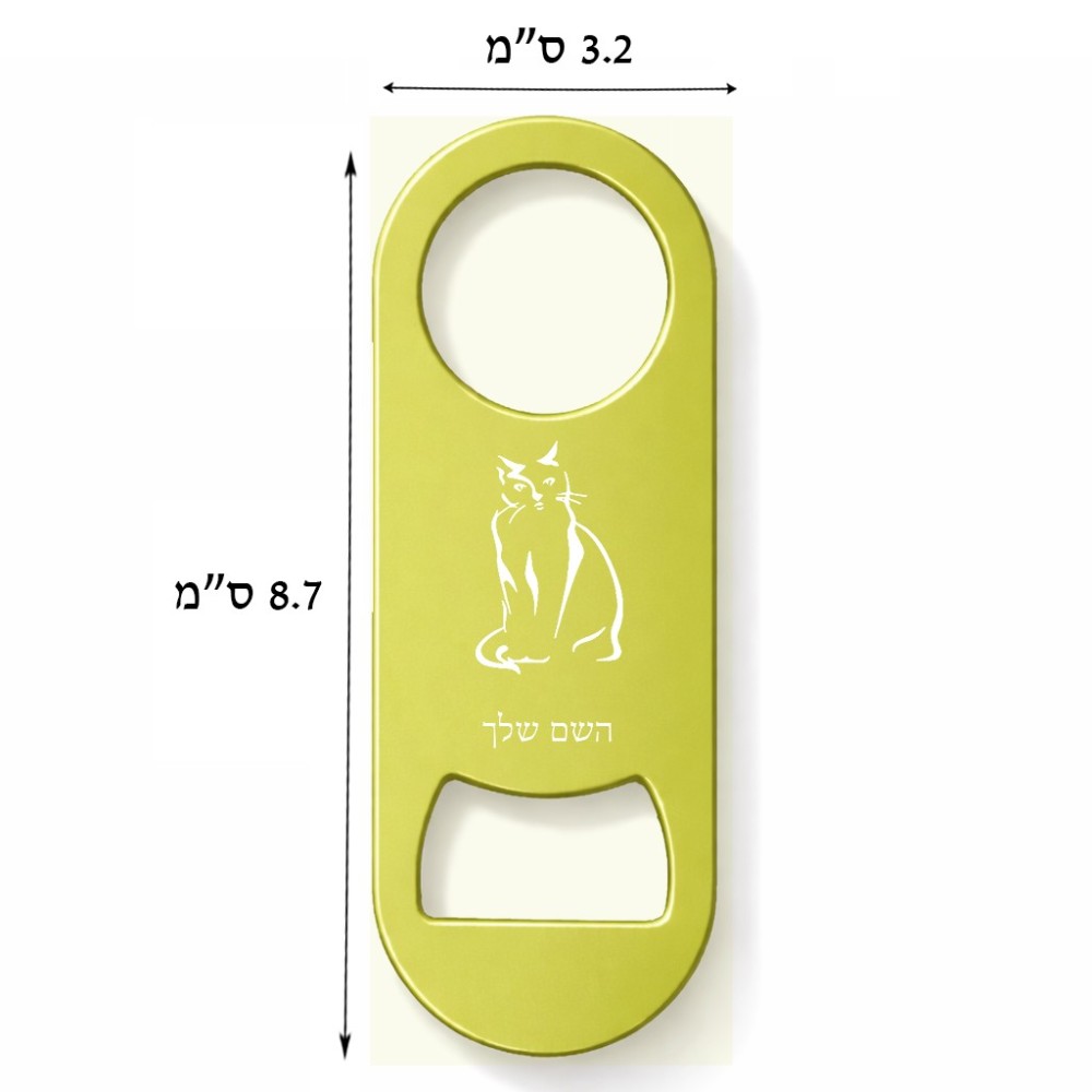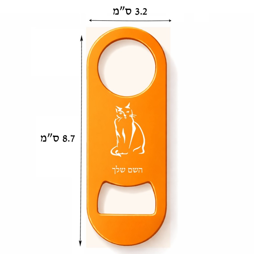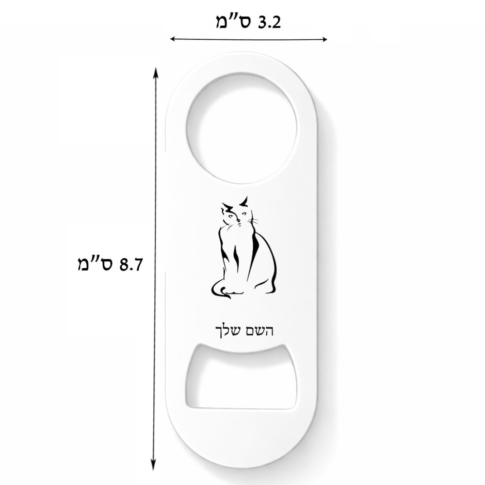 פותחן בקבוקים בעיצוב אישי עם השם שלך בעיצוב חתול. את השם המבוקש ניתן לציין בהזמנה, אם לא צויין אנחנו ניצור קשר לבירור.