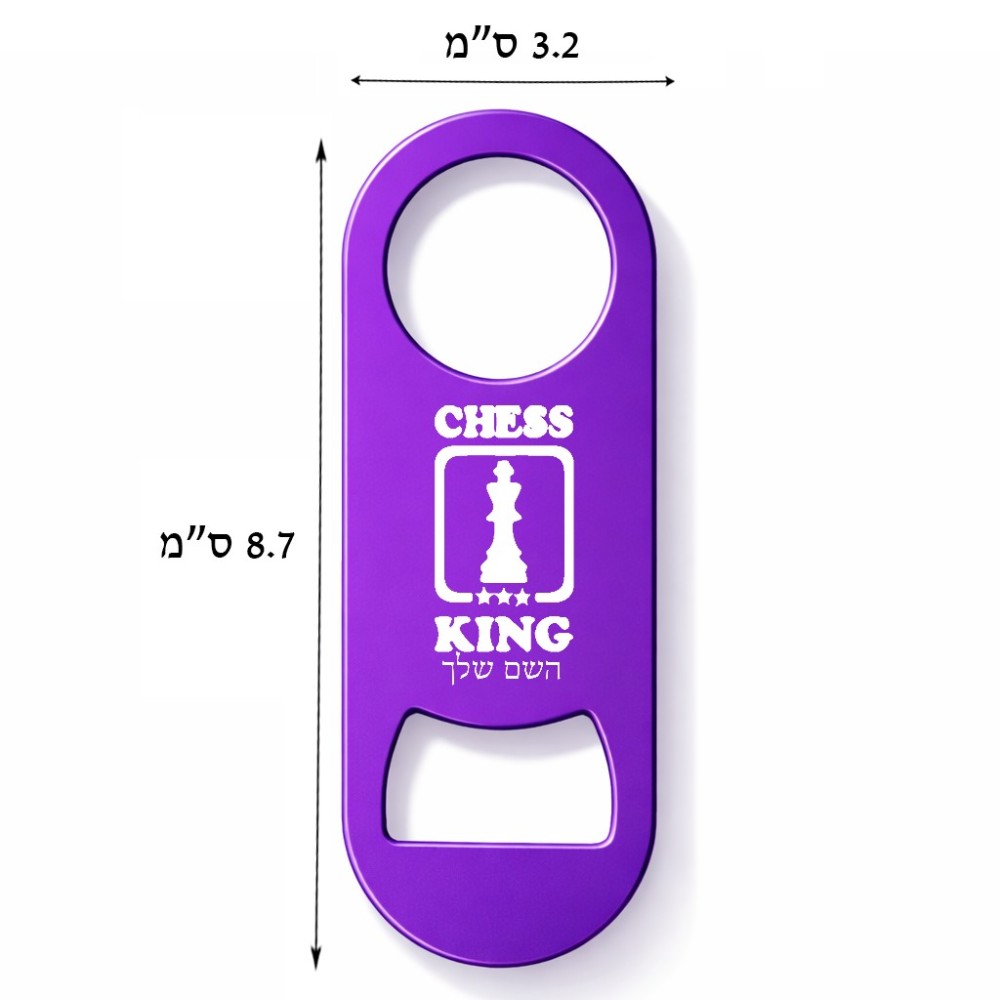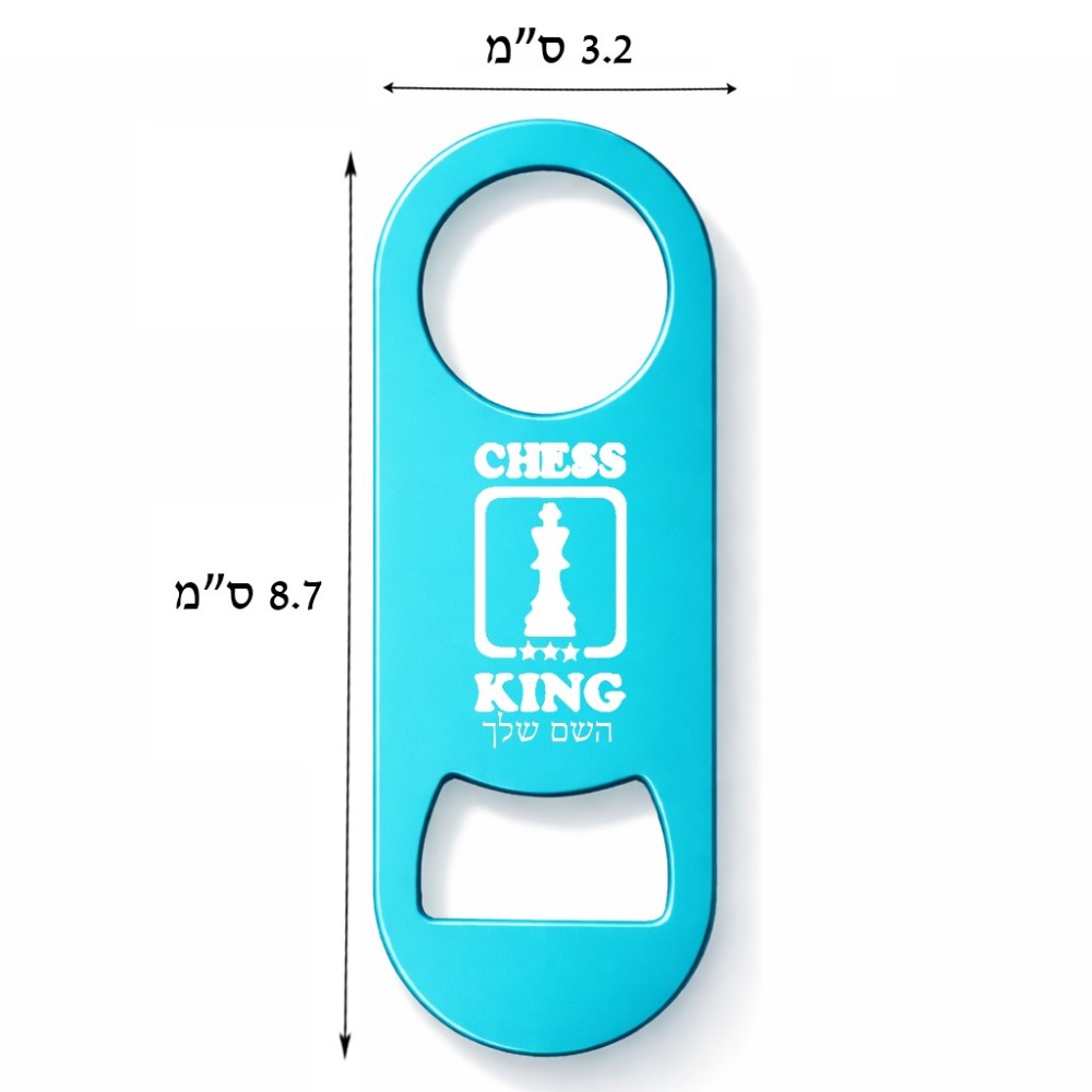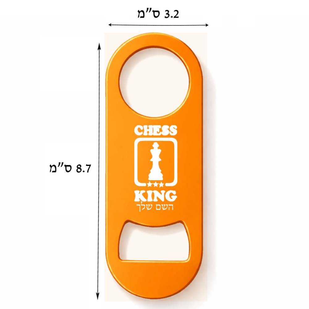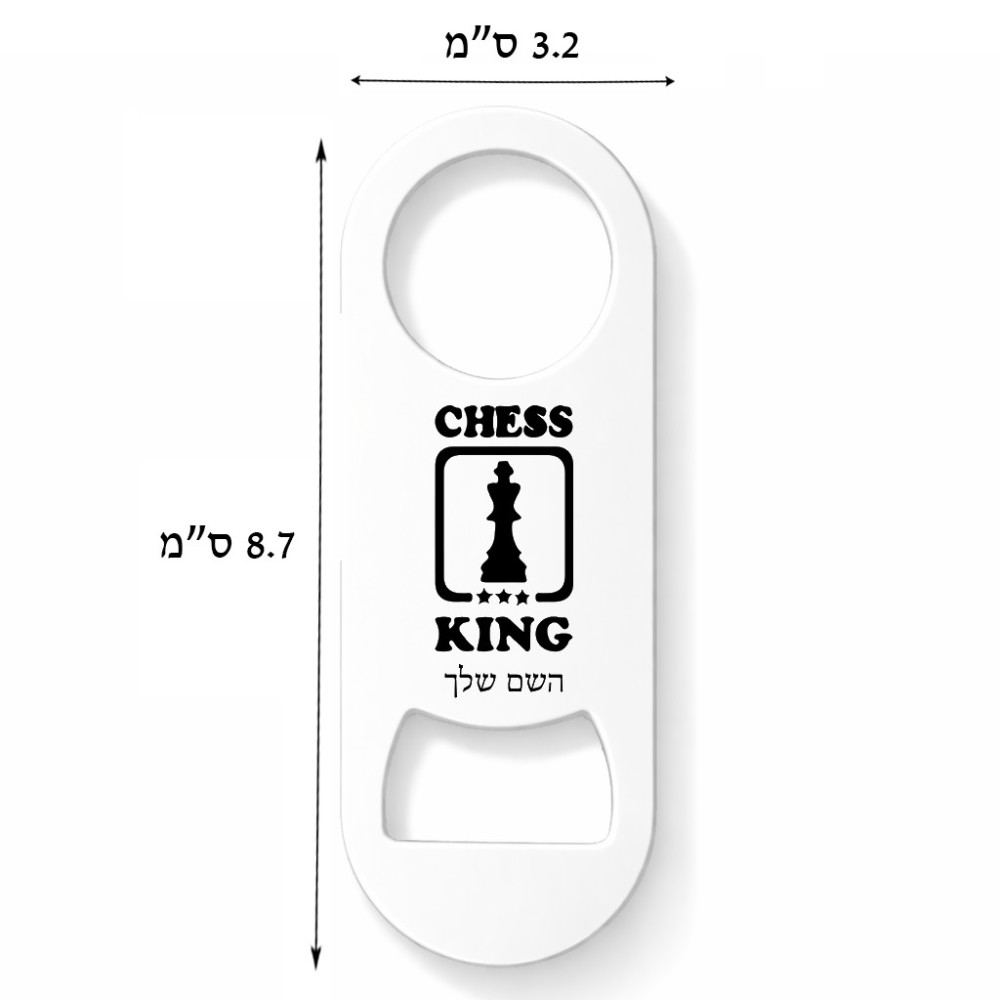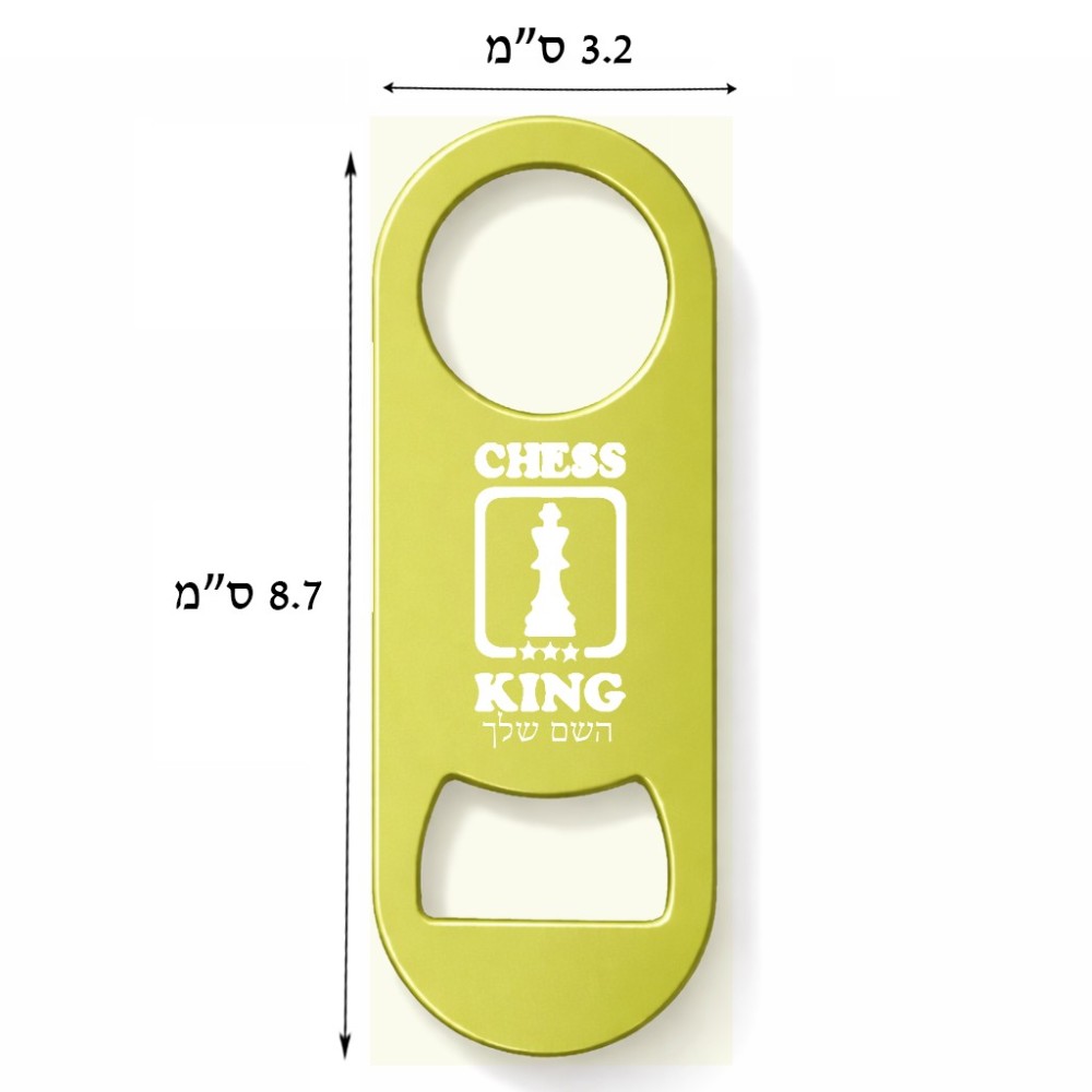 פותחן בקבוקים בעיצוב אישי עם השם שלך בעיצוב שחמט גודל הפותחן 3.2 × 8.7 ס"מ