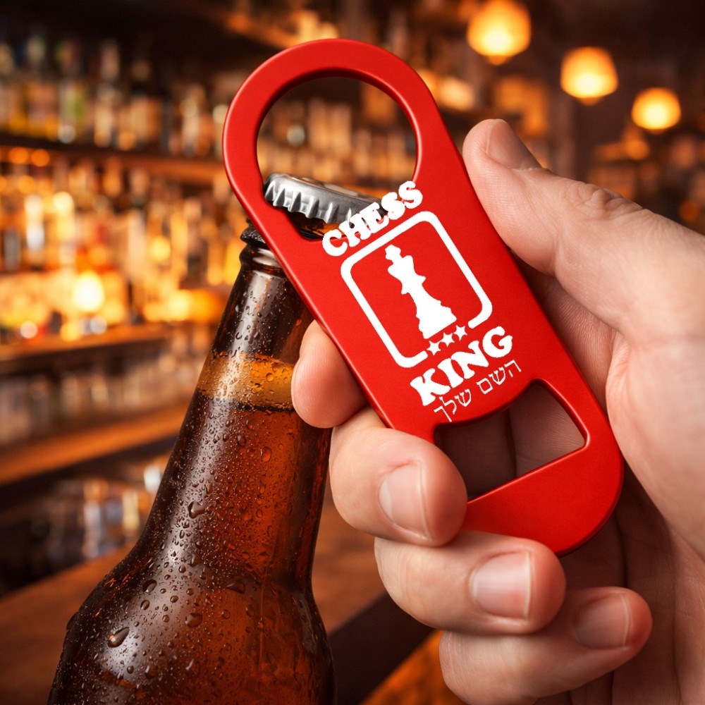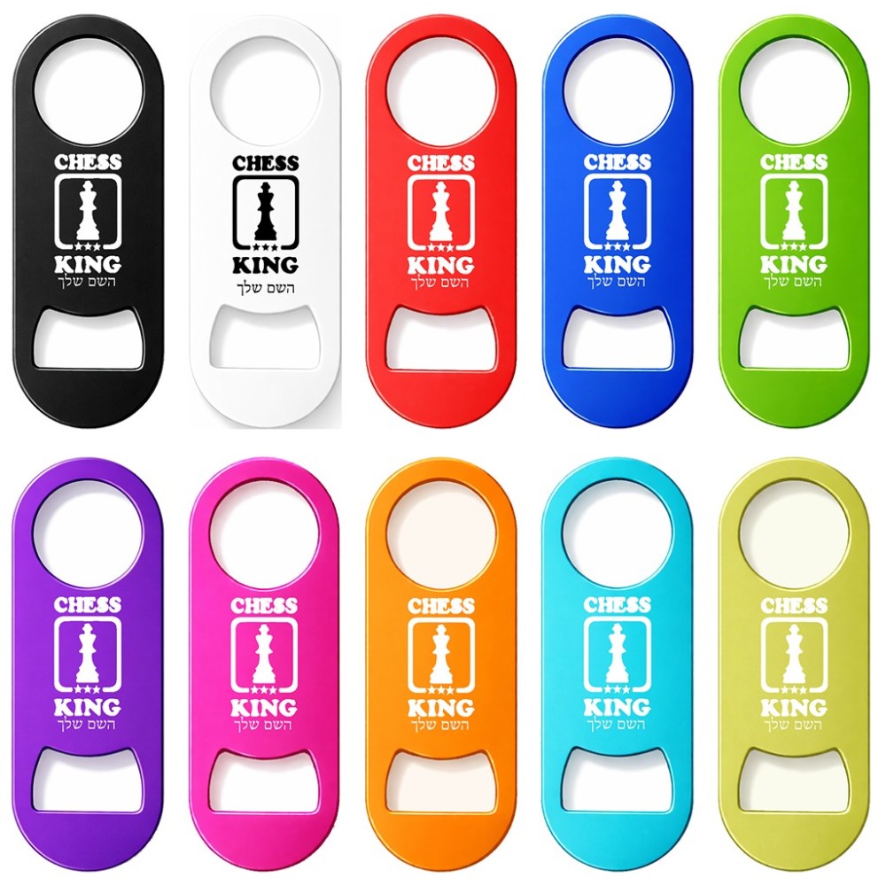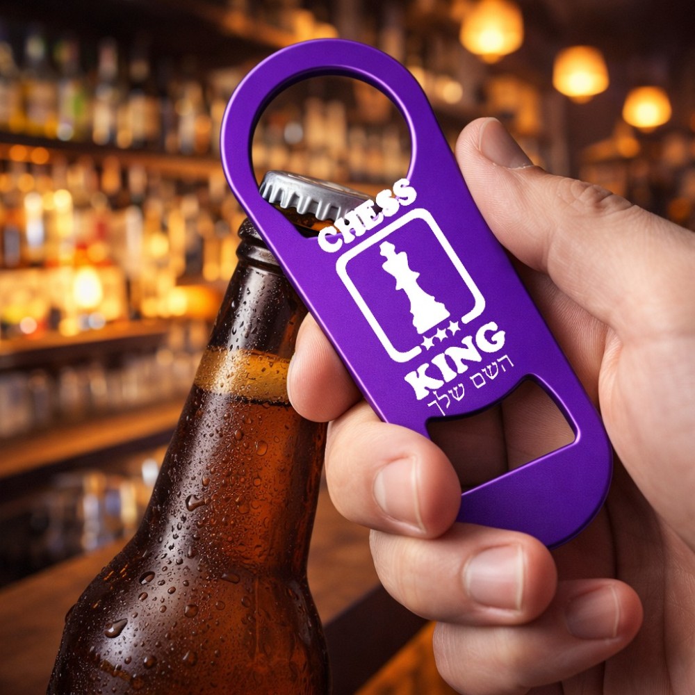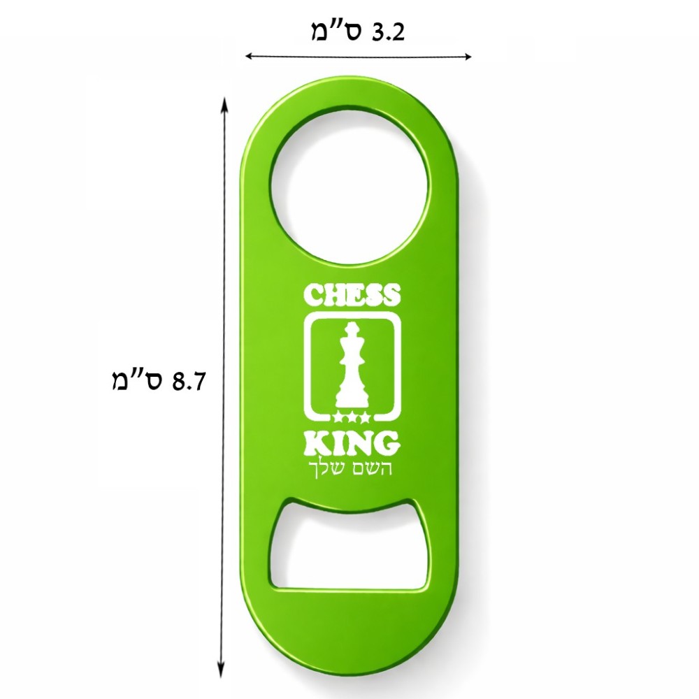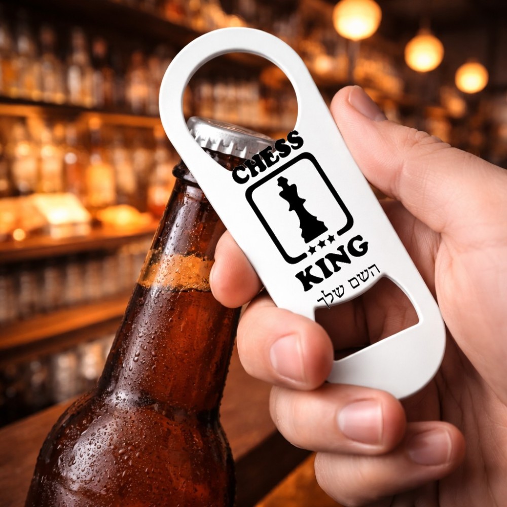 פותחן בקבוקים בעיצוב אישי עם השם שלך בעיצוב שחמט גודל הפותחן 3.2 × 8.7 ס"מ