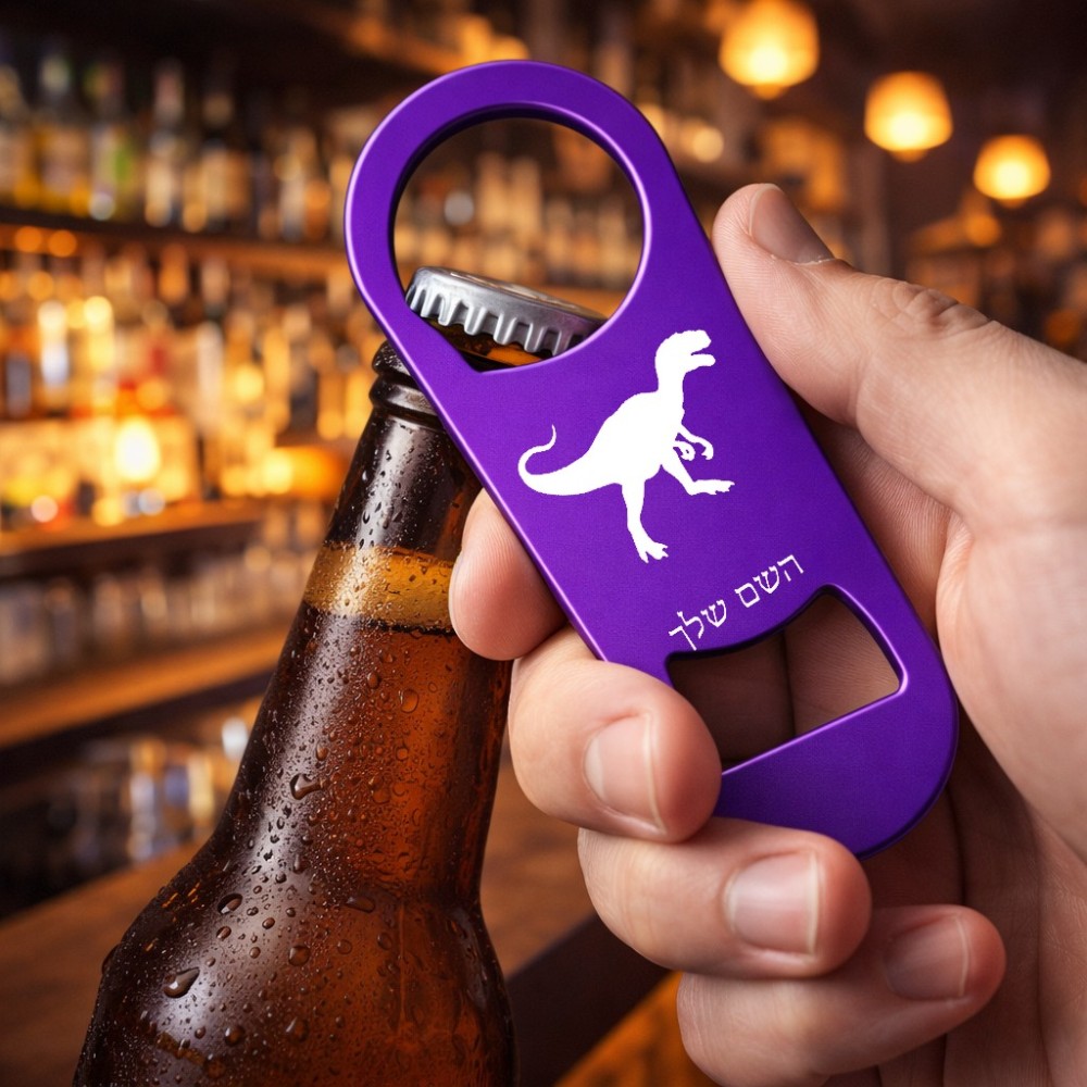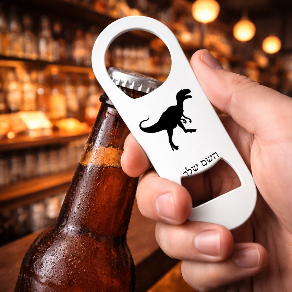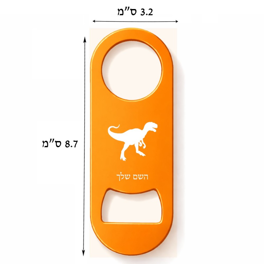 פותחן בקבוקים בעיצוב אישי עם השם שלך בעיצוב דינוזאור. את השם המבוקש ניתן לציין בהזמנה, אם לא צויין אנחנו ניצור קשר לבירור.