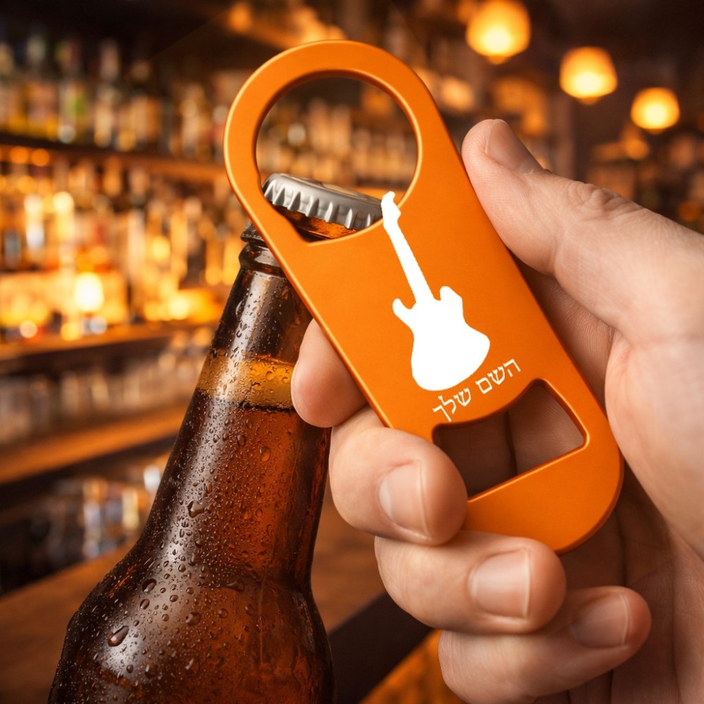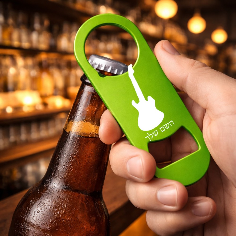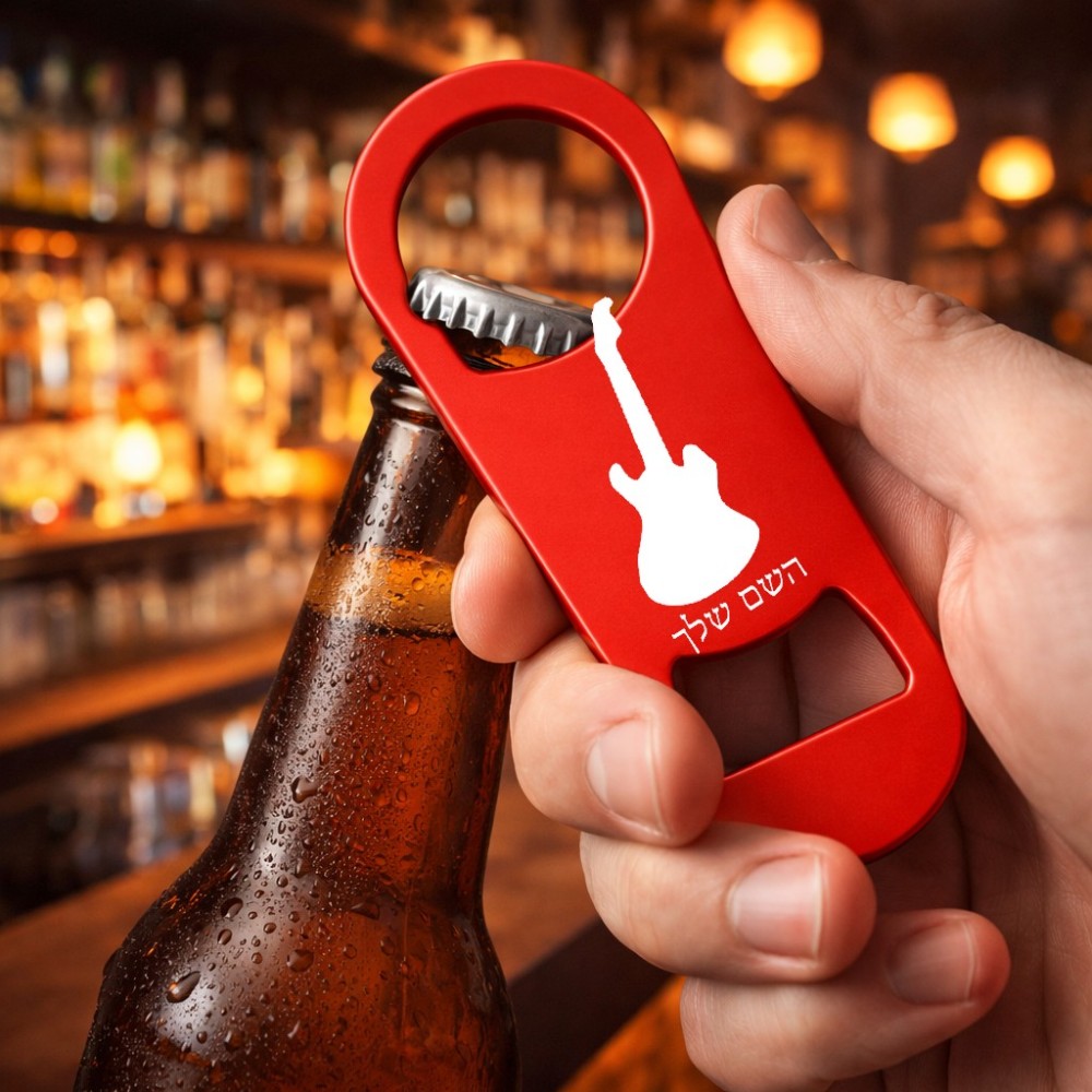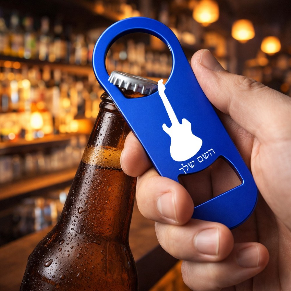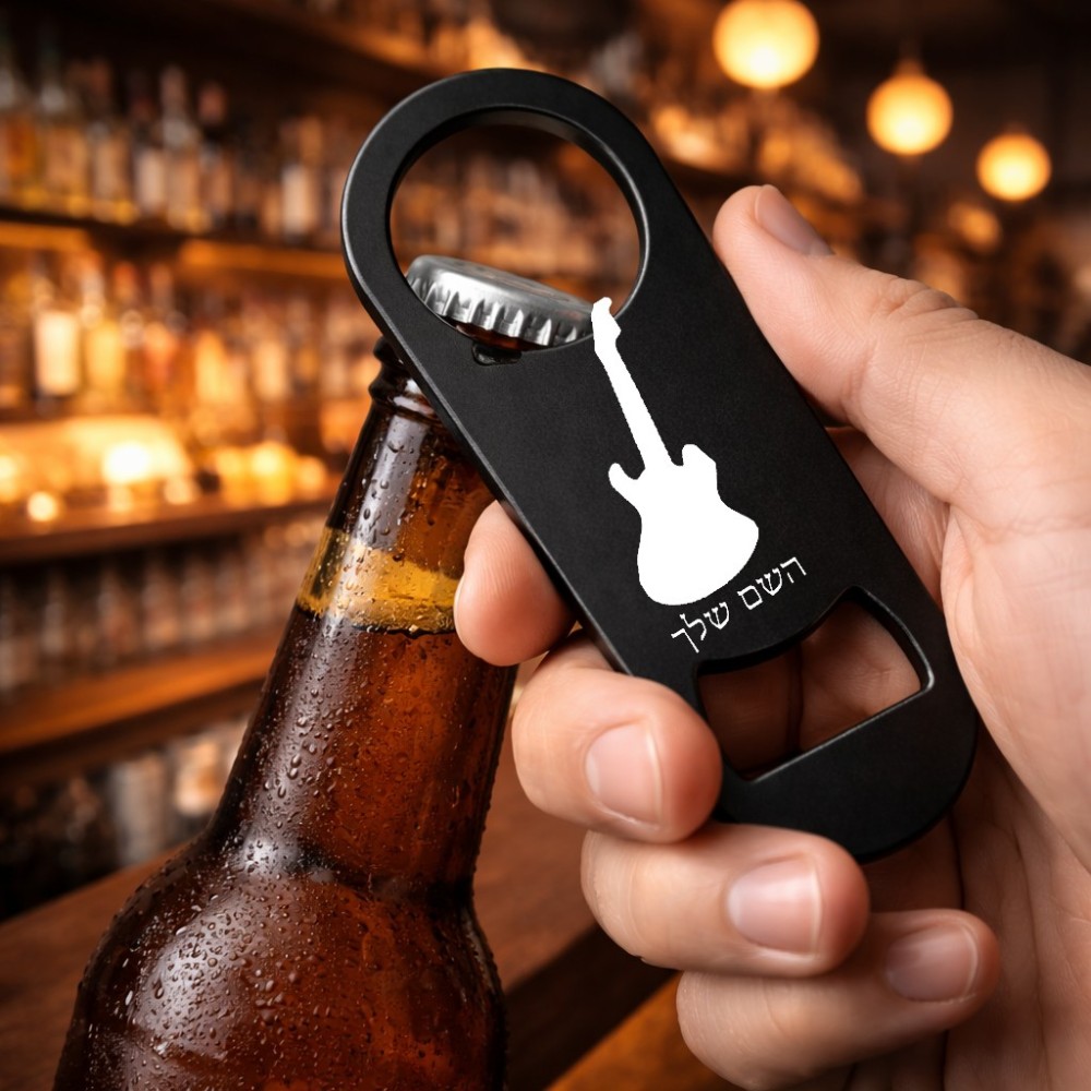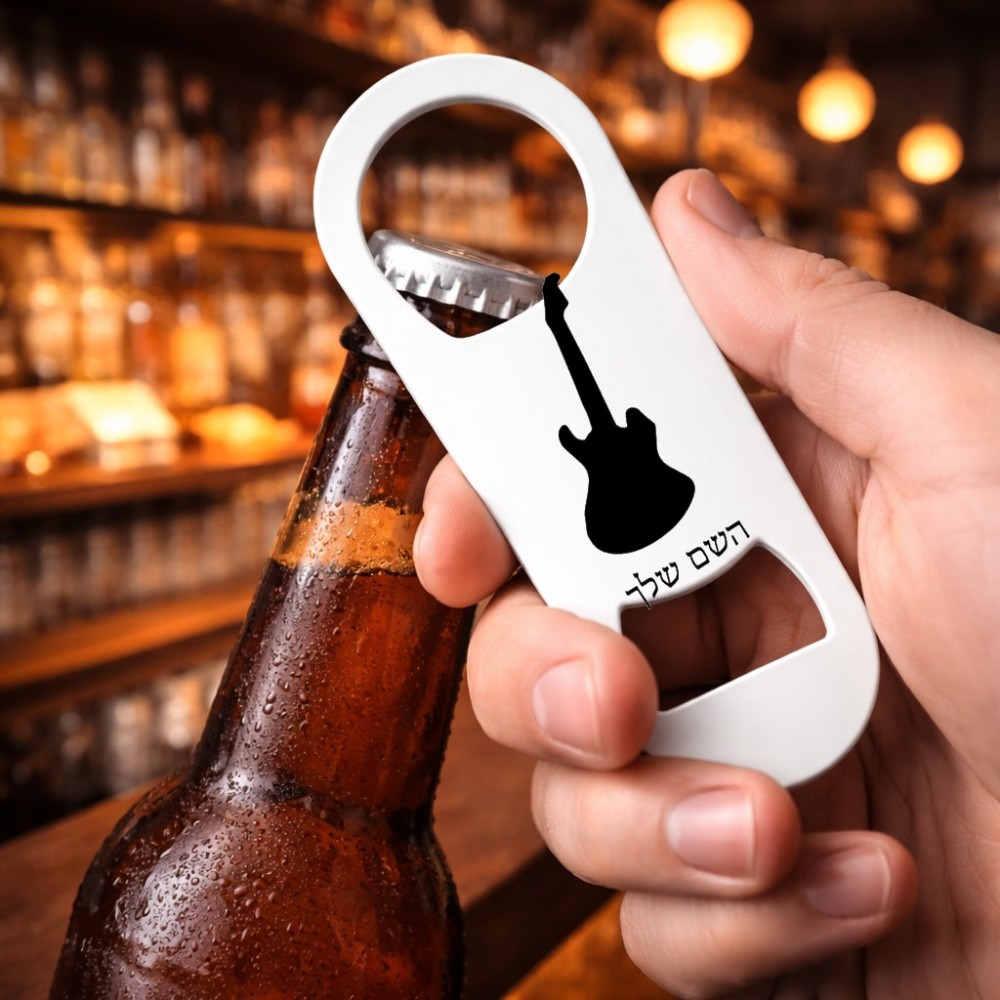 פותחן בקבוקים בעיצוב אישי עם השם שלך בעיצוב גיטרה. את השם המבוקש ניתן לציין בהזמנה, אם לא צויין אנחנו ניצור קשר לבירור.