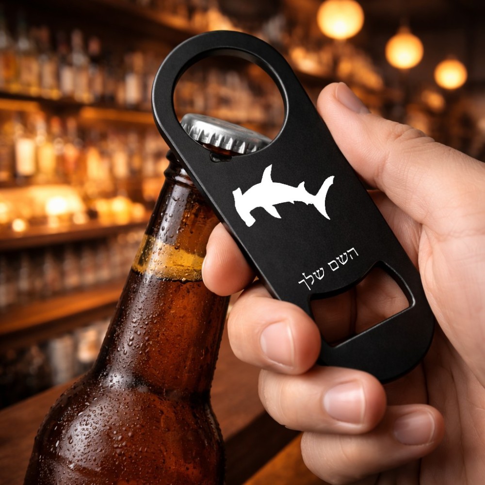 פותחן בקבוקים בעיצוב אישי עם השם שלך בעיצוב כריש ראש פטיש. את השם המבוקש ניתן לציין בהזמנה, אם לא צויין אנחנו ניצור קשר לבירור.