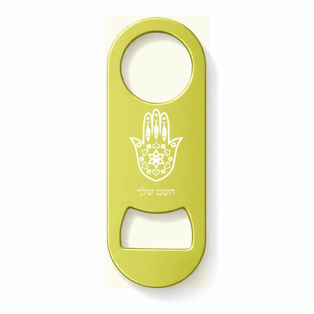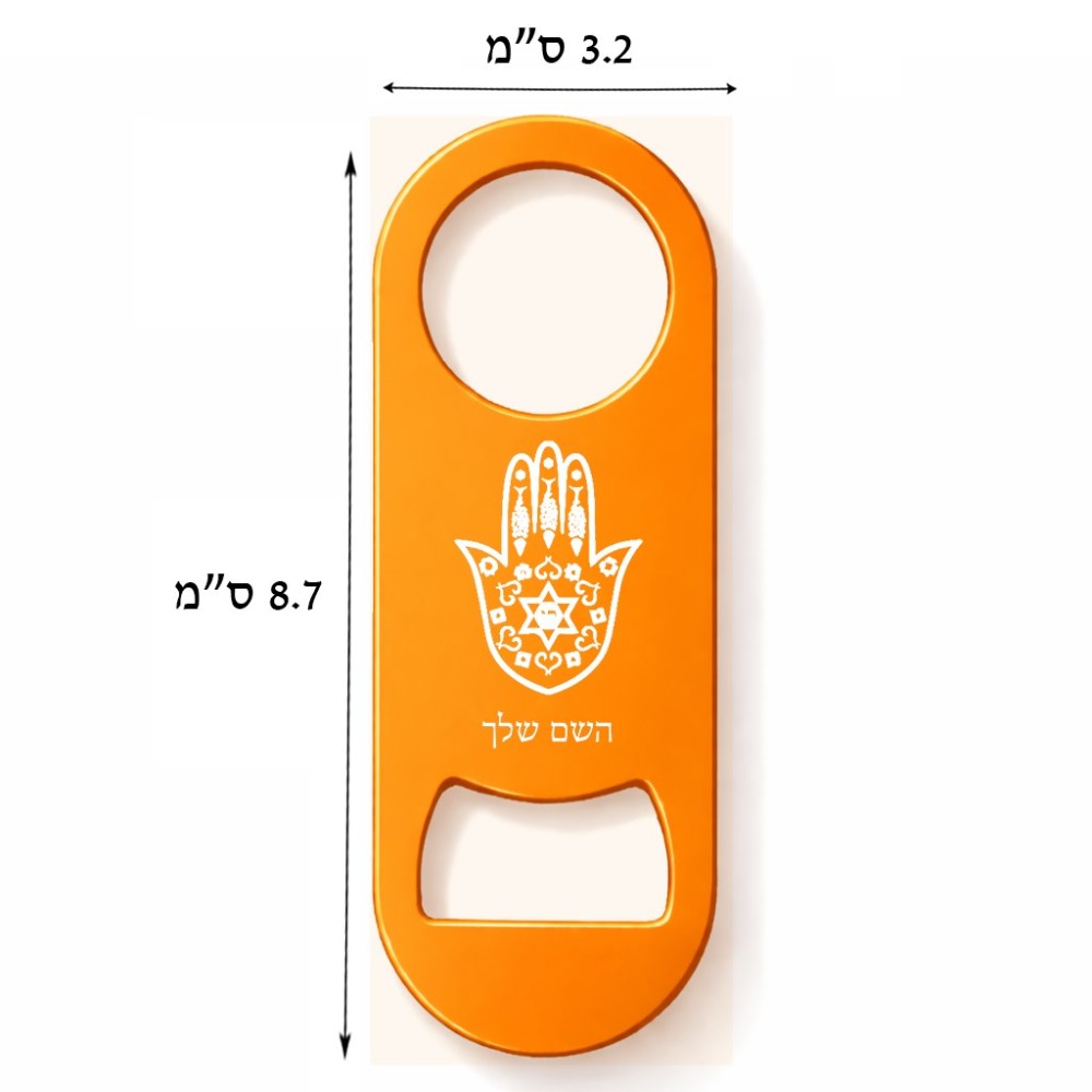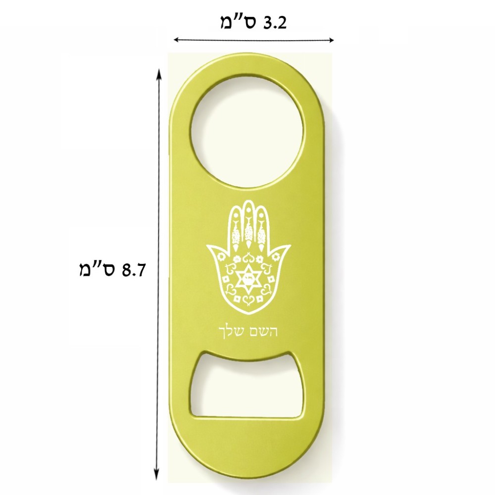פותחן בקבוקים בעיצוב אישי עם השם שלך בעיצוב חמסה - קבלה גודל הפותחן 3.2 × 8.7 ס"מ