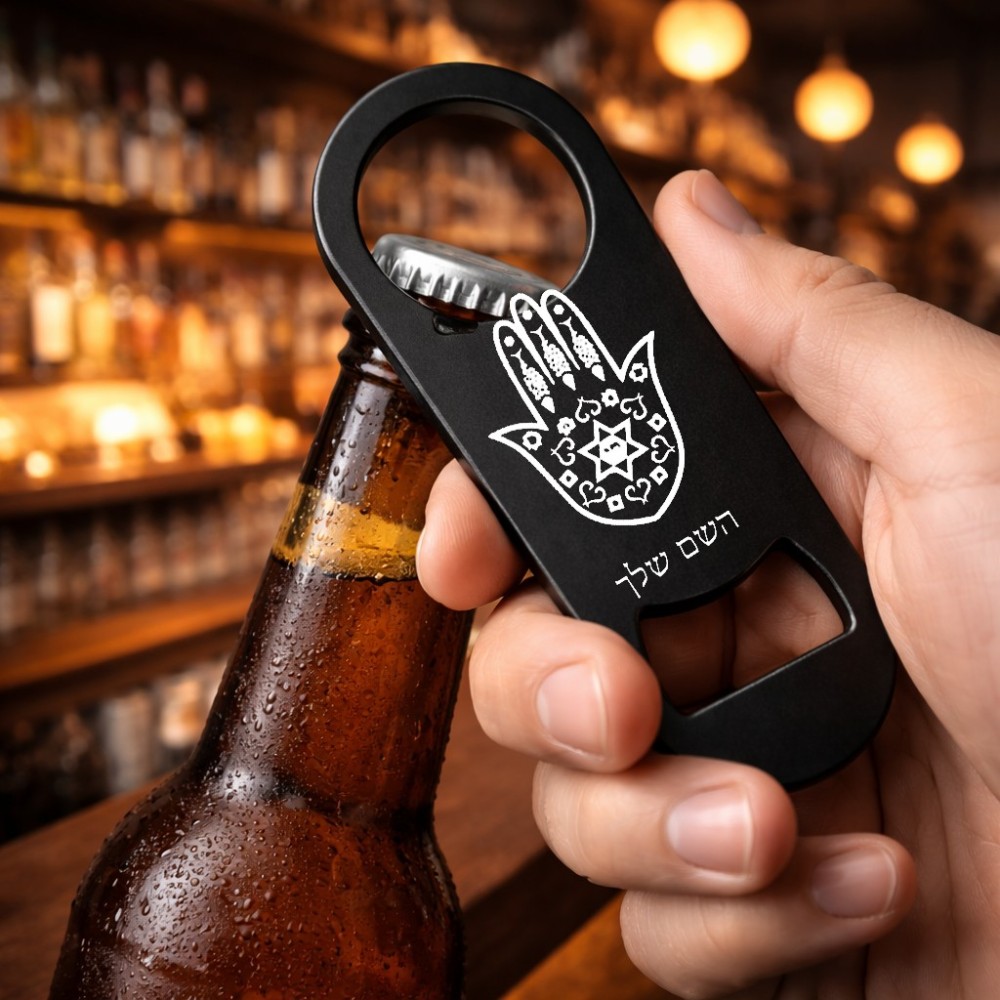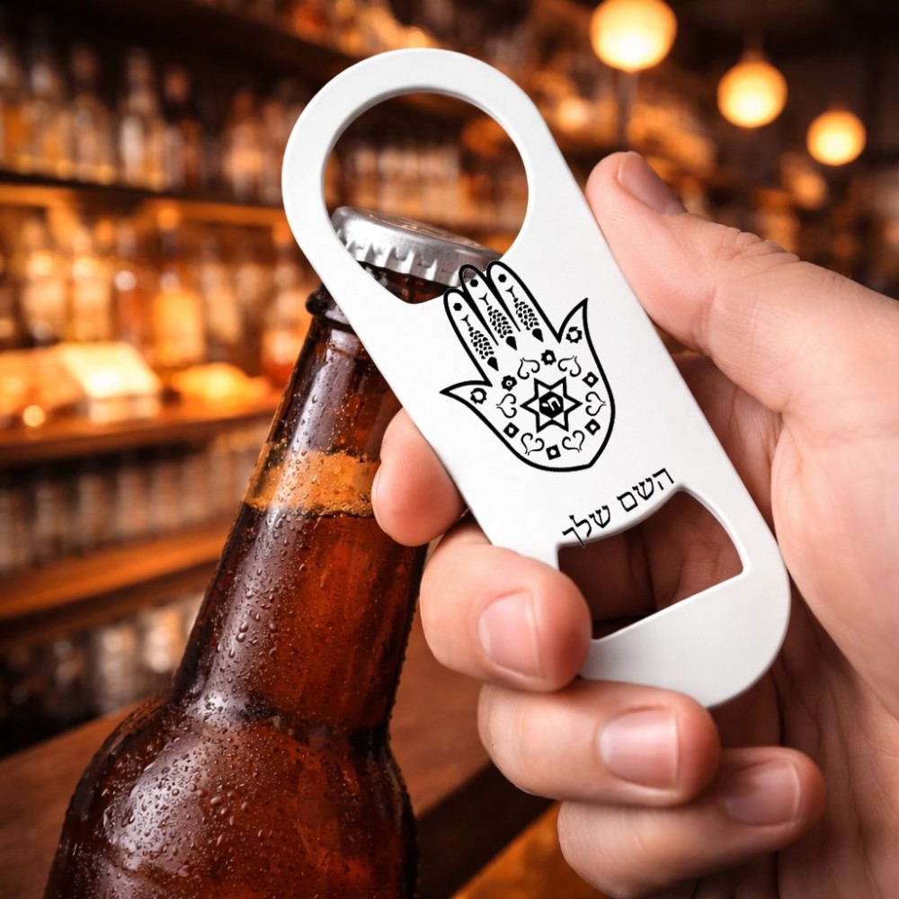 פותחן בקבוקים בעיצוב אישי עם השם שלך בעיצוב חמסה - קבלה. את השם המבוקש ניתן לציין בהזמנה, אם לא צויין אנחנו ניצור קשר לבירור.