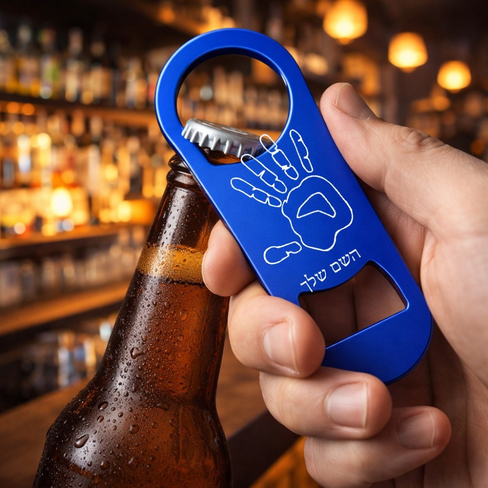 פותחן בקבוקים בעיצוב אישי עם השם שלך בעיצוב יד. את השם המבוקש ניתן לציין בהזמנה, אם לא צויין אנחנו ניצור קשר לבירור.
