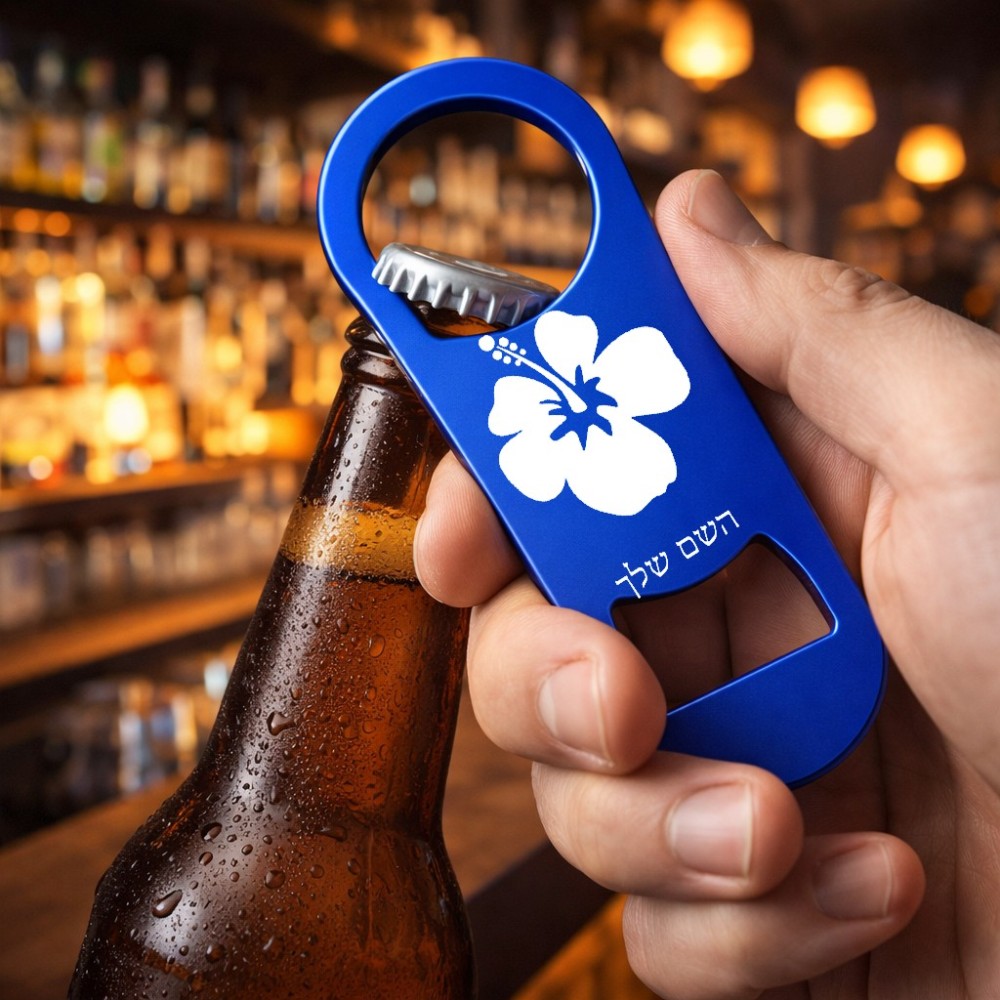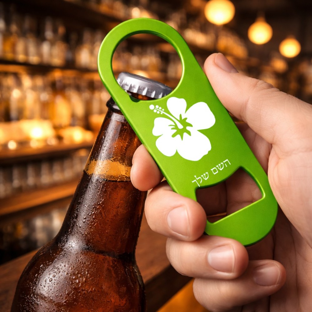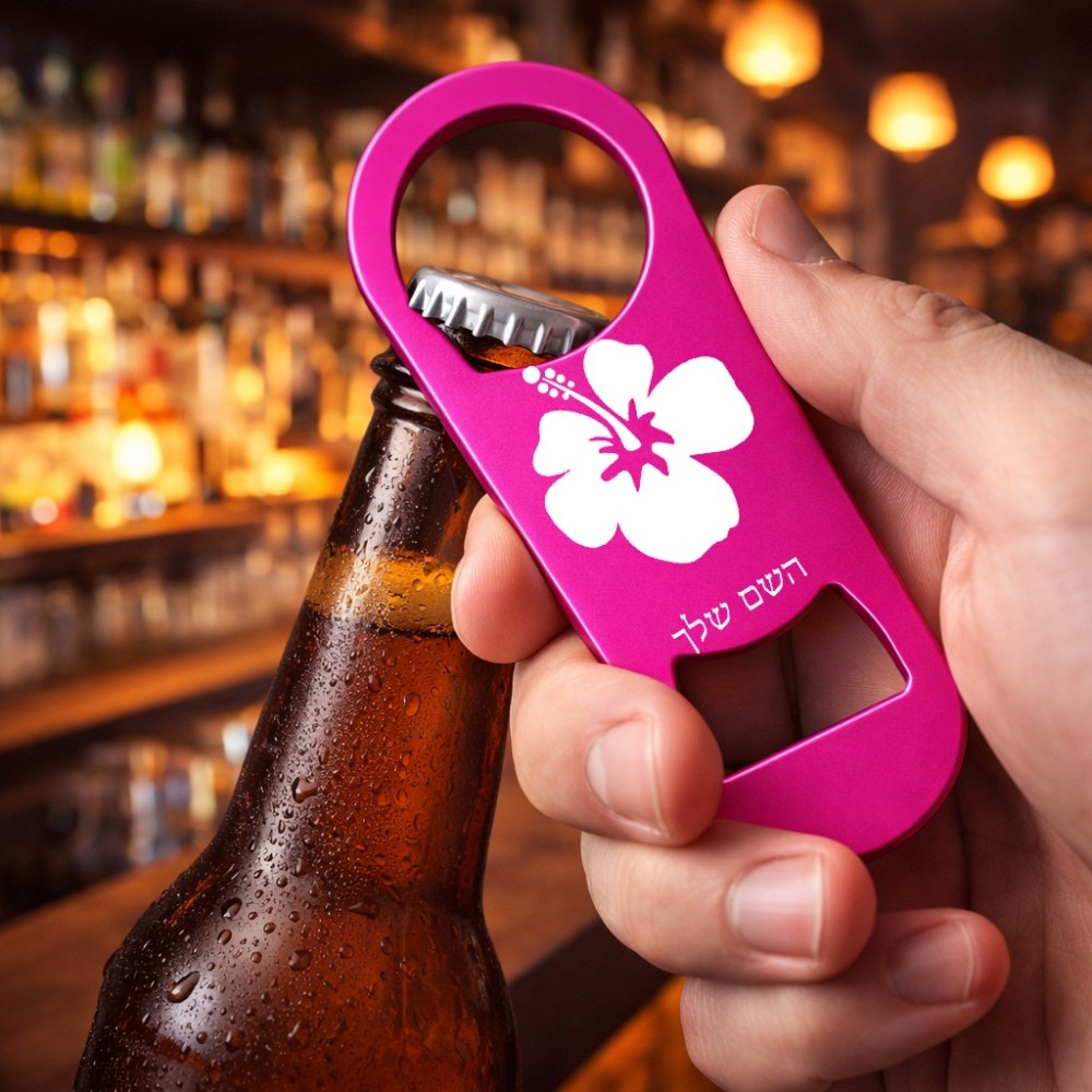 פותחן בקבוקים בעיצוב אישי עם השם שלך בעיצוב פרח היביסקוס. את השם המבוקש ניתן לציין בהזמנה, אם לא צויין אנחנו ניצור קשר לבירור.