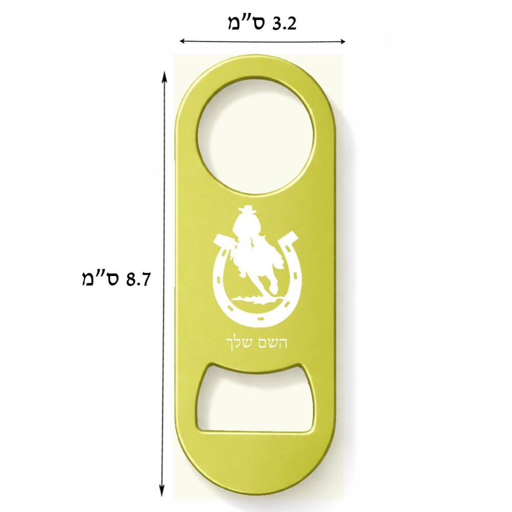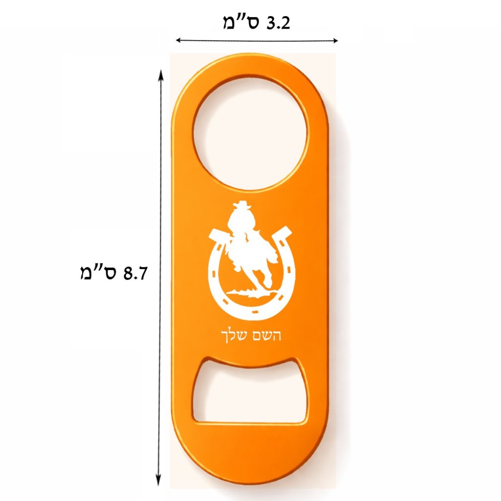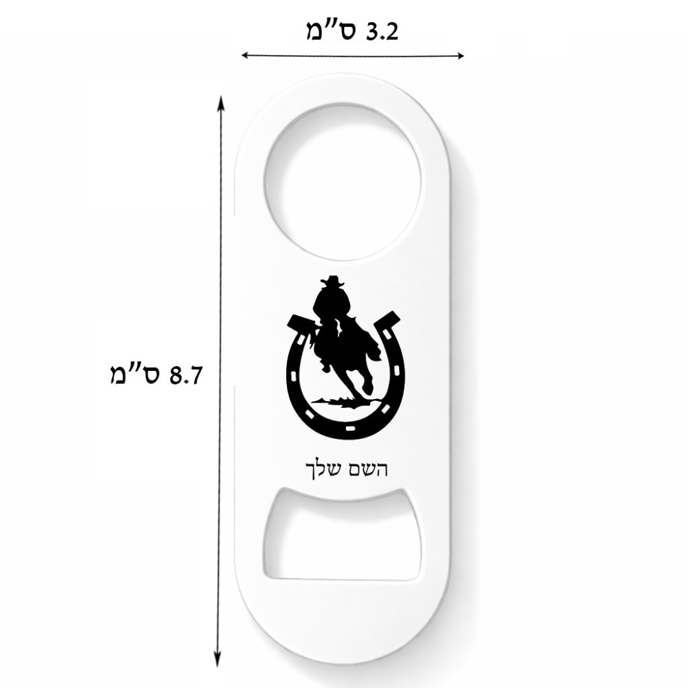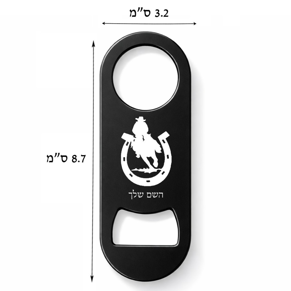 פותחן בקבוקים בעיצוב אישי עם השם שלך בעיצוב פרסה וסוס. את השם המבוקש ניתן לציין בהזמנה, אם לא צויין אנחנו ניצור קשר לבירור.