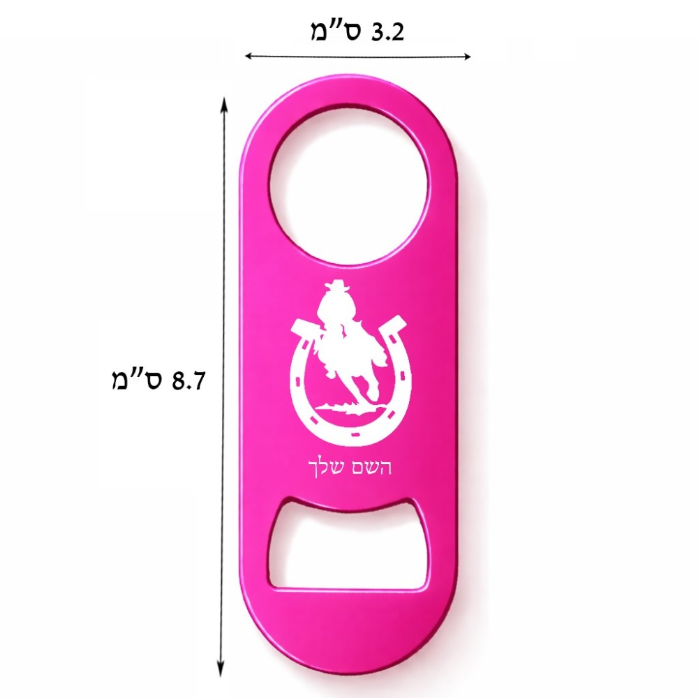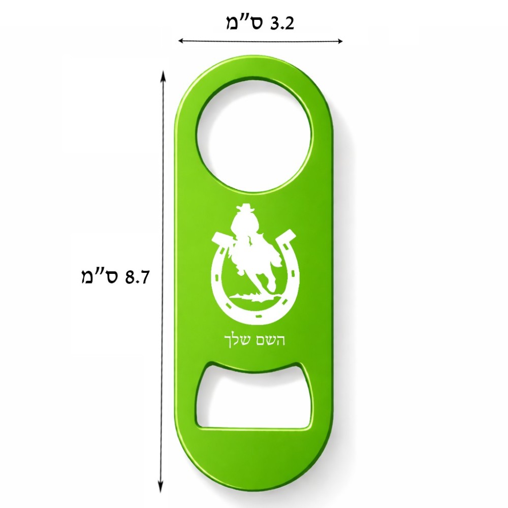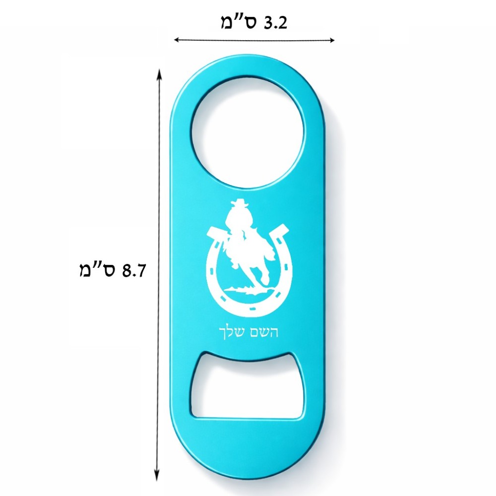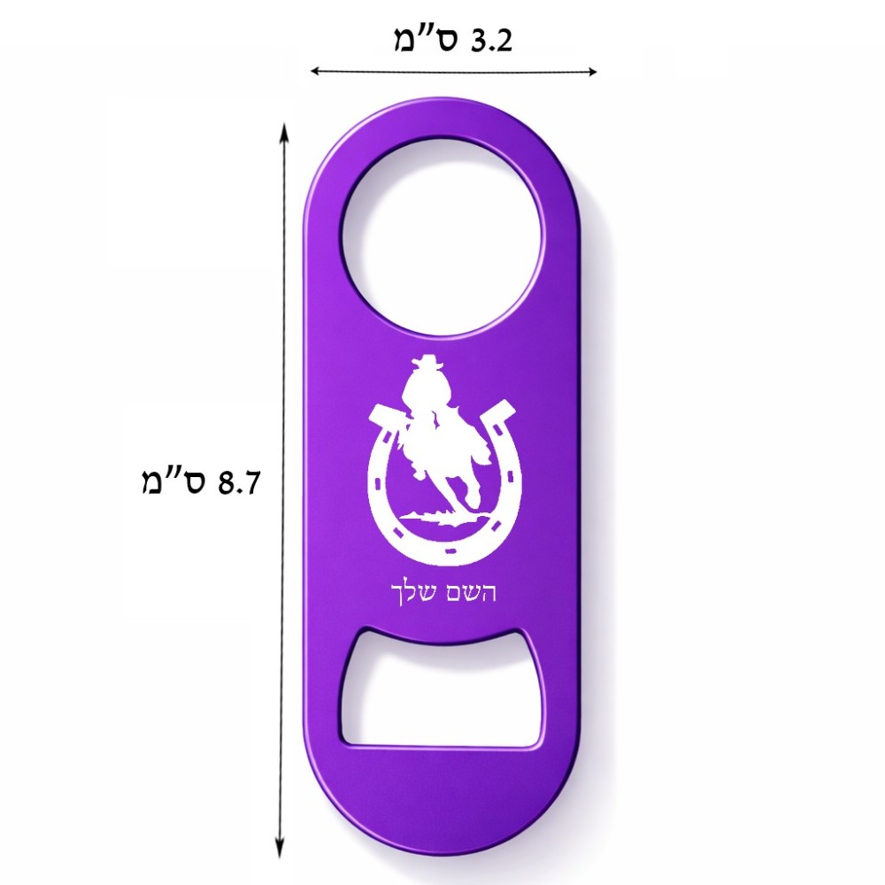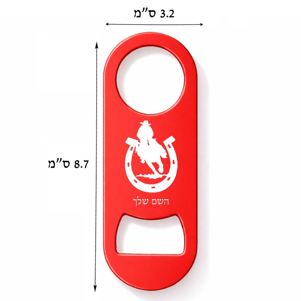 פותחן בקבוקים בעיצוב אישי עם השם שלך בעיצוב פרסה וסוס. את השם המבוקש ניתן לציין בהזמנה, אם לא צויין אנחנו ניצור קשר לבירור.
