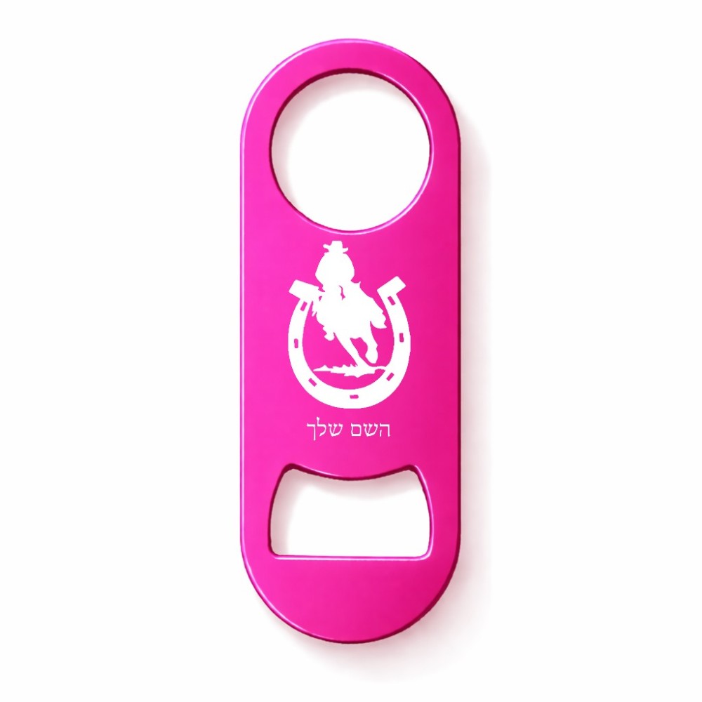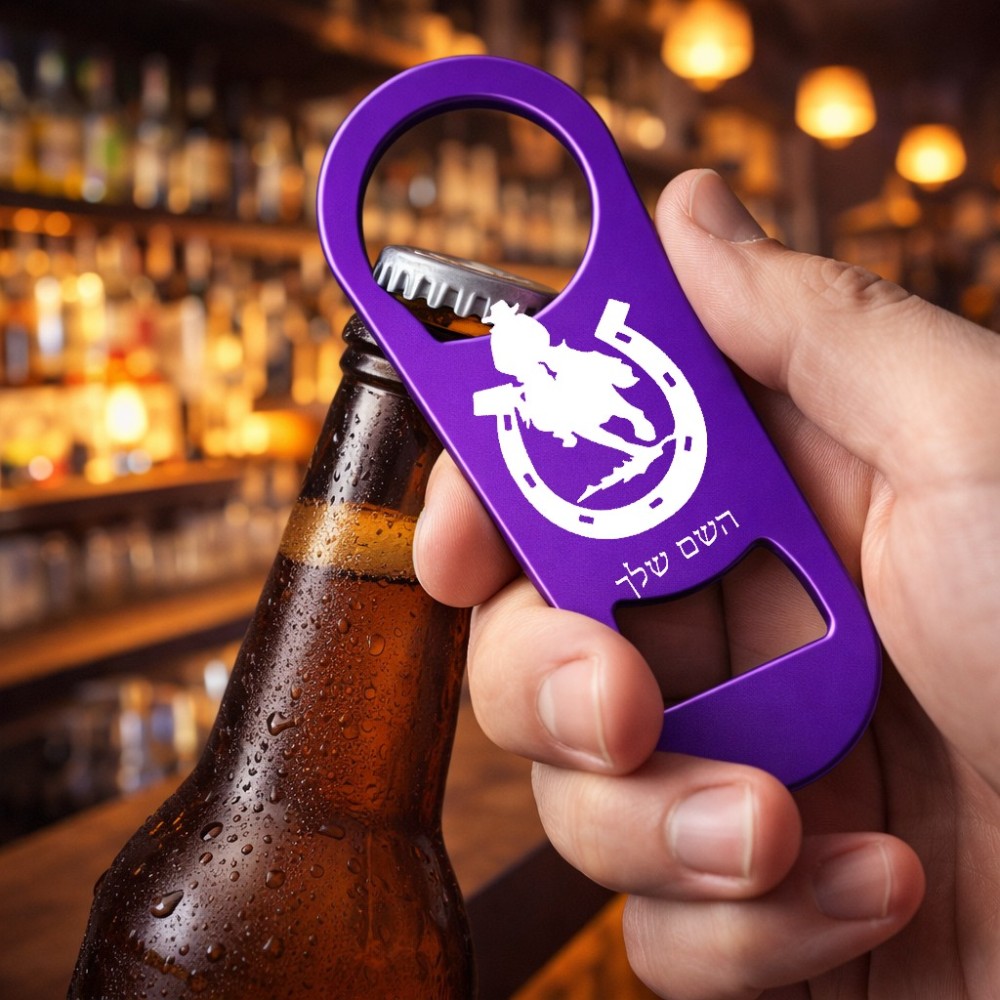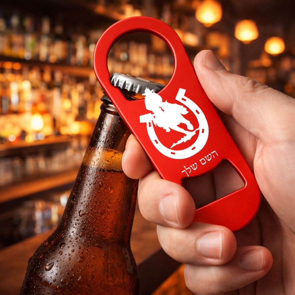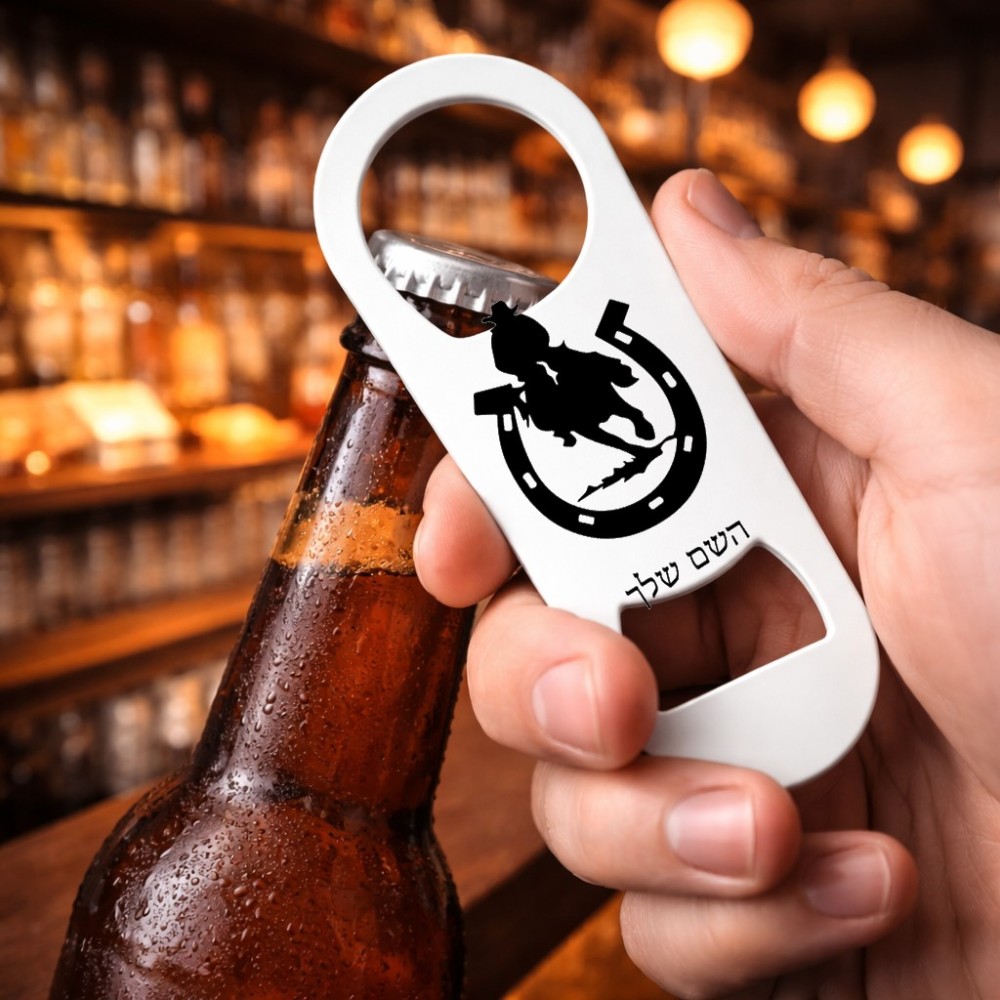 פותחן בקבוקים בעיצוב אישי עם השם שלך בעיצוב פרסה וסוס. את השם המבוקש ניתן לציין בהזמנה, אם לא צויין אנחנו ניצור קשר לבירור.