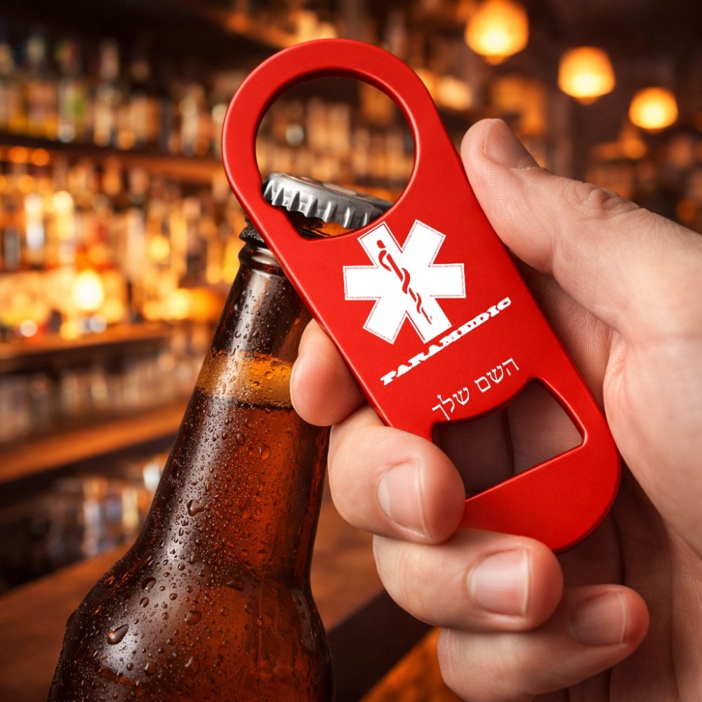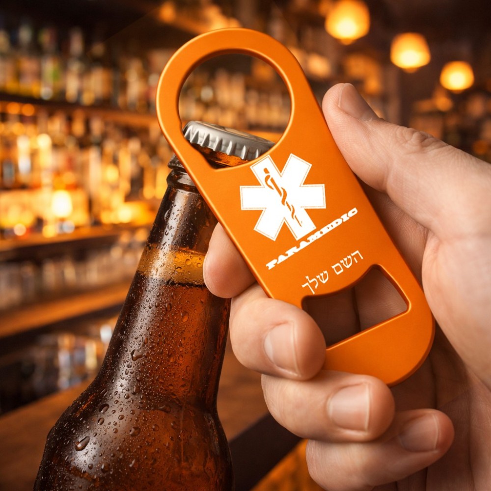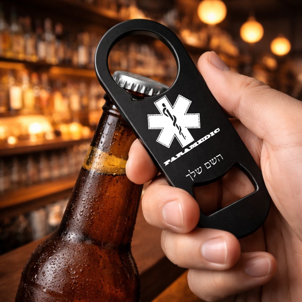 פותחן בקבוקים בעיצוב אישי עם השם שלך בעיצוב חובש. את השם המבוקש ניתן לציין בהזמנה, אם לא צויין אנחנו ניצור קשר לבירור.