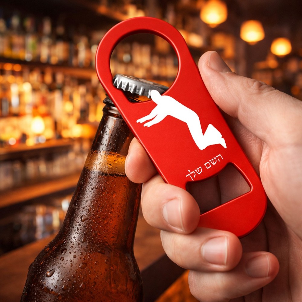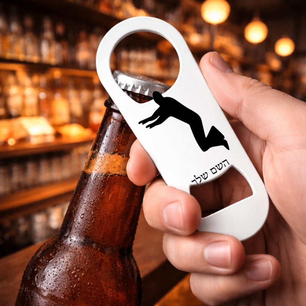 פותחן בקבוקים בעיצוב אישי עם השם שלך בעיצוב פארקורינג גודל הפותחן 3.2 × 8.7 ס"מ