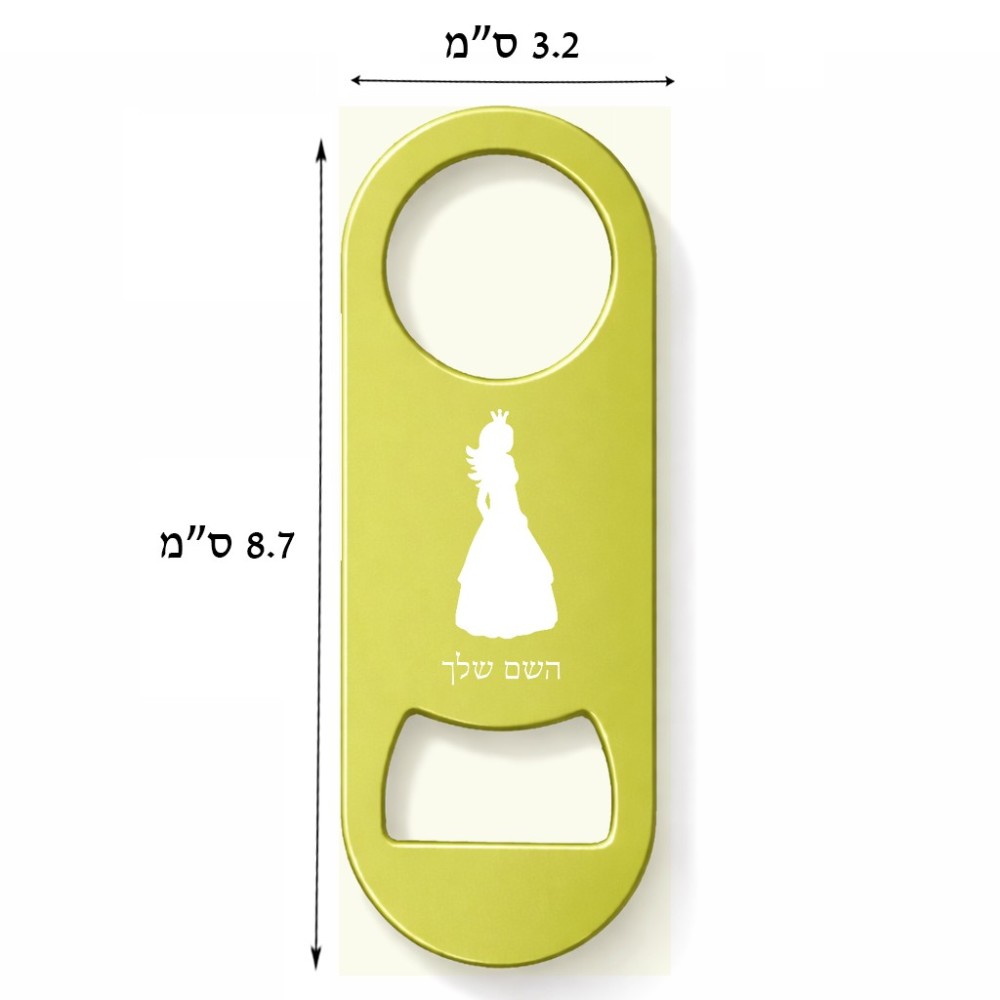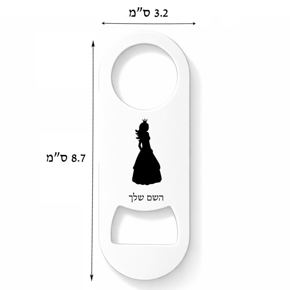 פותחן בקבוקים בעיצוב אישי עם השם שלך בעיצוב נסיכה. את השם המבוקש ניתן לציין בהזמנה, אם לא צויין אנחנו ניצור קשר לבירור.