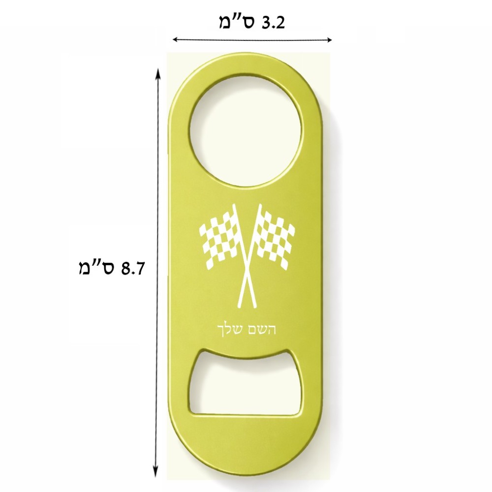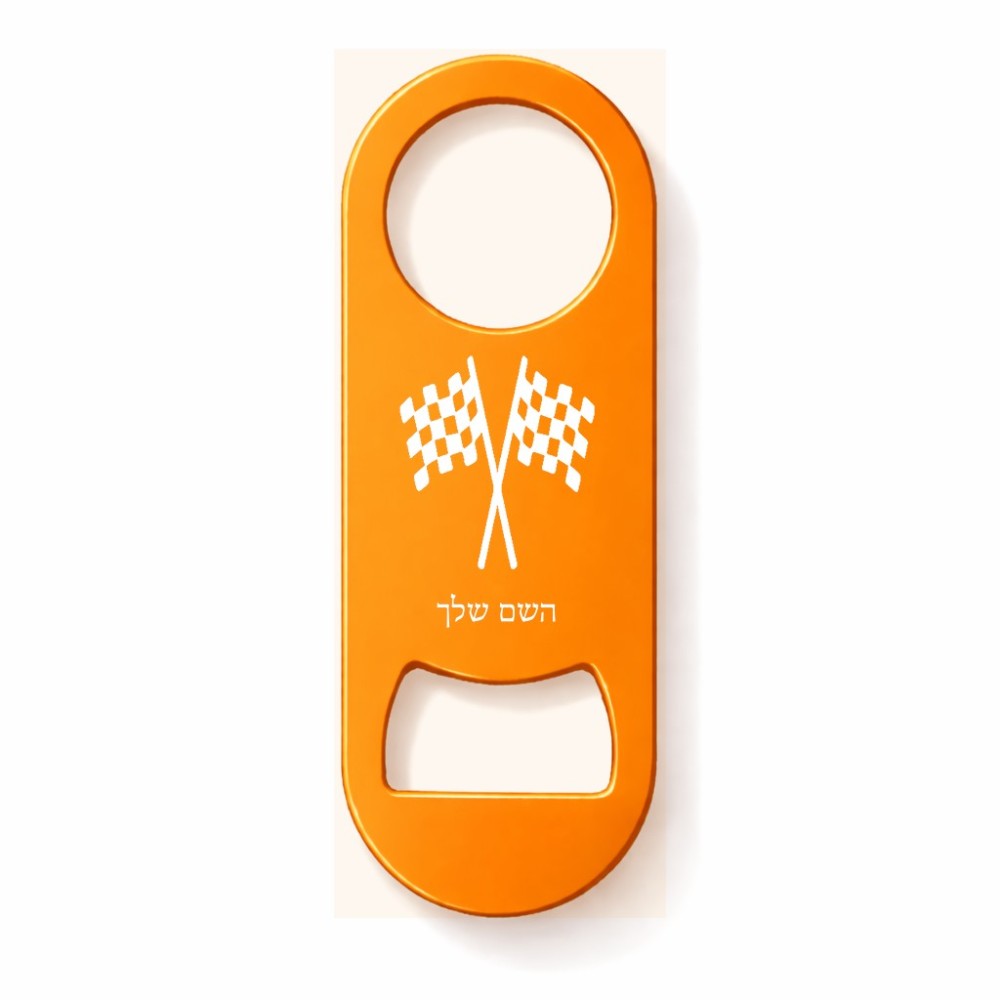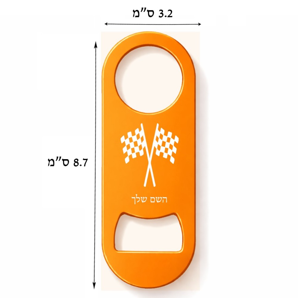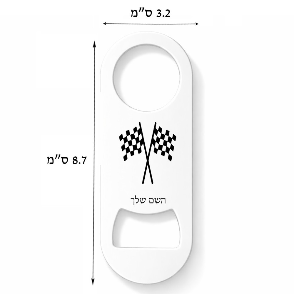 פותחן בקבוקים בעיצוב אישי עם השם שלך בעיצוב דגל המירוץ. את השם המבוקש ניתן לציין בהזמנה, אם לא צויין אנחנו ניצור קשר לבירור.