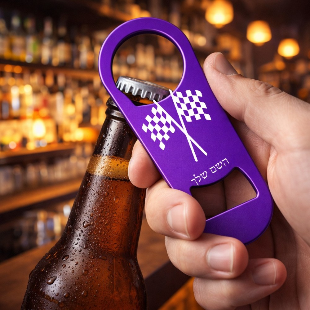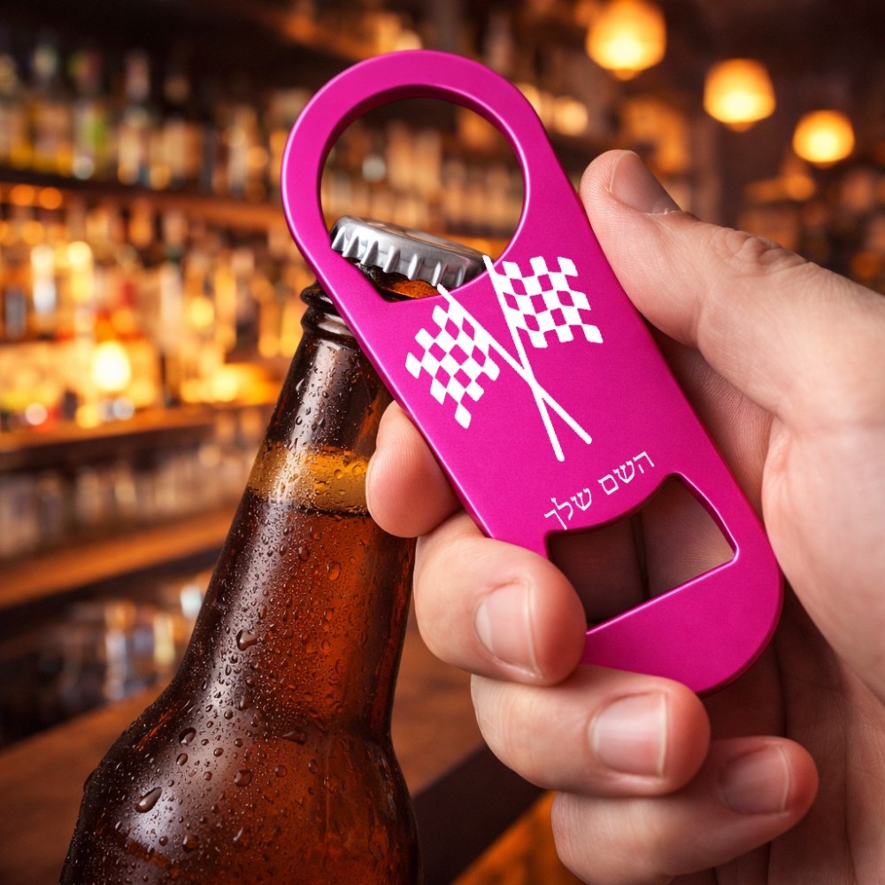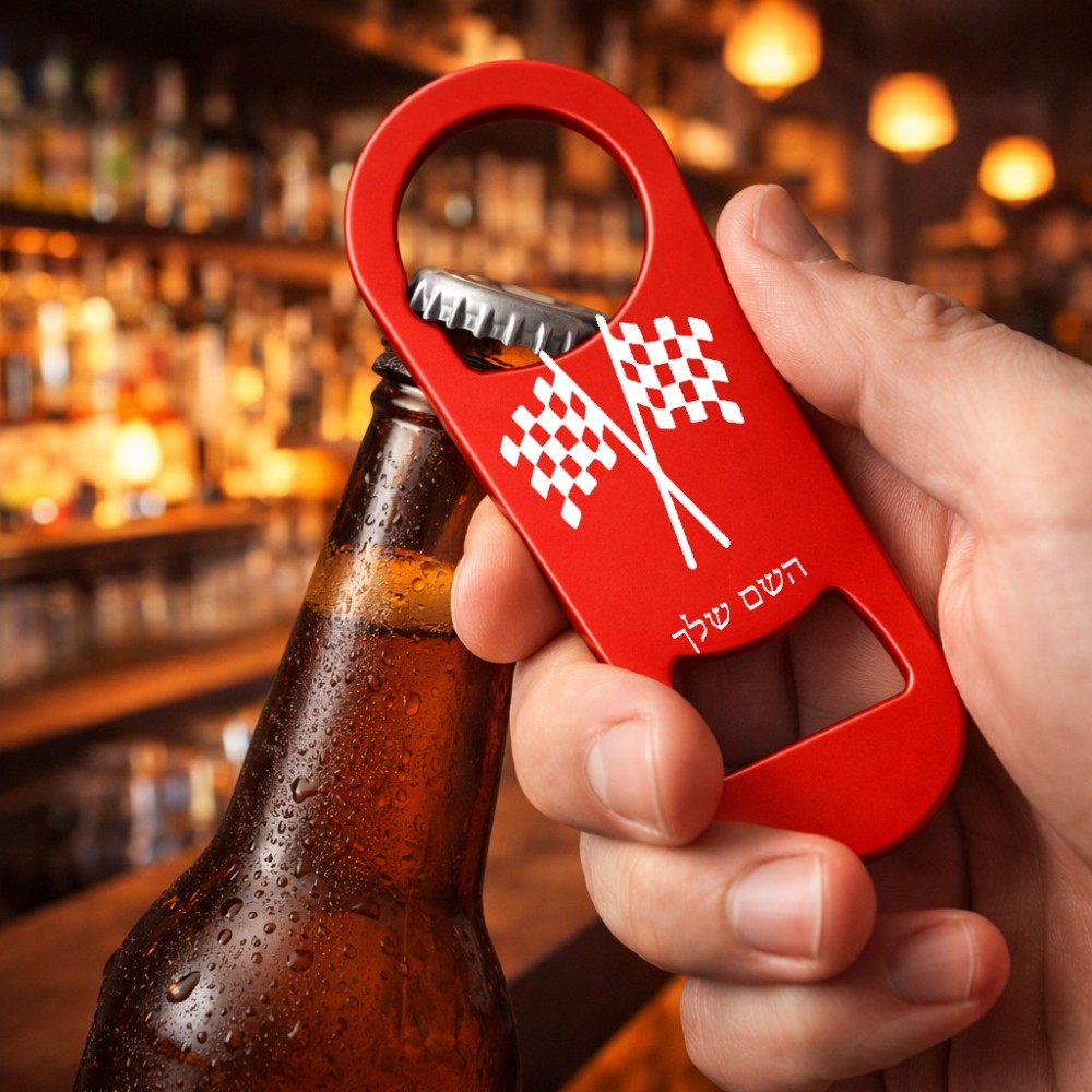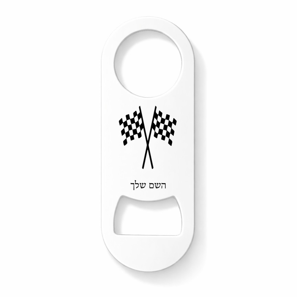 פותחן בקבוקים בעיצוב אישי עם השם שלך בעיצוב דגל המירוץ. את השם המבוקש ניתן לציין בהזמנה, אם לא צויין אנחנו ניצור קשר לבירור.