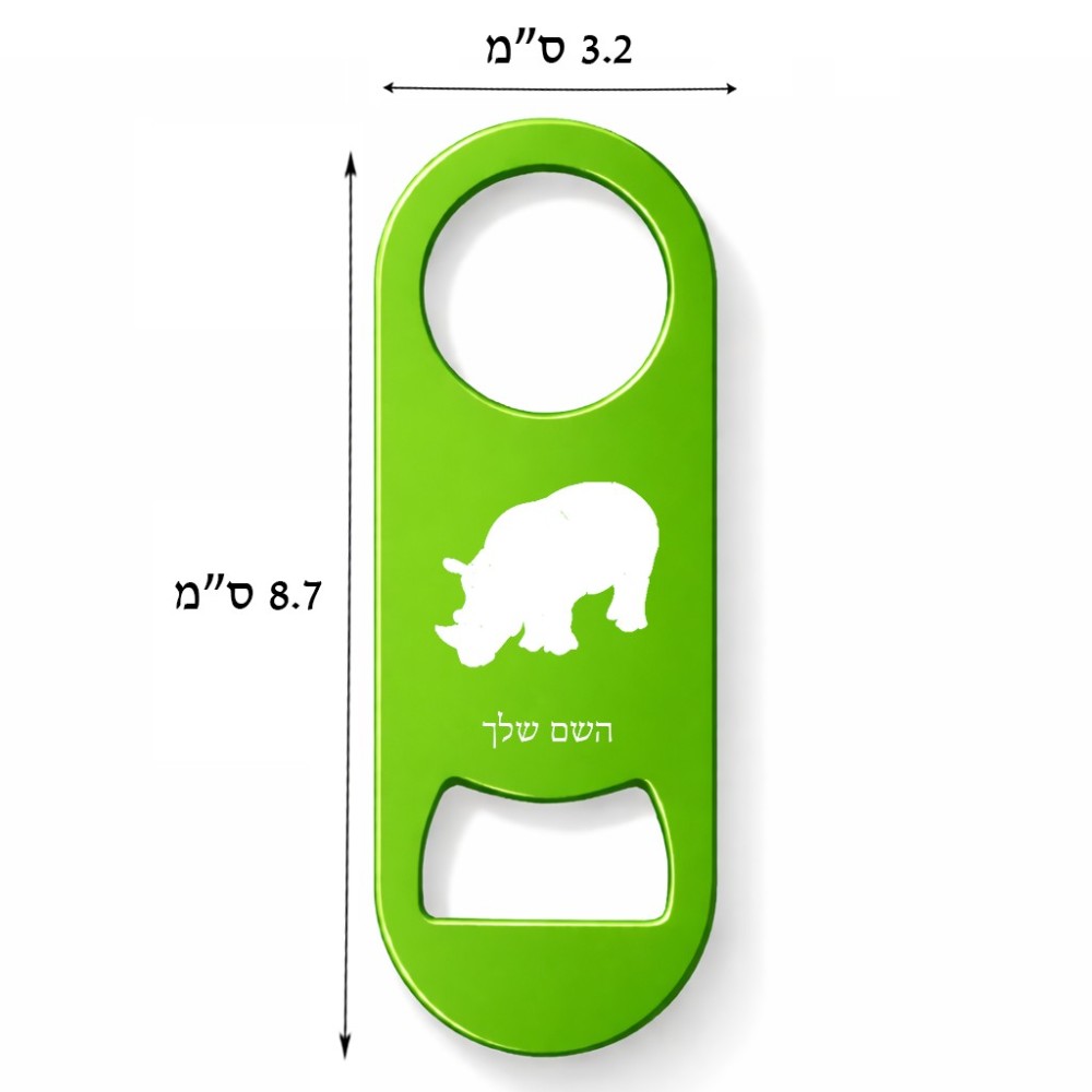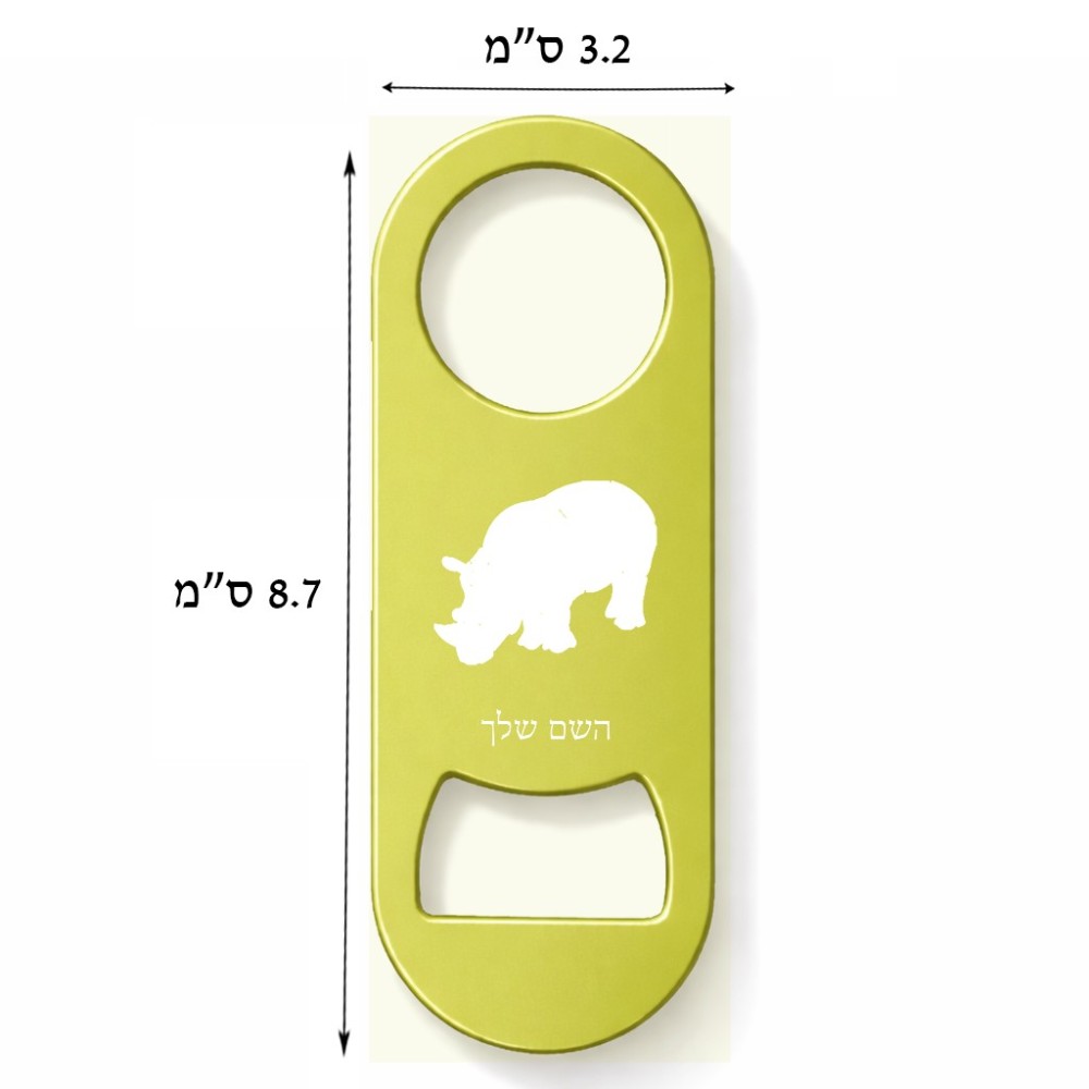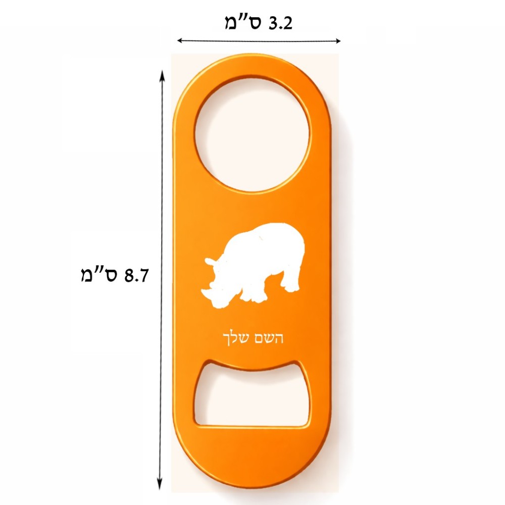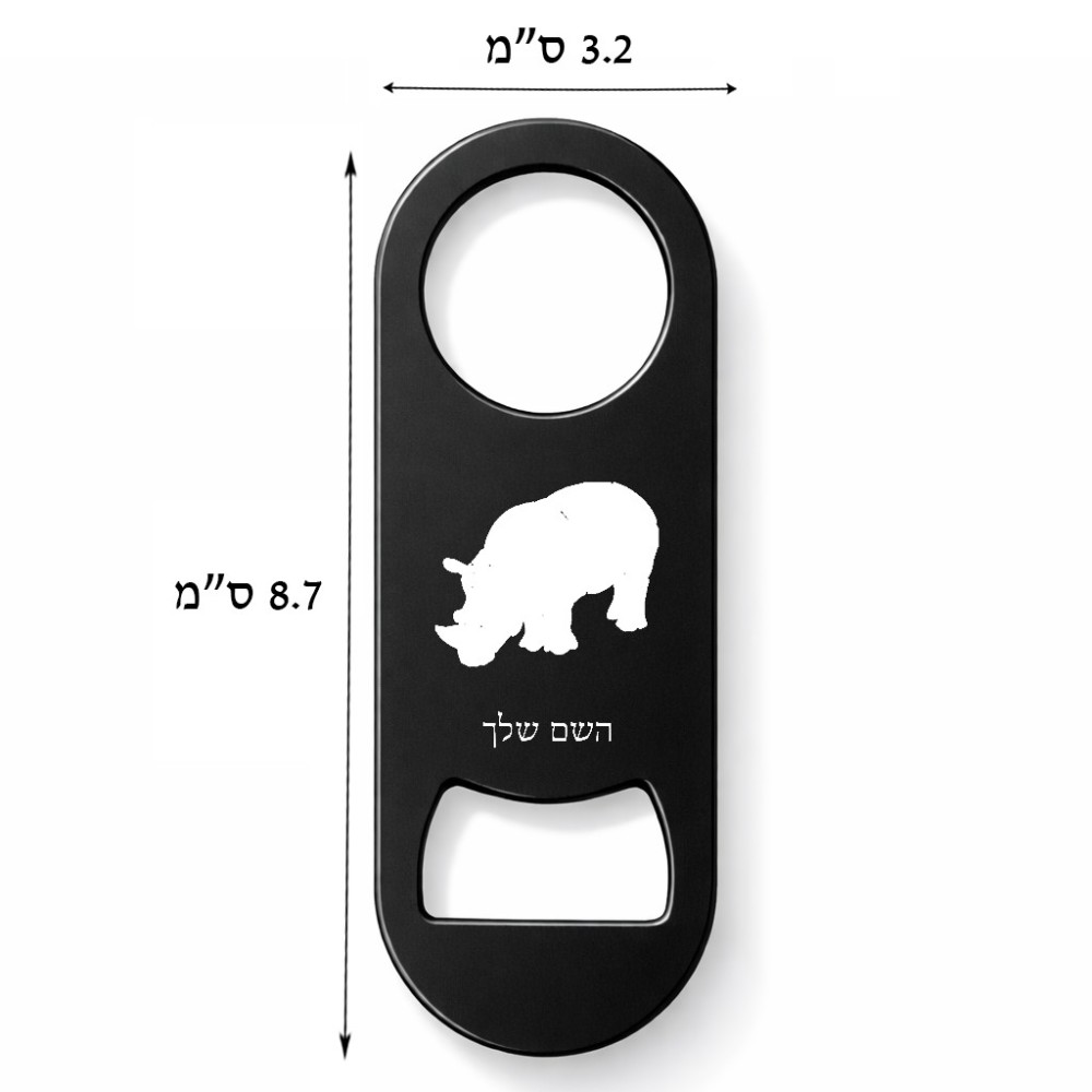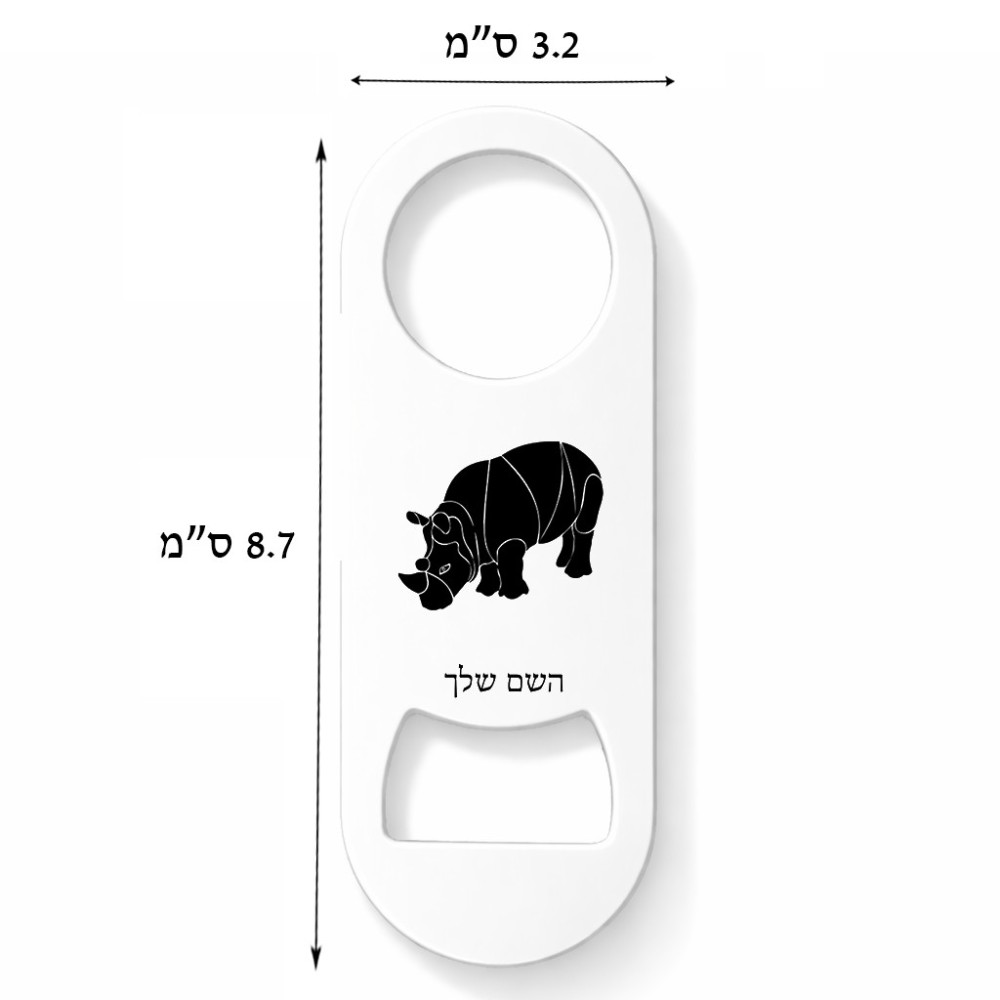 פותחן בקבוקים בעיצוב אישי עם השם שלך בעיצוב קרנף. את השם המבוקש ניתן לציין בהזמנה, אם לא צויין אנחנו ניצור קשר לבירור.