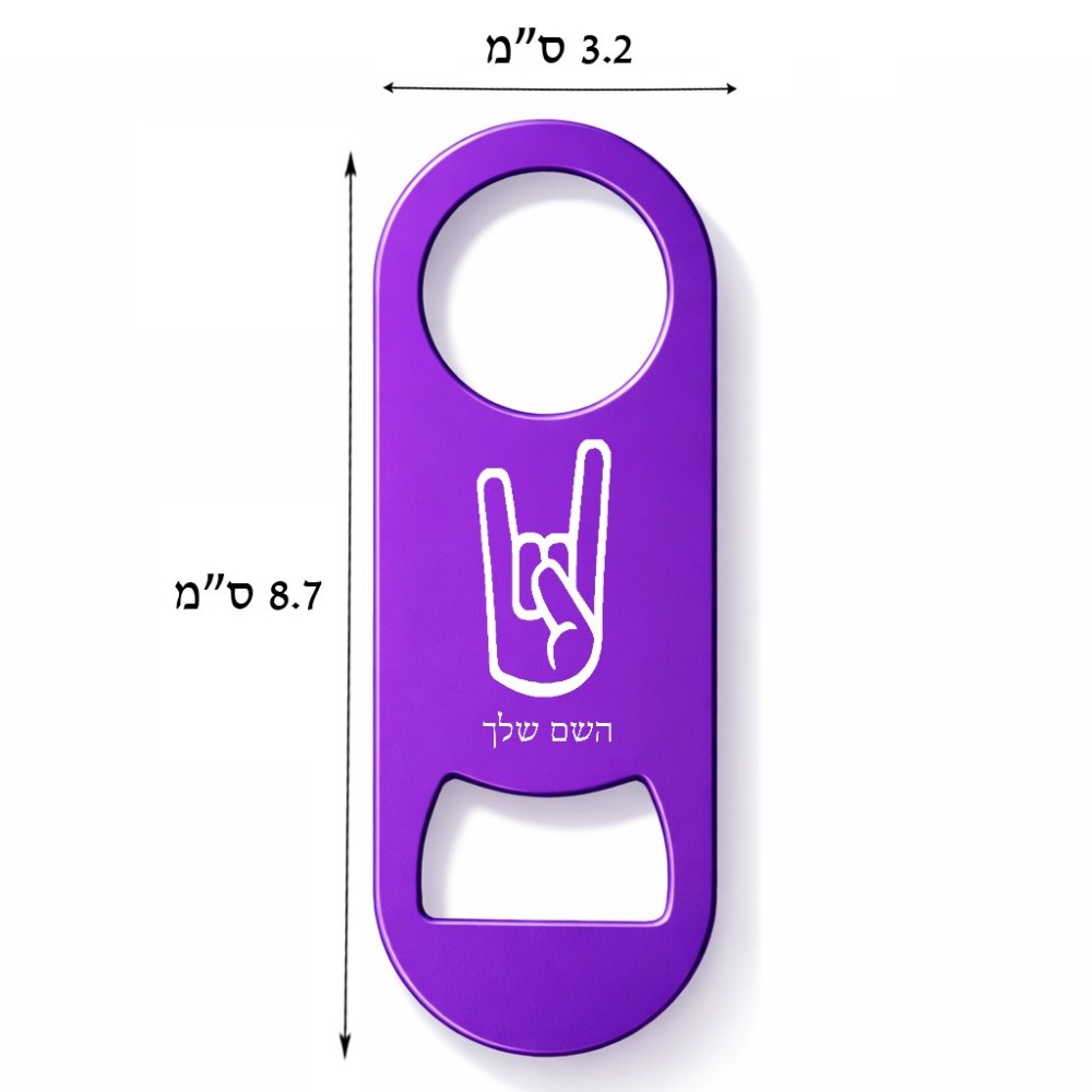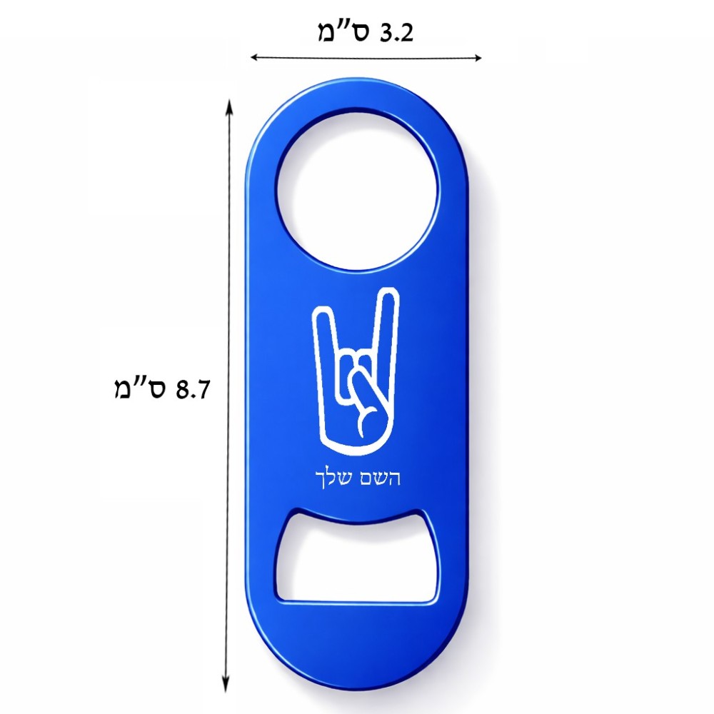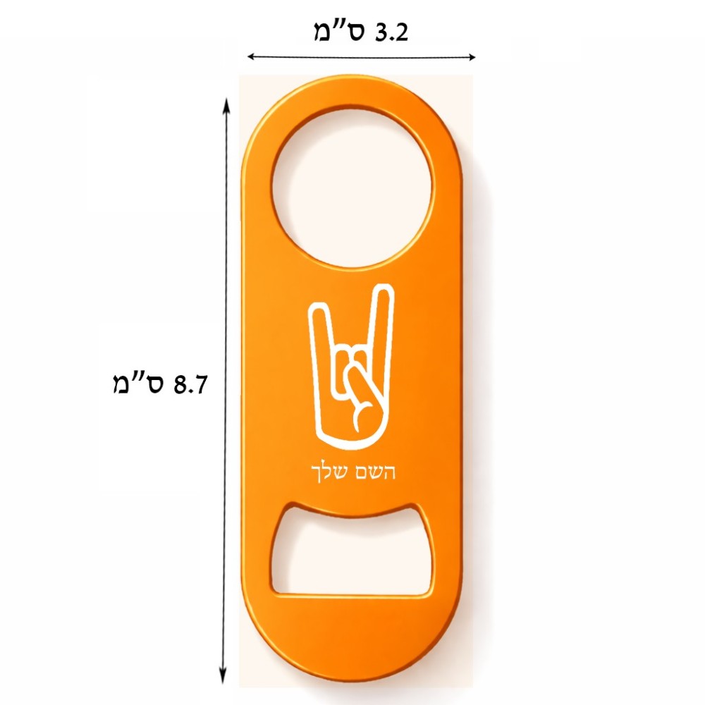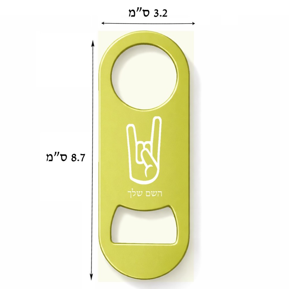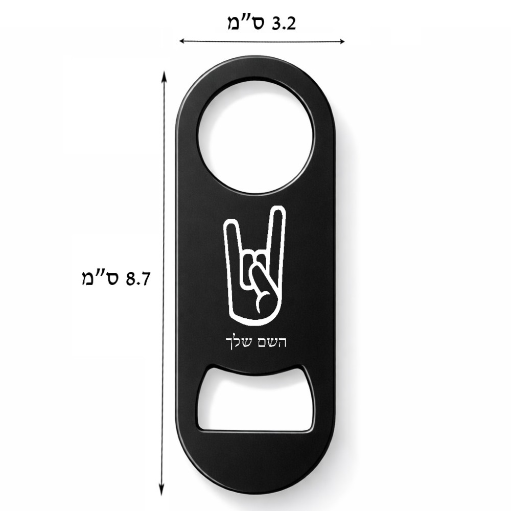 פותחן בקבוקים בעיצוב אישי עם השם שלך בעיצוב יד סלע גודל הפותחן 3.2 × 8.7 ס"מ