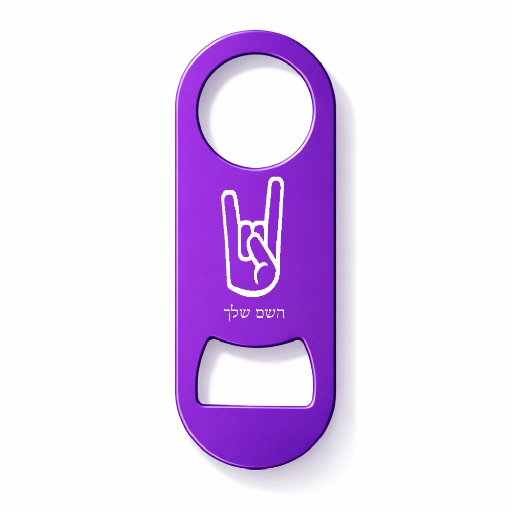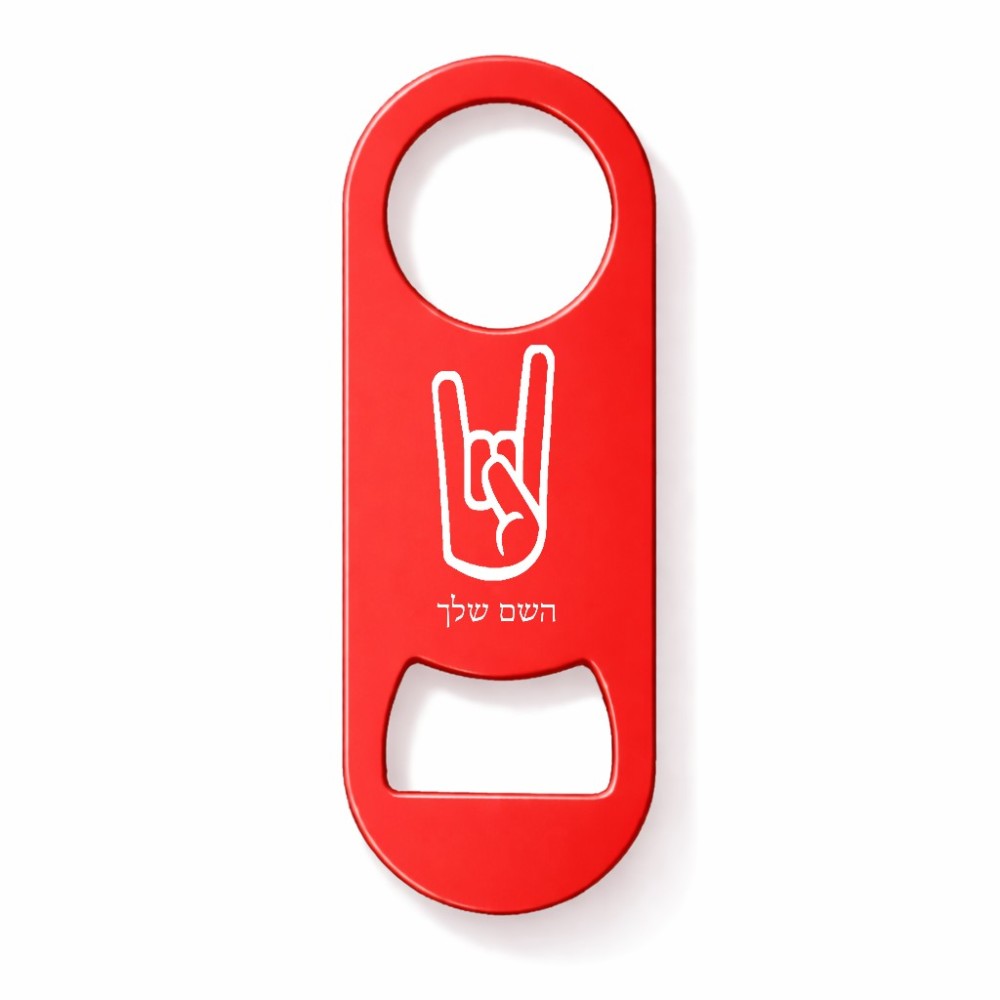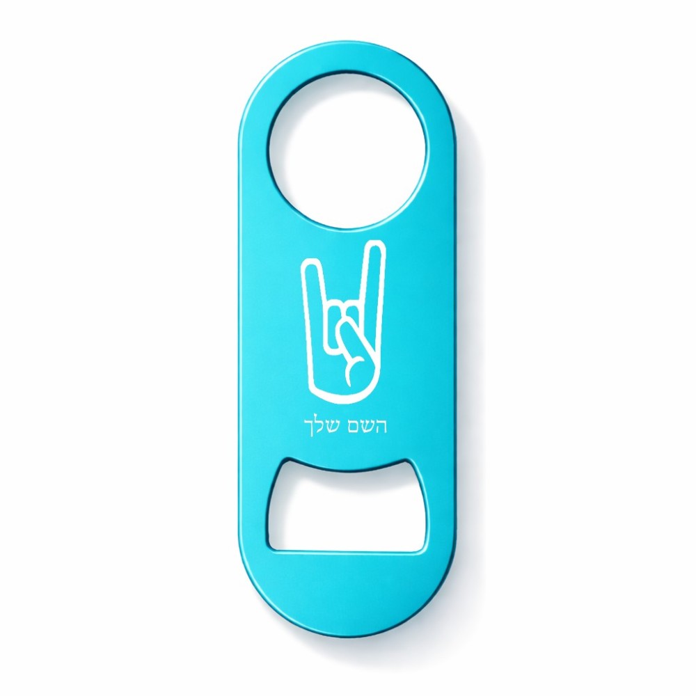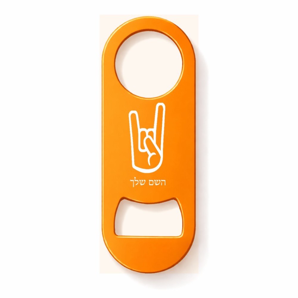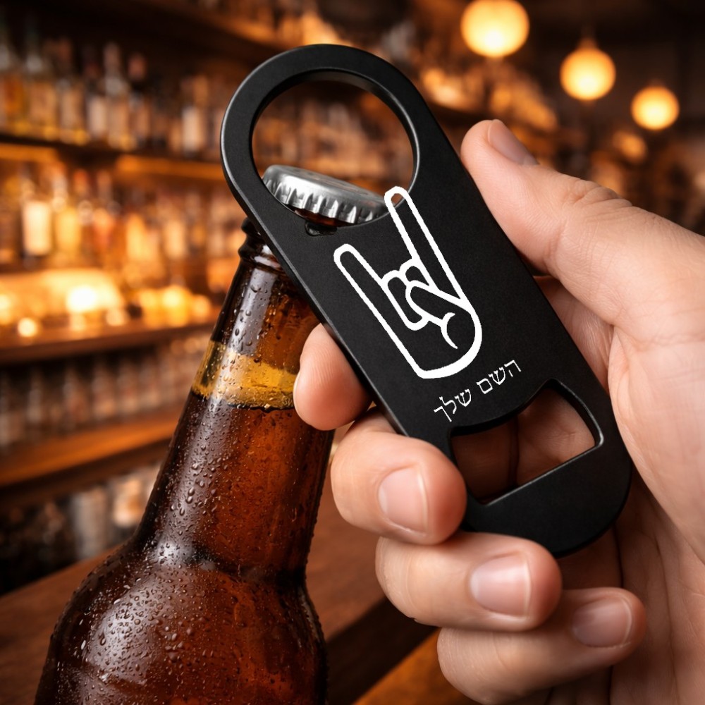 פותחן בקבוקים בעיצוב אישי עם השם שלך בעיצוב יד סלע גודל הפותחן 3.2 × 8.7 ס"מ