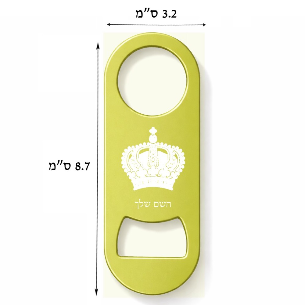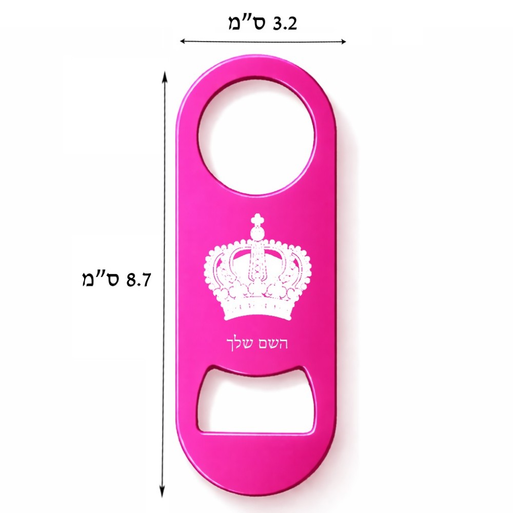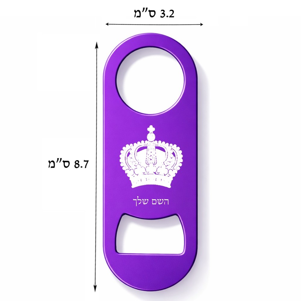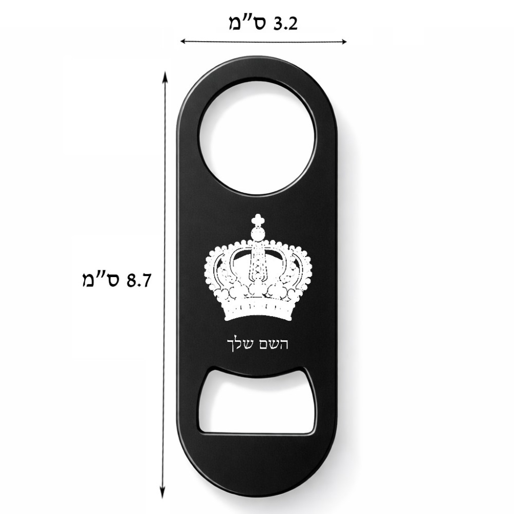 פותחן בקבוקים בעיצוב אישי עם השם שלך בעיצוב כתר מלכותי. את השם המבוקש ניתן לציין בהזמנה, אם לא צויין אנחנו ניצור קשר לבירור.