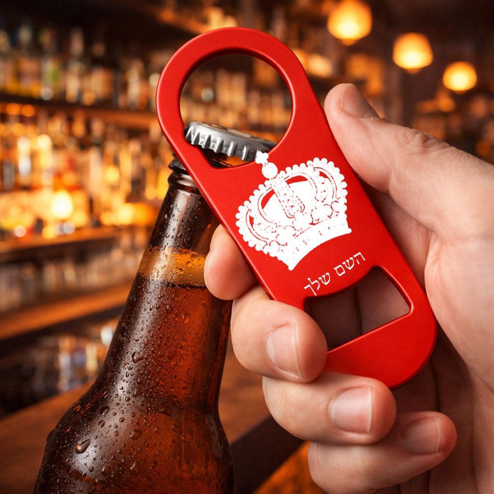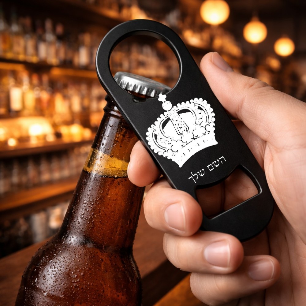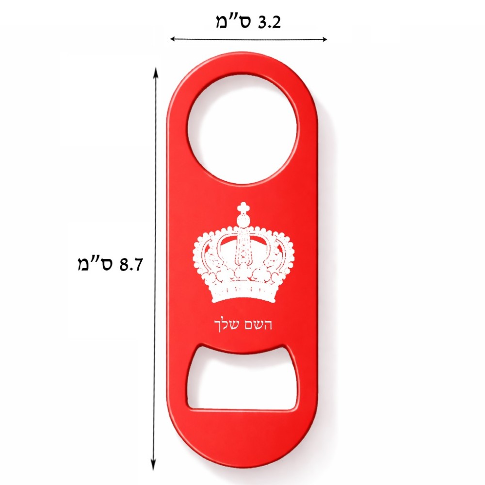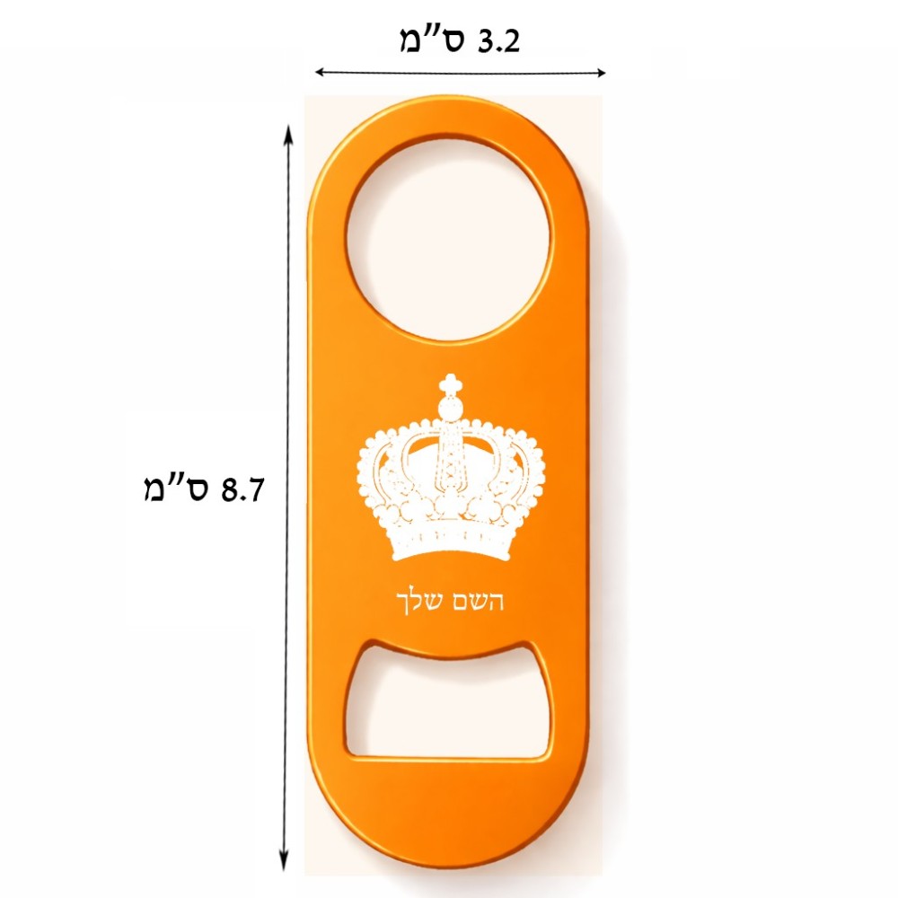 פותחן בקבוקים בעיצוב אישי עם השם שלך בעיצוב כתר מלכותי. את השם המבוקש ניתן לציין בהזמנה, אם לא צויין אנחנו ניצור קשר לבירור.