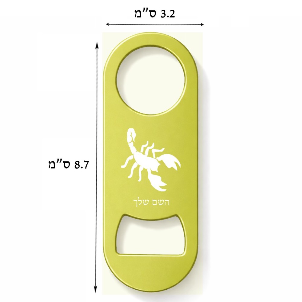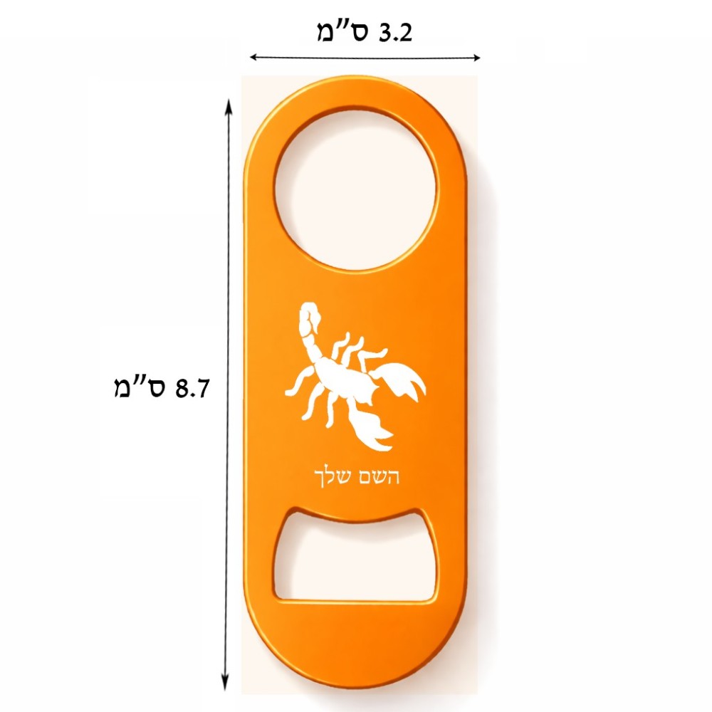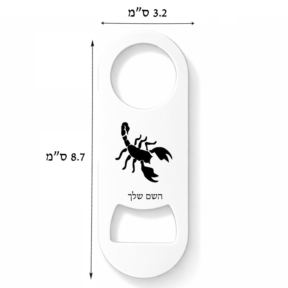 פותחן בקבוקים בעיצוב אישי עם השם שלך בעיצוב עקרב גודל הפותחן 3.2 × 8.7 ס"מ