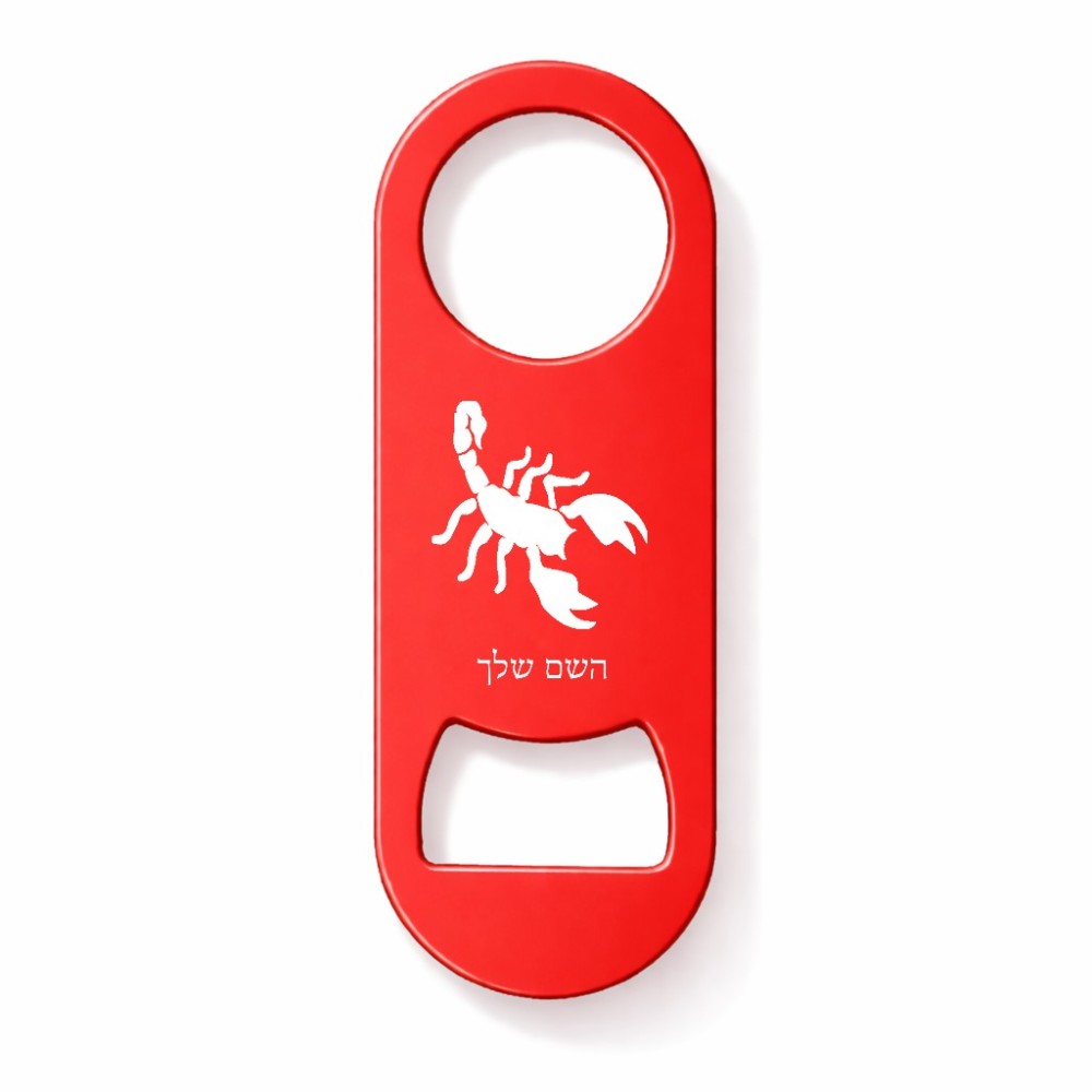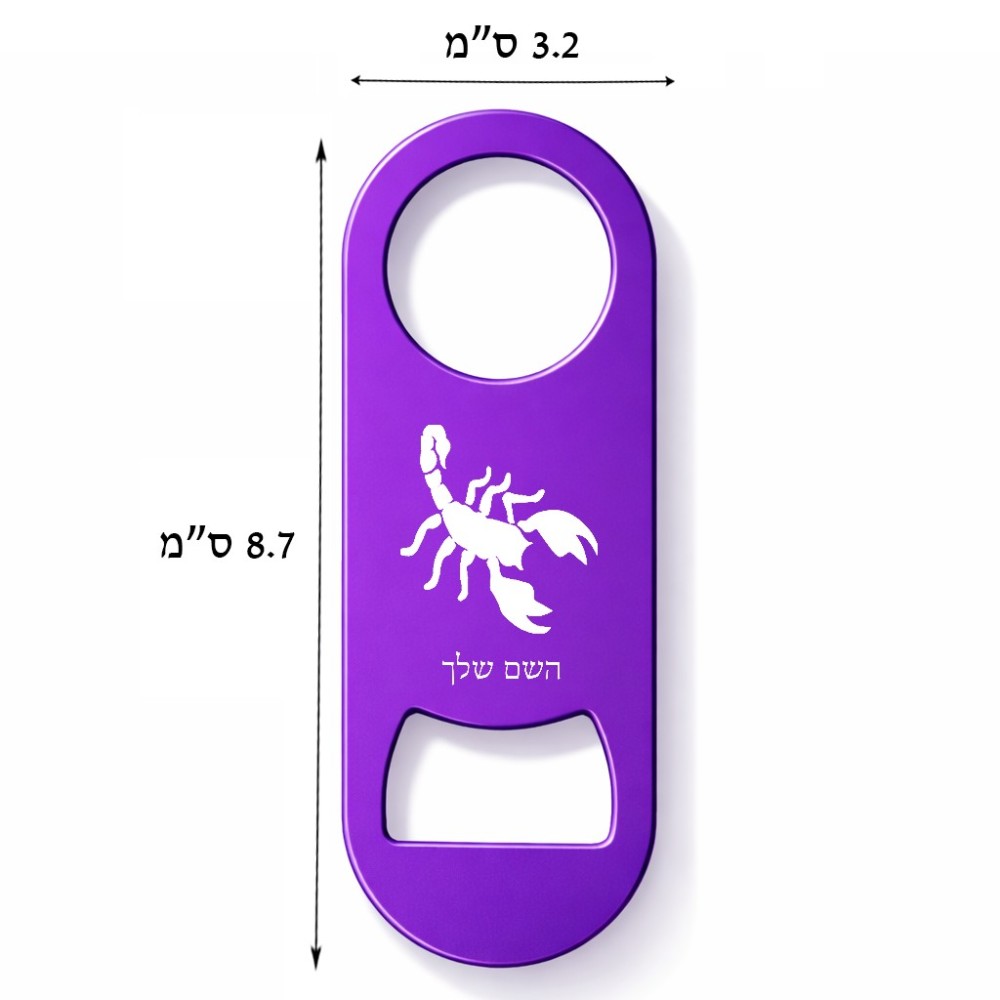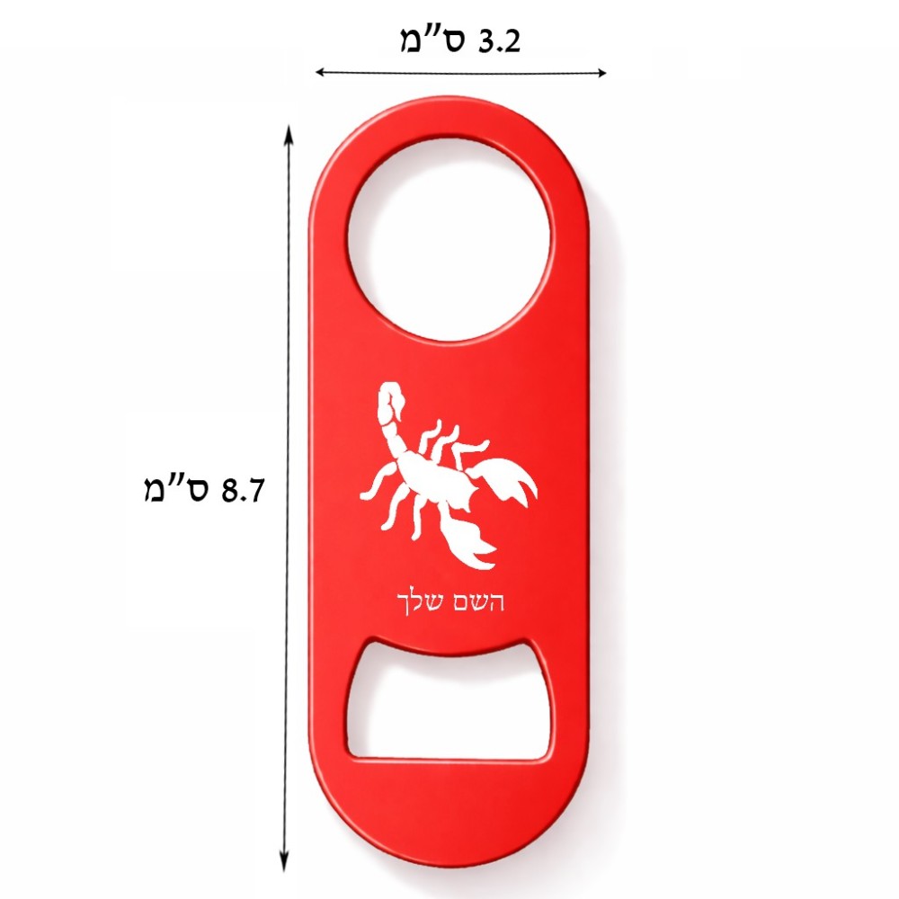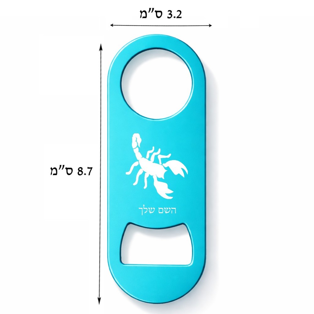 פותחן בקבוקים בעיצוב אישי עם השם שלך בעיצוב עקרב גודל הפותחן 3.2 × 8.7 ס"מ