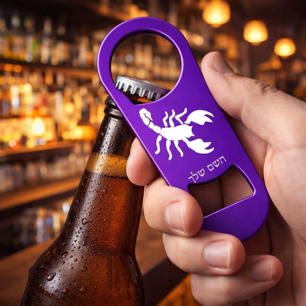 פותחן בקבוקים בעיצוב אישי עם השם שלך בעיצוב עקרב. את השם המבוקש ניתן לציין בהזמנה, אם לא צויין אנחנו ניצור קשר לבירור.