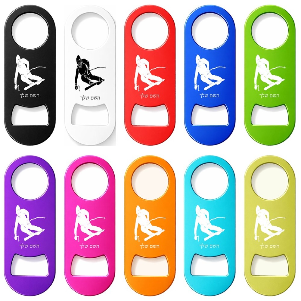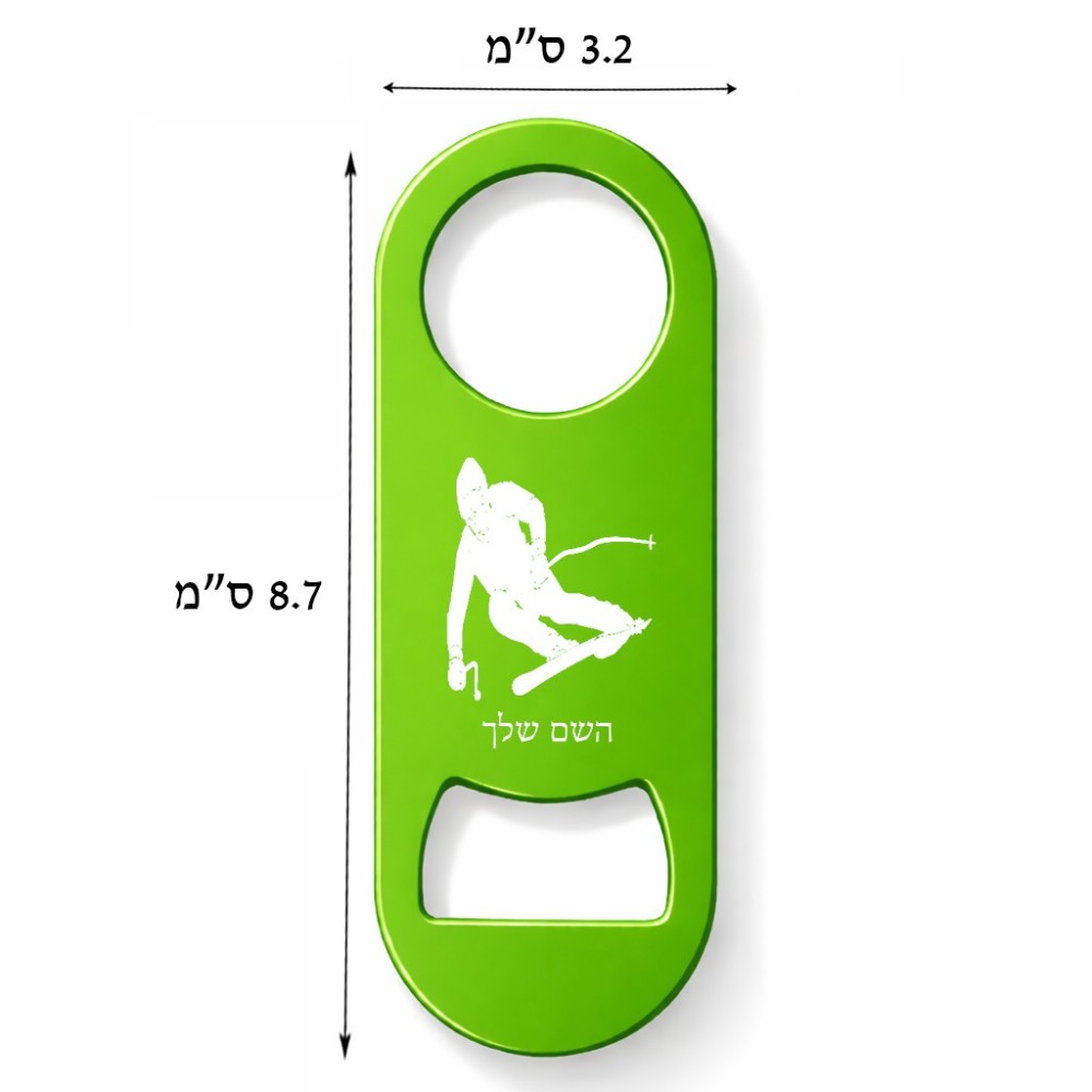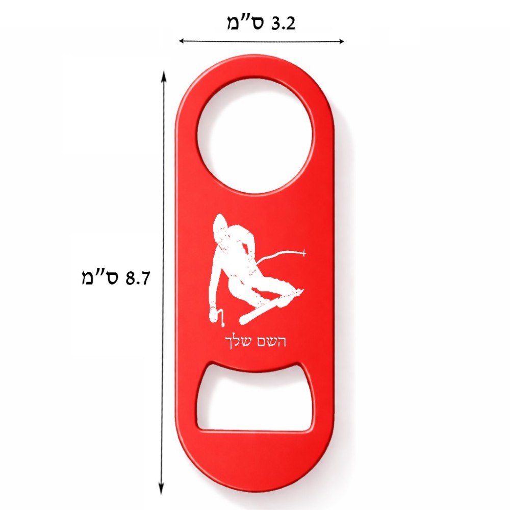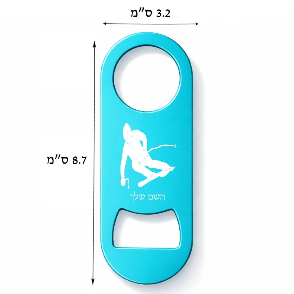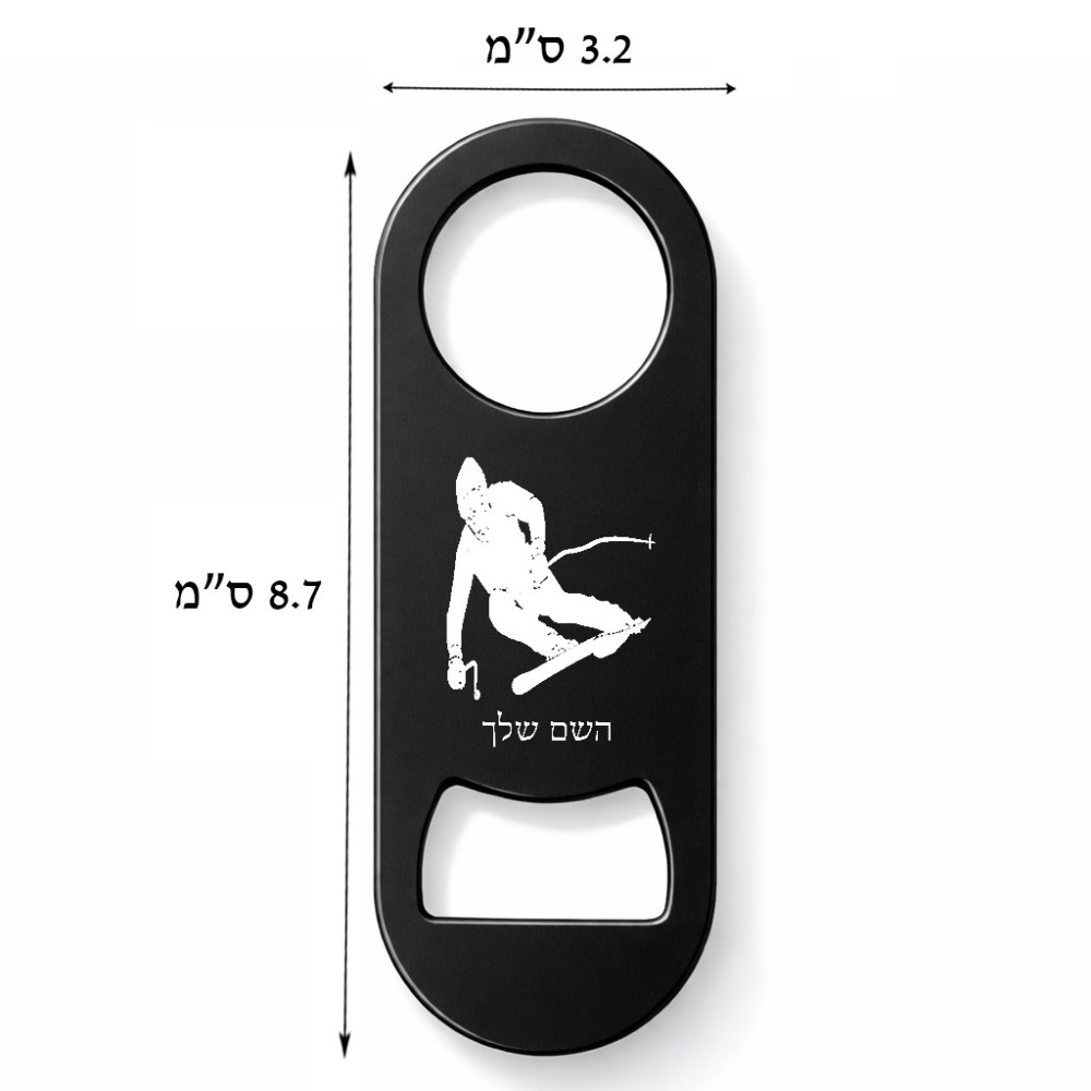 פותחן בקבוקים בעיצוב אישי עם השם שלך בעיצוב סקי גודל הפותחן 3.2 × 8.7 ס"מ