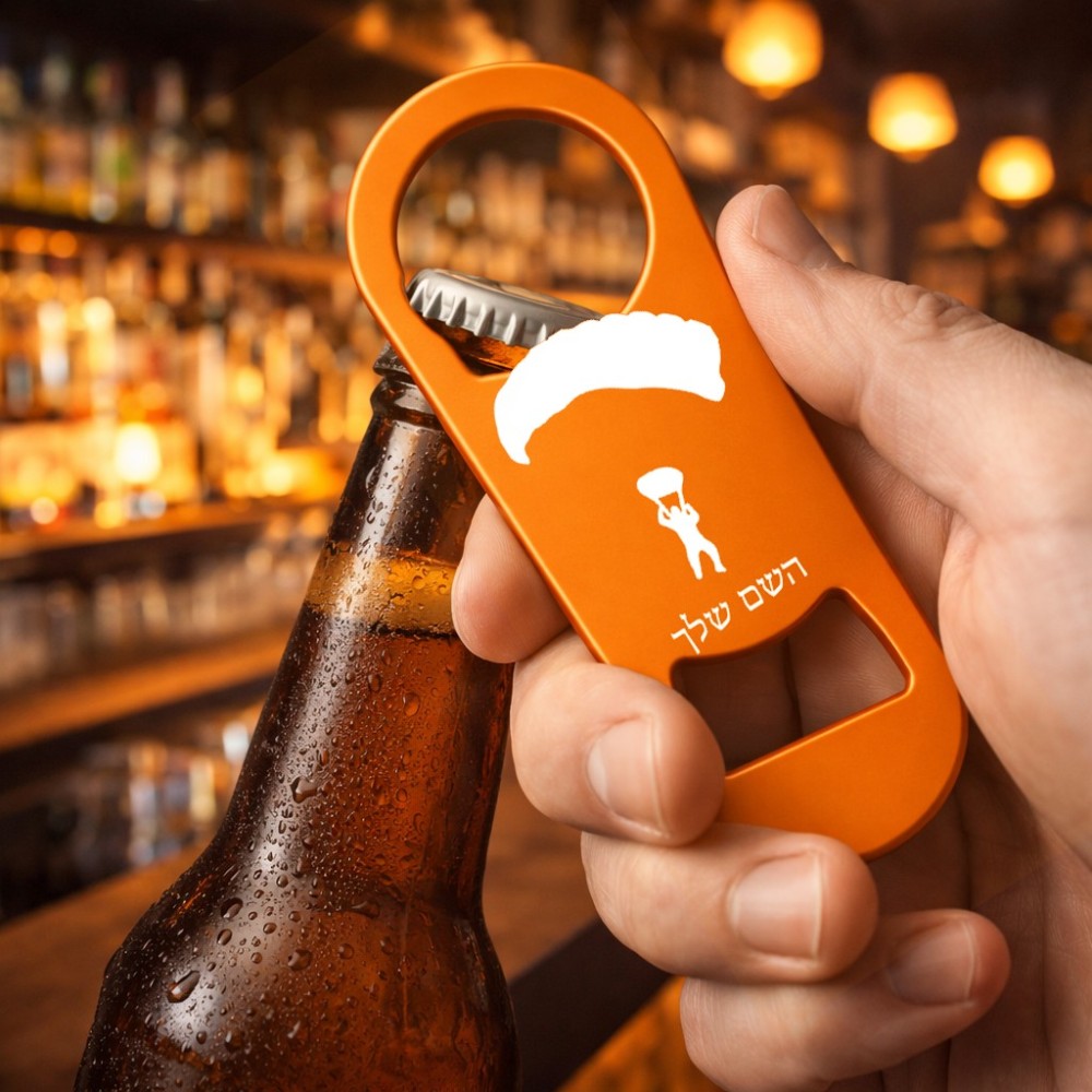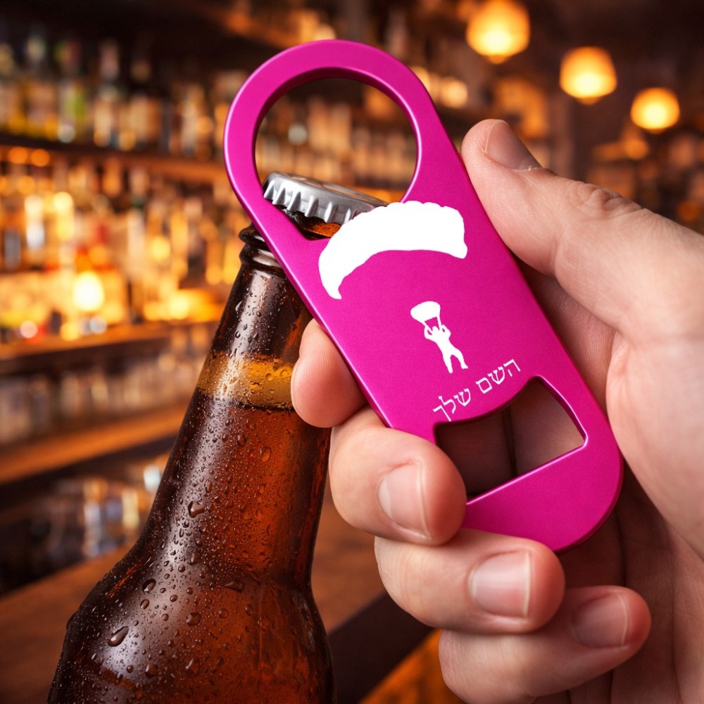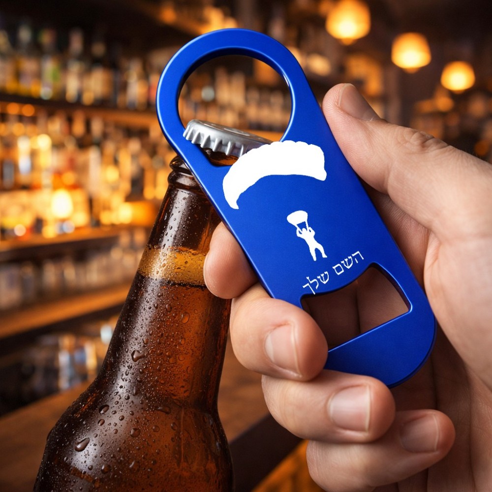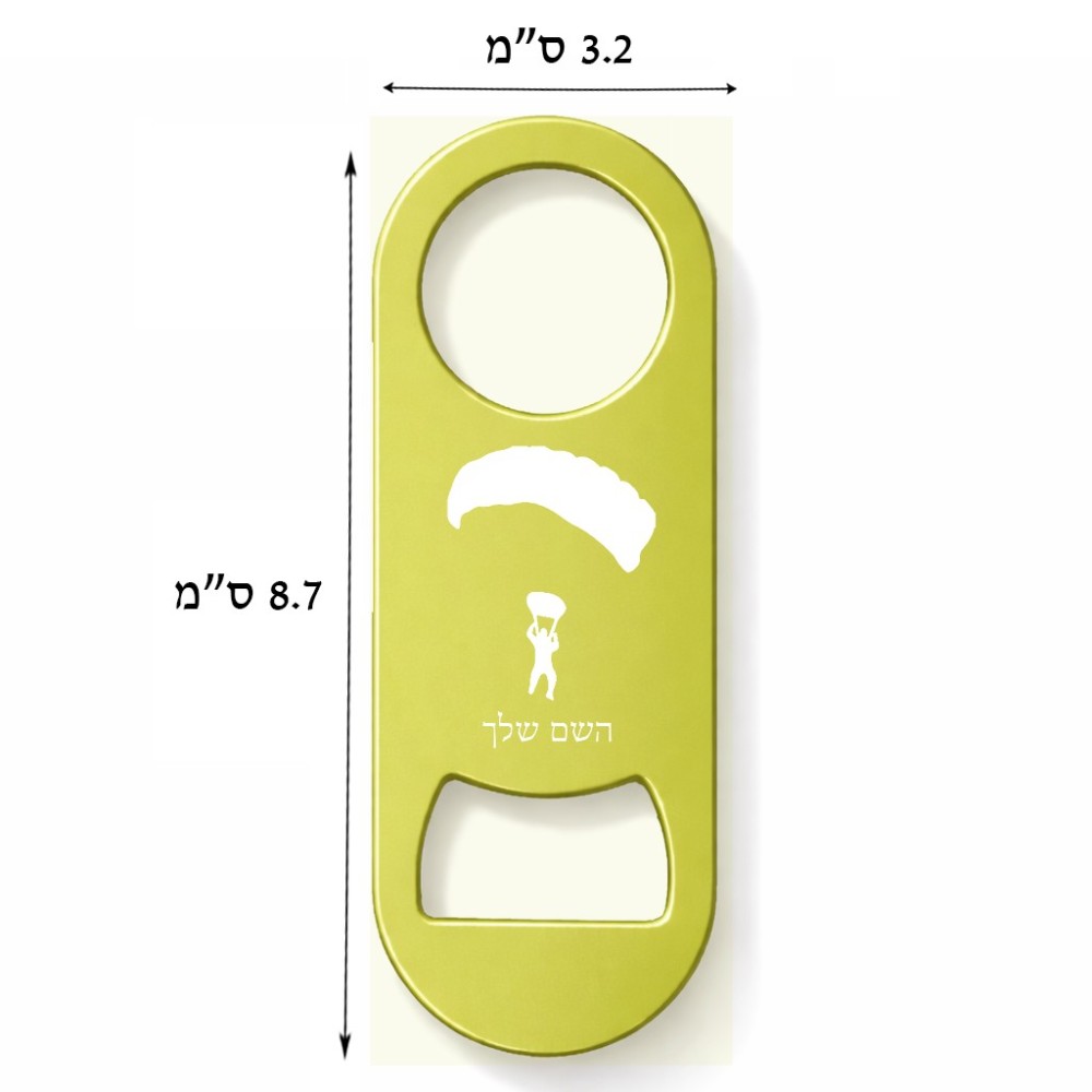פותחן בקבוקים בעיצוב אישי עם השם שלך בעיצוב צניחה חופשית. את השם המבוקש ניתן לציין בהזמנה, אם לא צויין אנחנו ניצור קשר לבירור.
