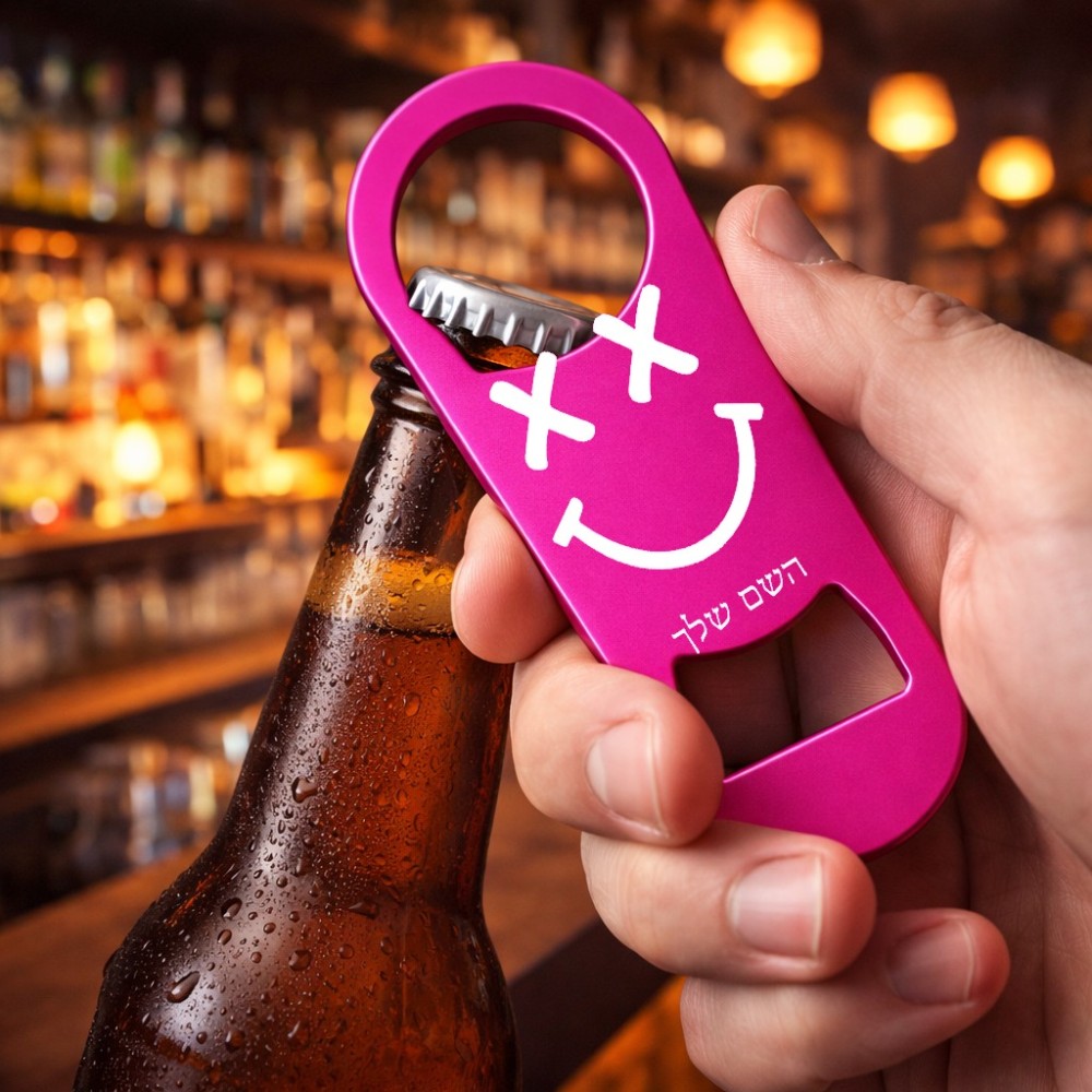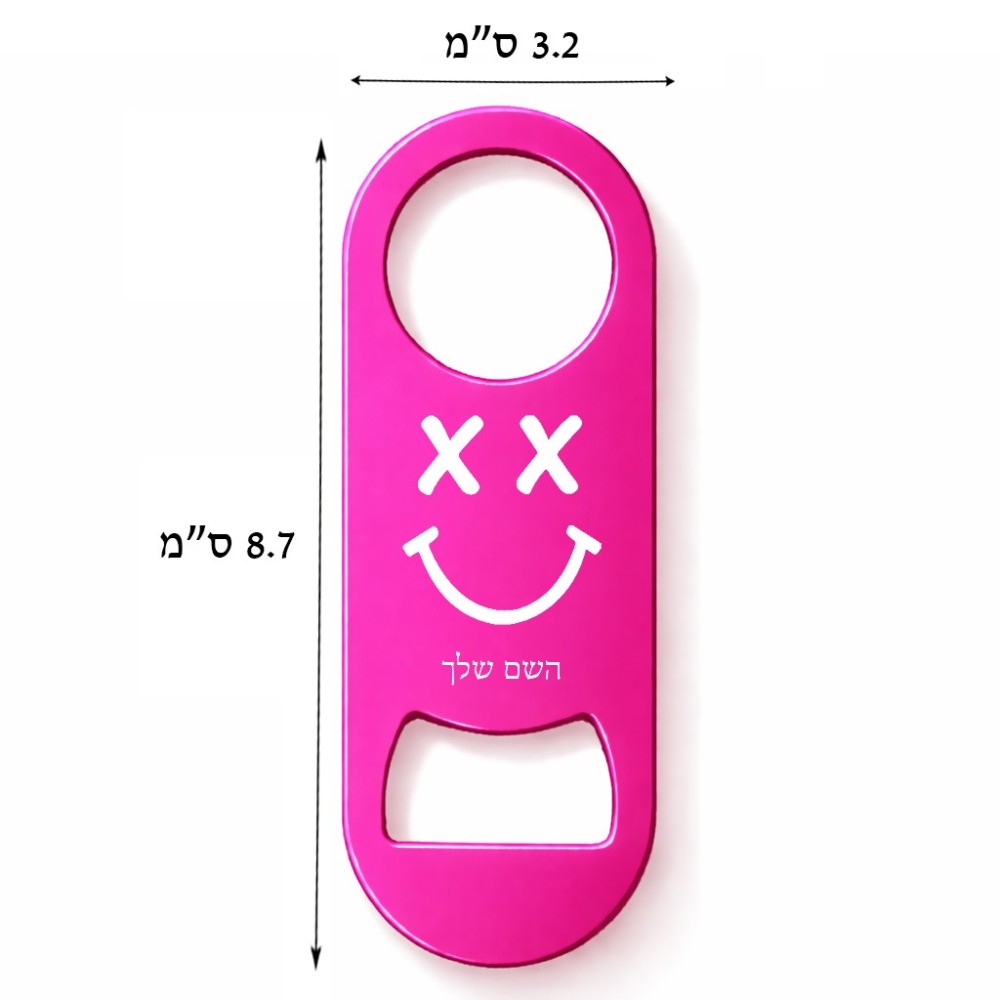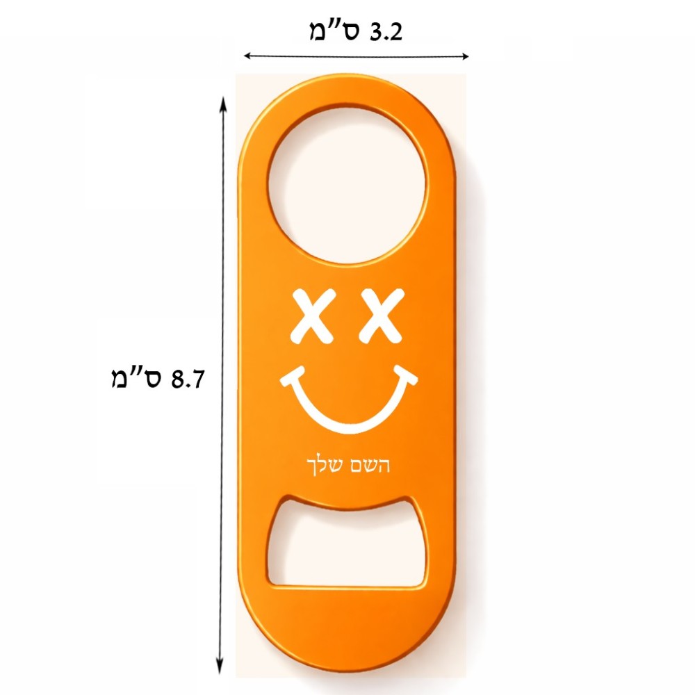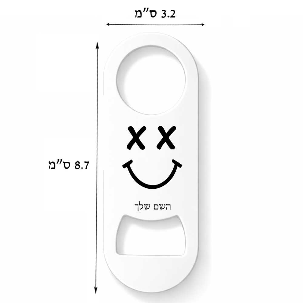 פותחן בקבוקים בעיצוב אישי עם השם שלך בעיצוב סמיילי. את השם המבוקש ניתן לציין בהזמנה, אם לא צויין אנחנו ניצור קשר לבירור.