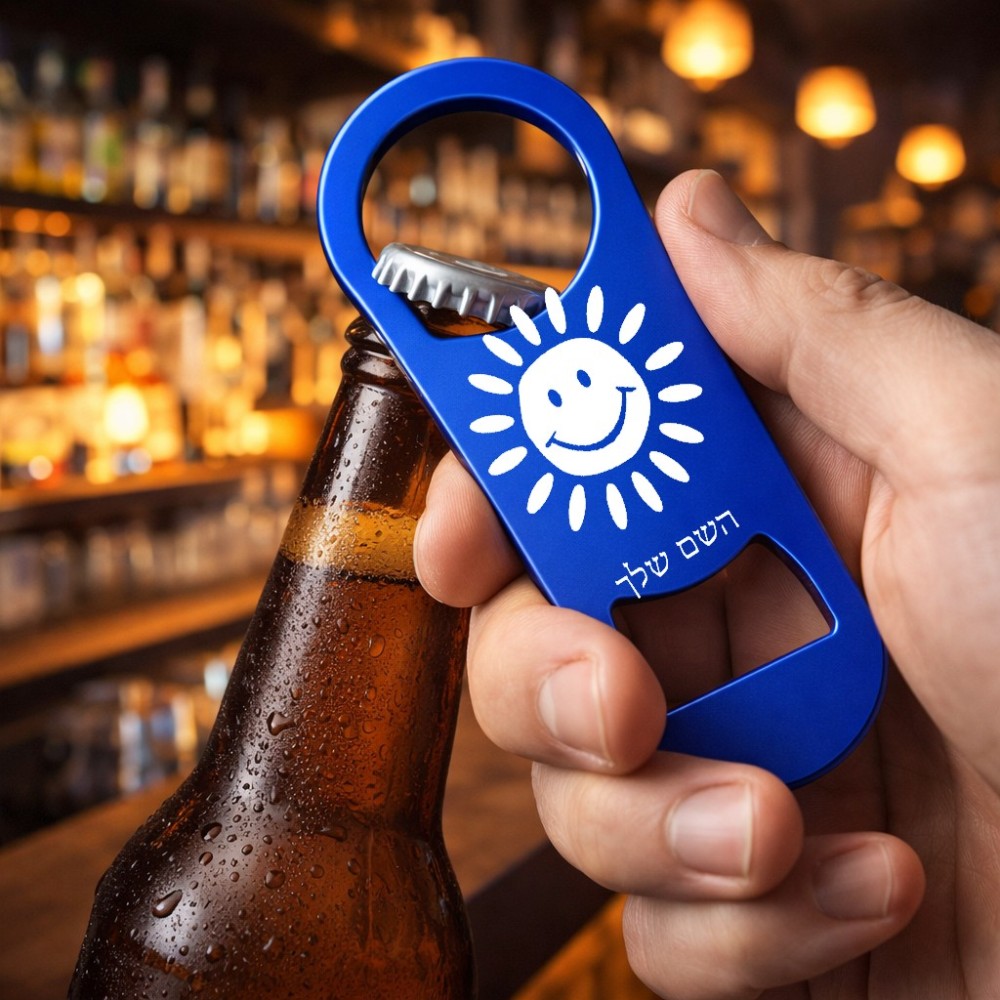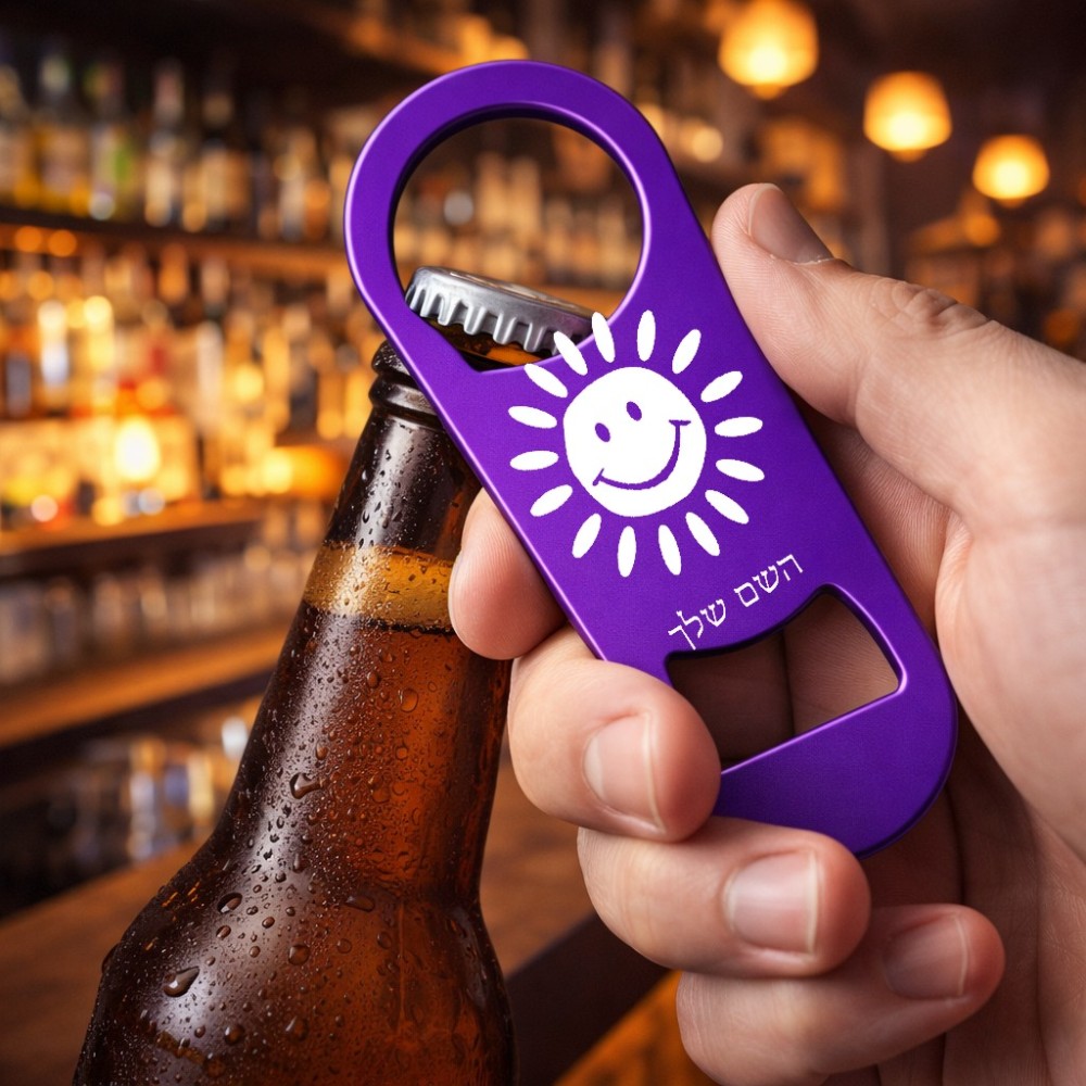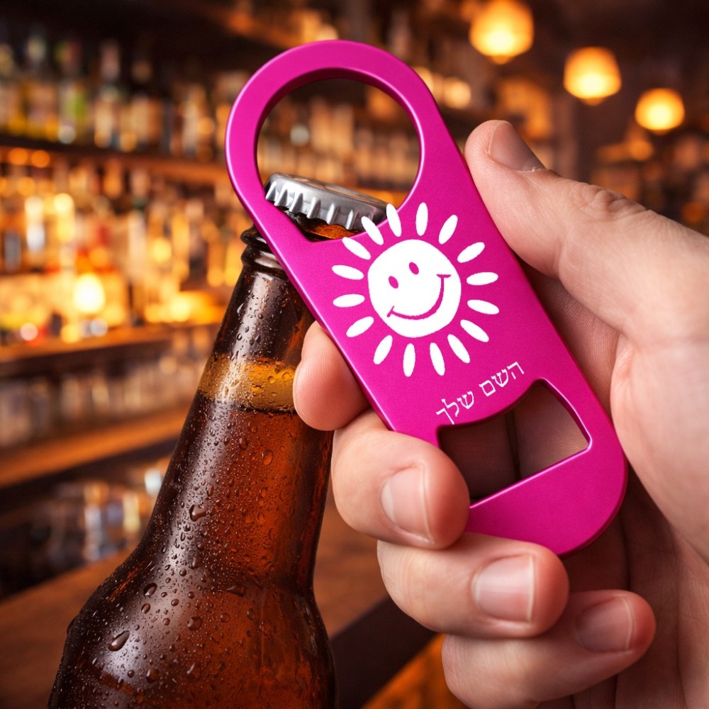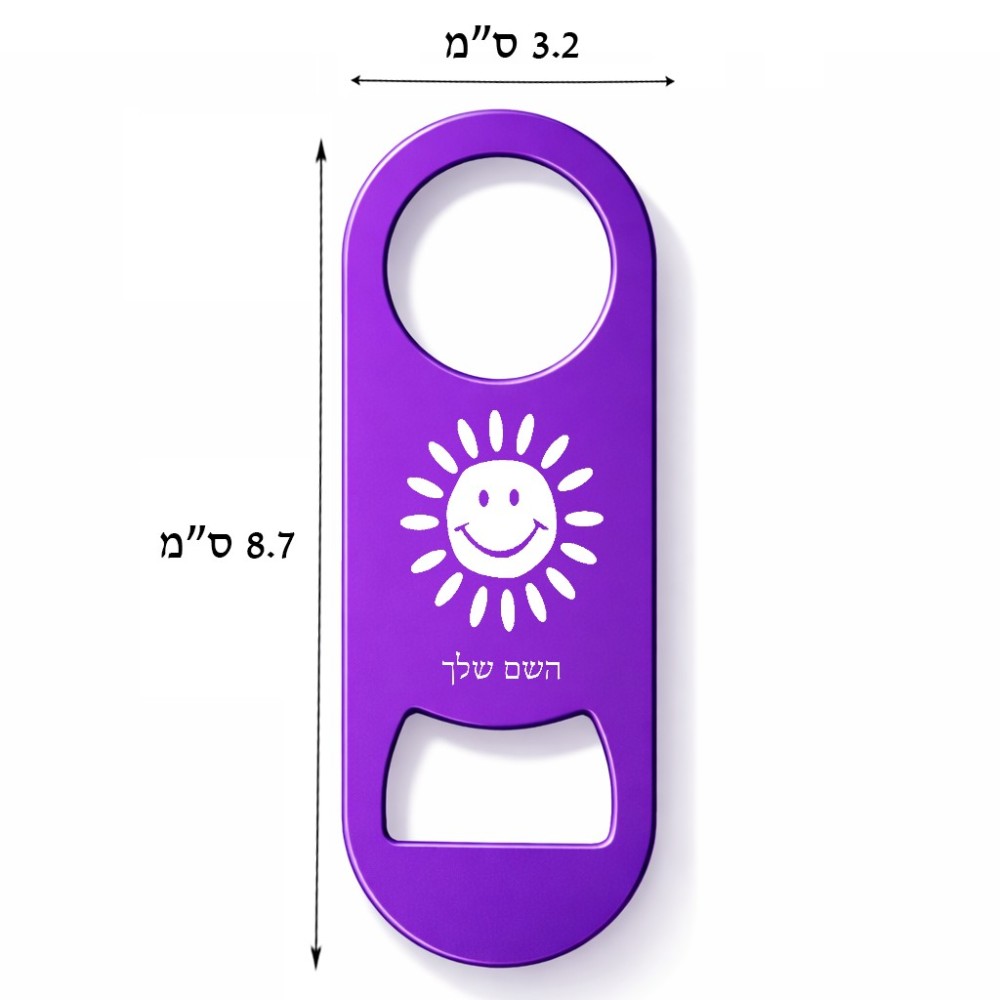 פותחן בקבוקים בעיצוב אישי עם השם שלך בעיצוב שמש. את השם המבוקש ניתן לציין בהזמנה, אם לא צויין אנחנו ניצור קשר לבירור.