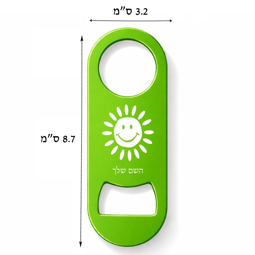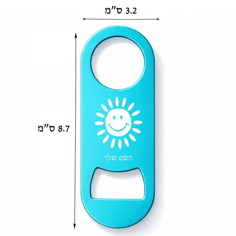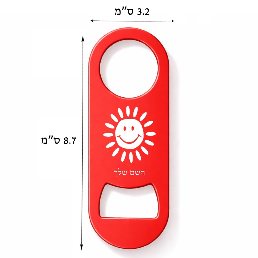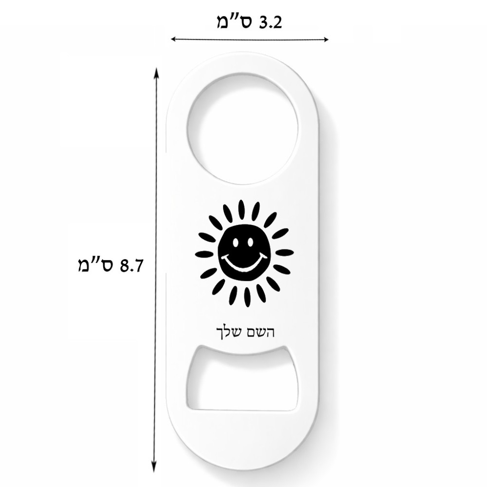 פותחן בקבוקים בעיצוב אישי עם השם שלך בעיצוב שמש גודל הפותחן 3.2 × 8.7 ס"מ