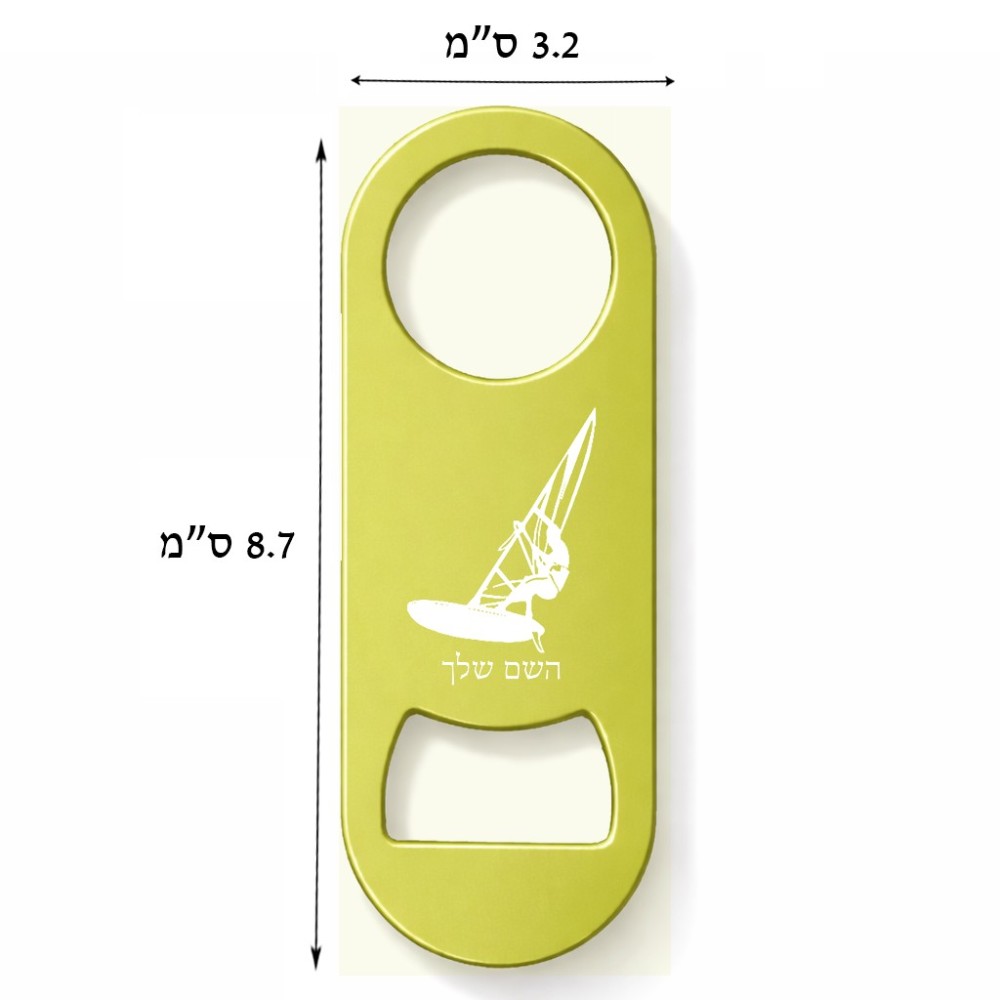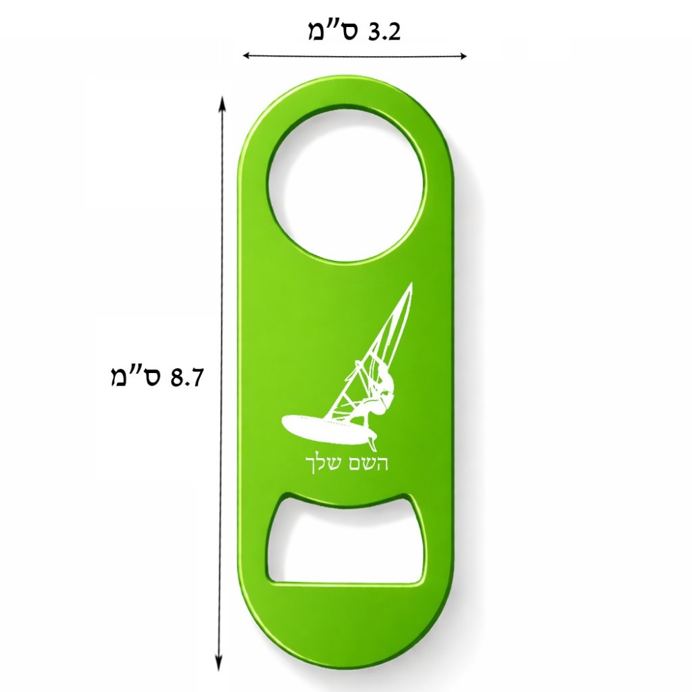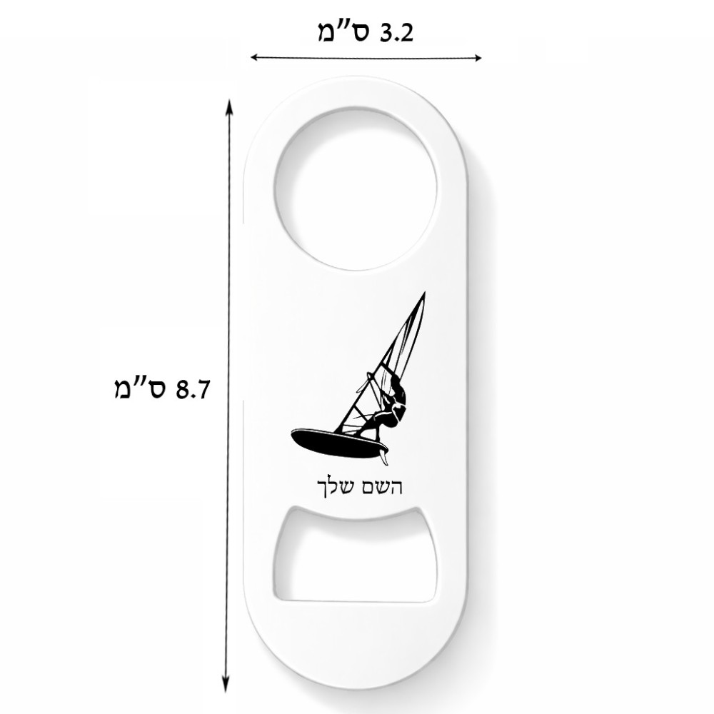 פותחן בקבוקים בעיצוב אישי עם השם שלך בעיצוב לגלוש - גלישה - שייט גודל הפותחן 3.2 × 8.7 ס"מ