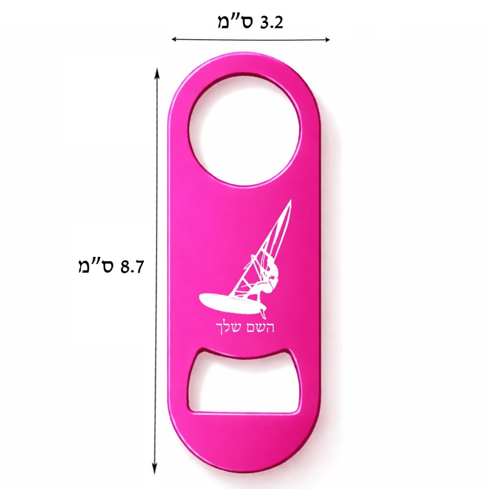 פותחן בקבוקים בעיצוב אישי עם השם שלך בעיצוב לגלוש - גלישה - שייט. את השם המבוקש ניתן לציין בהזמנה, אם לא צויין אנחנו ניצור קשר לבירור.