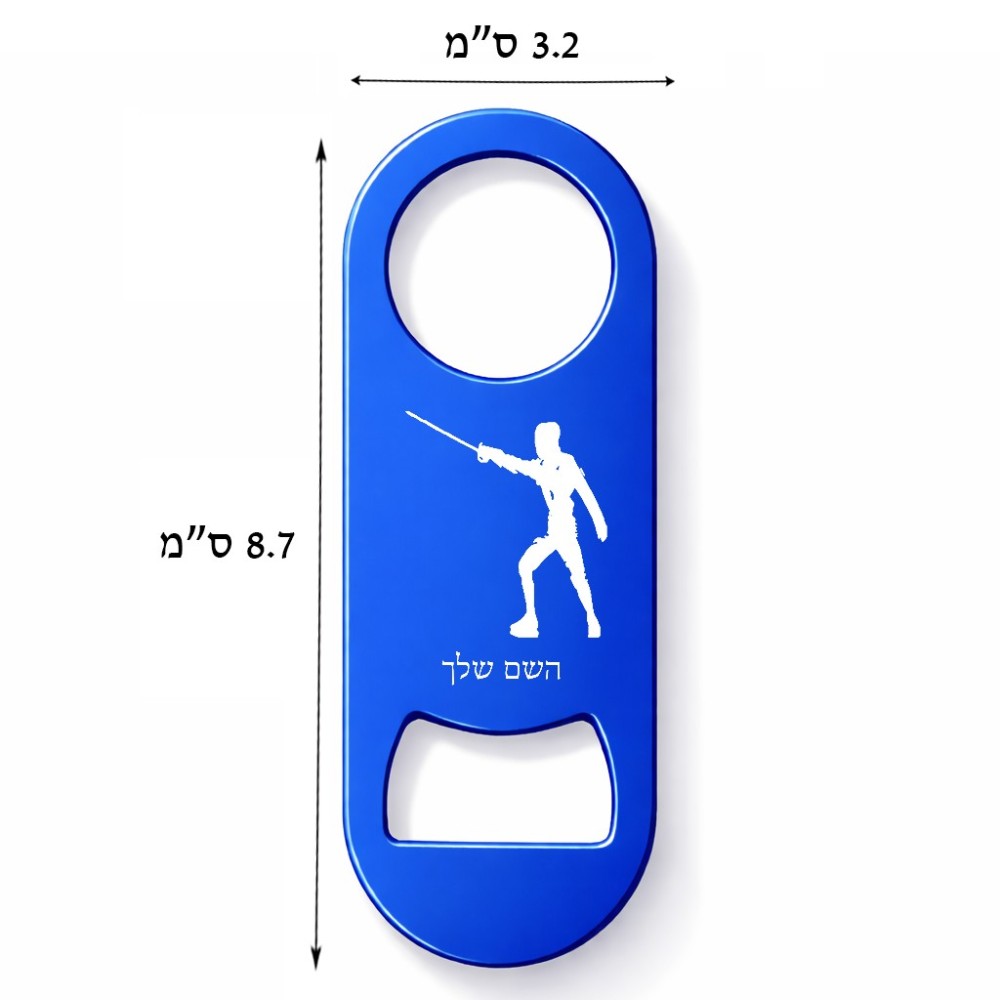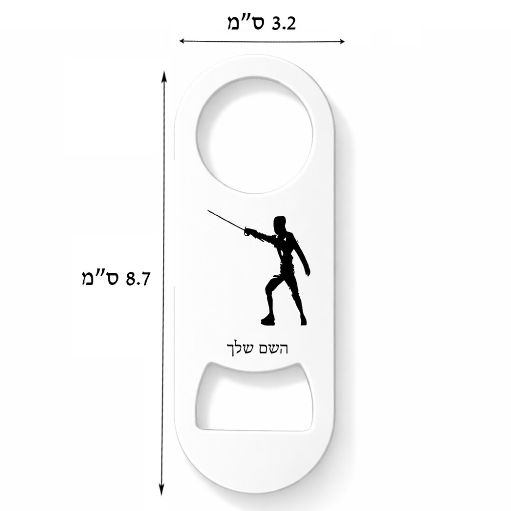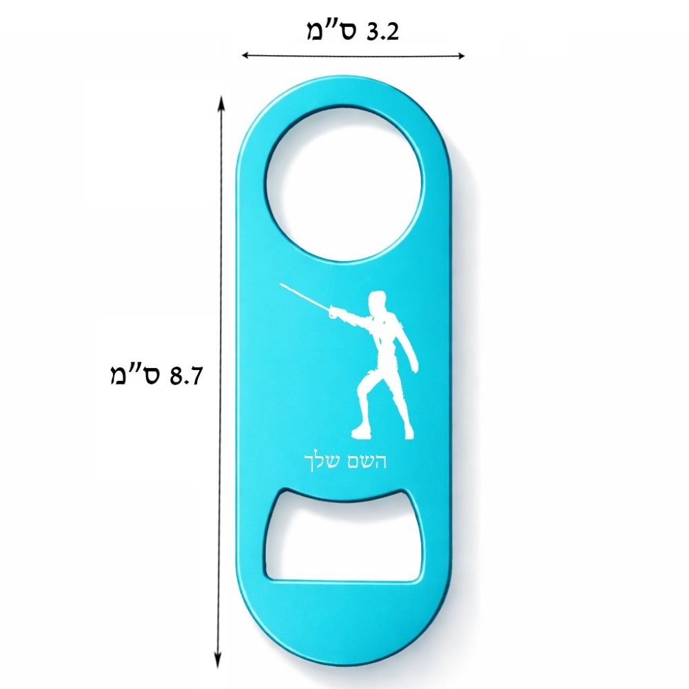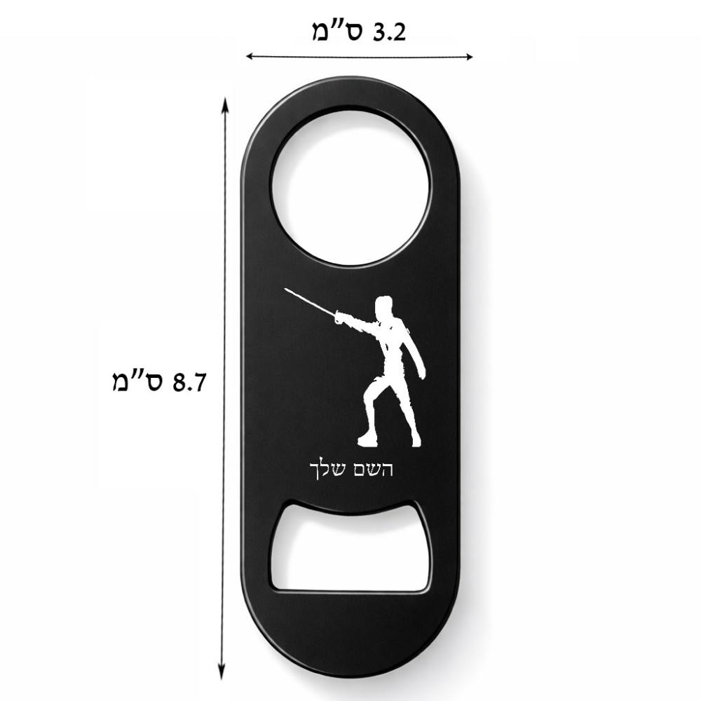 פותחן בקבוקים בעיצוב אישי עם השם שלך בעיצוב לוחם סייף גודל הפותחן 3.2 × 8.7 ס"מ