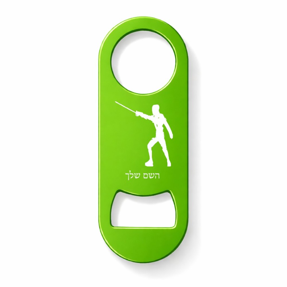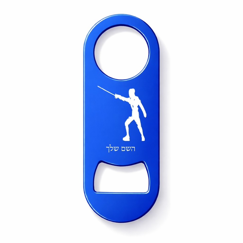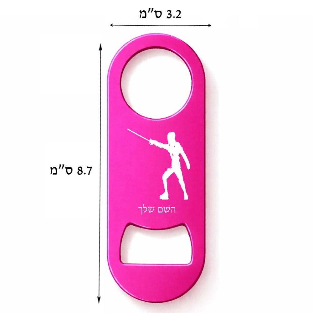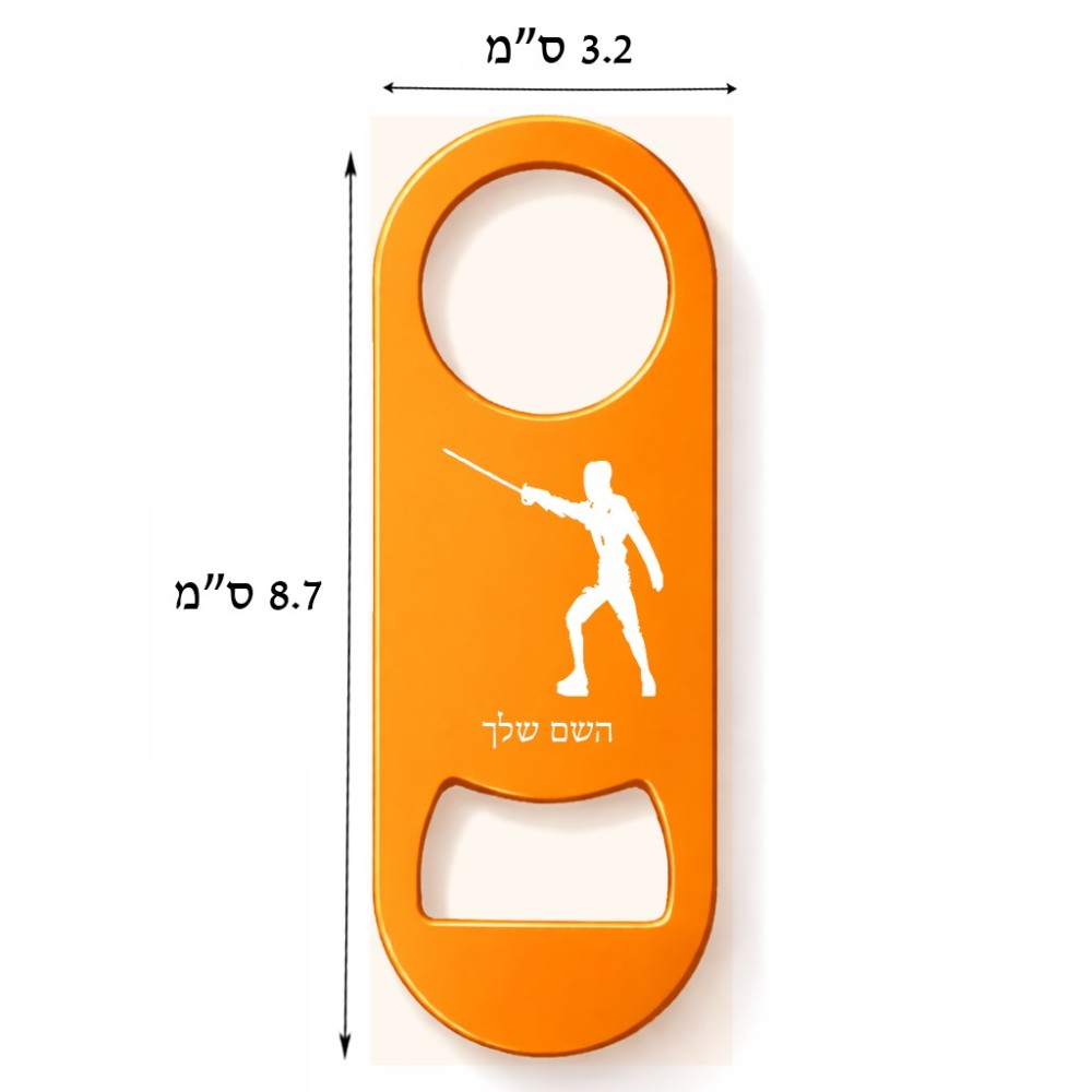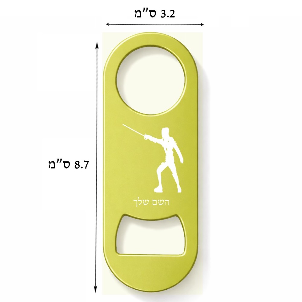 פותחן בקבוקים בעיצוב אישי עם השם שלך בעיצוב לוחם סייף גודל הפותחן 3.2 × 8.7 ס"מ