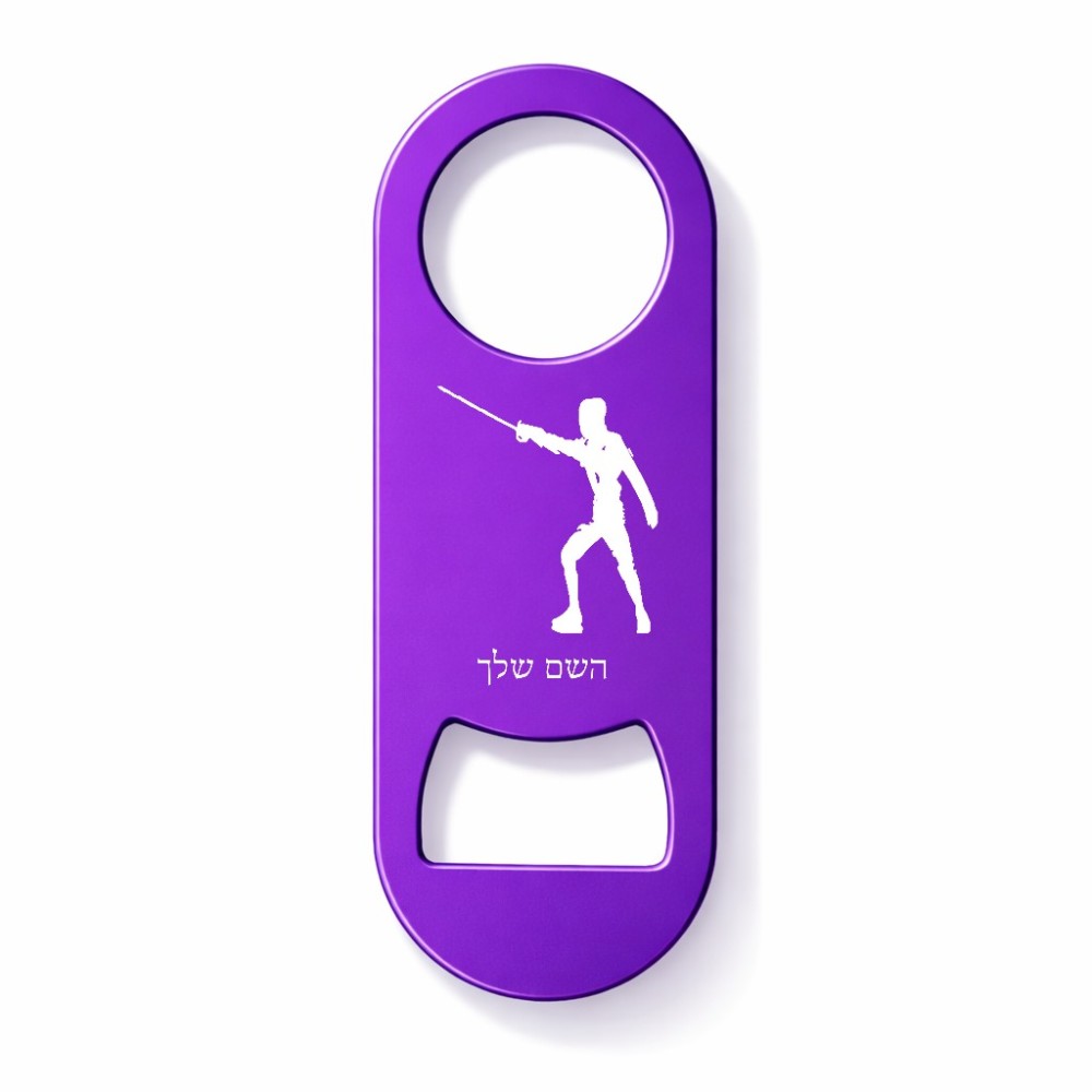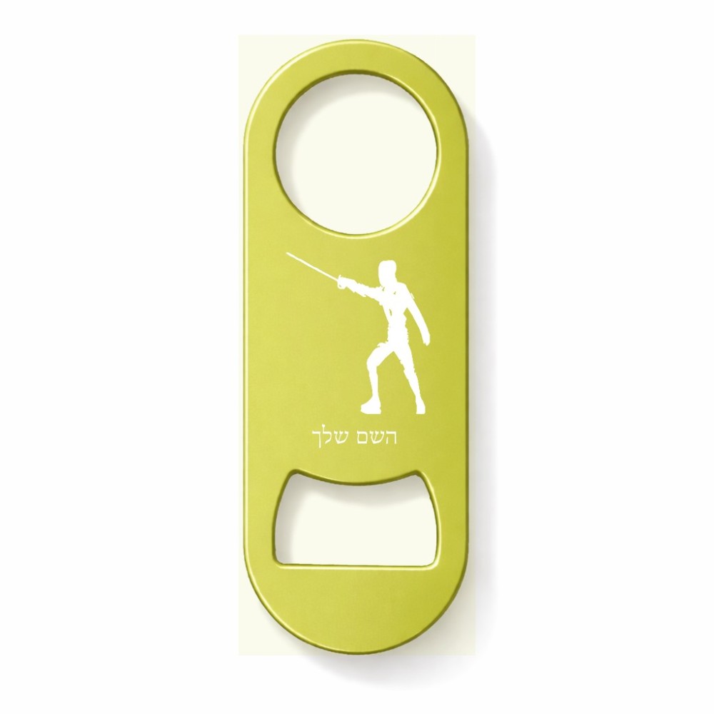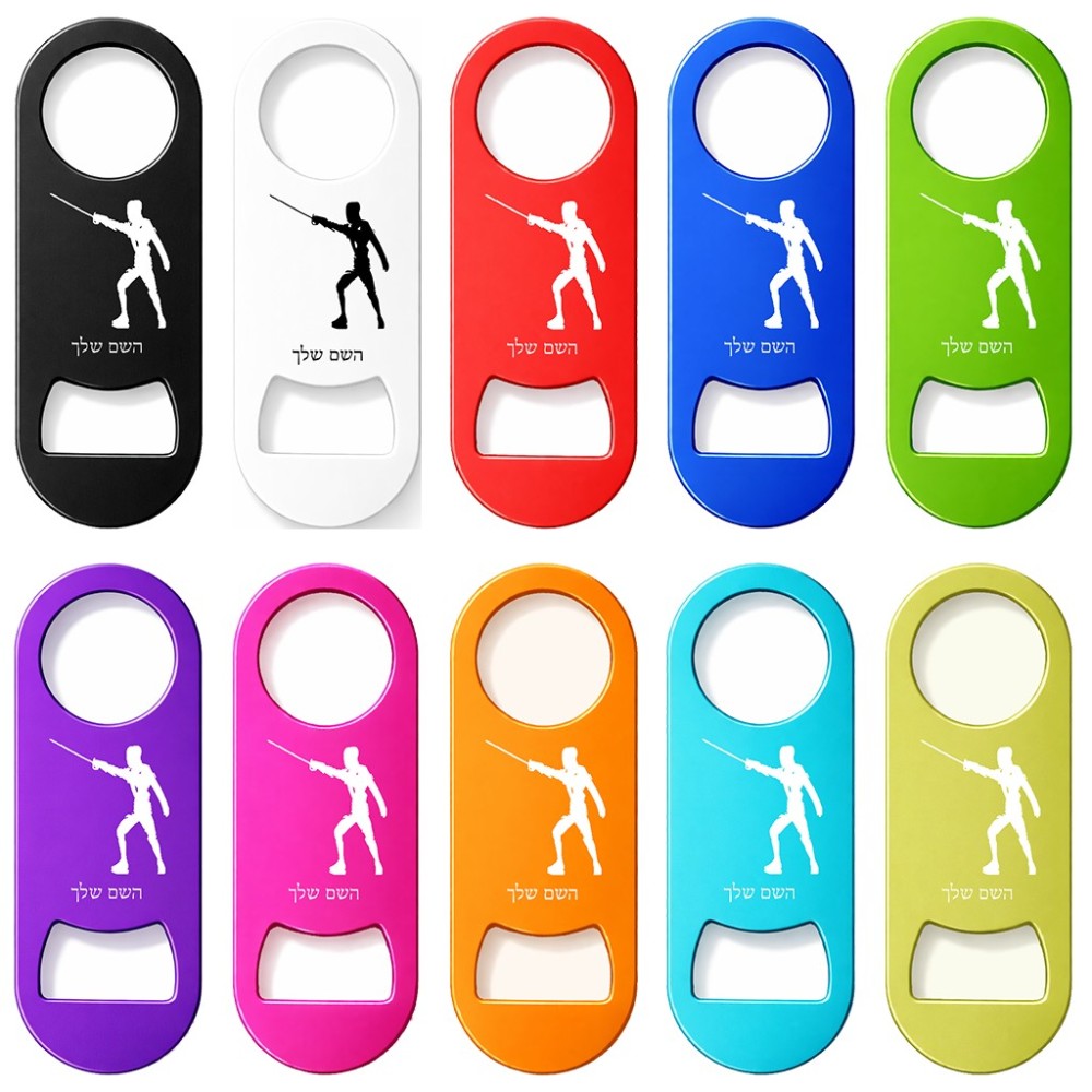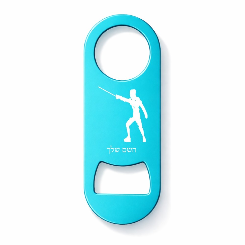 פותחן בקבוקים בעיצוב אישי עם השם שלך בעיצוב לוחם סייף גודל הפותחן 3.2 × 8.7 ס"מ