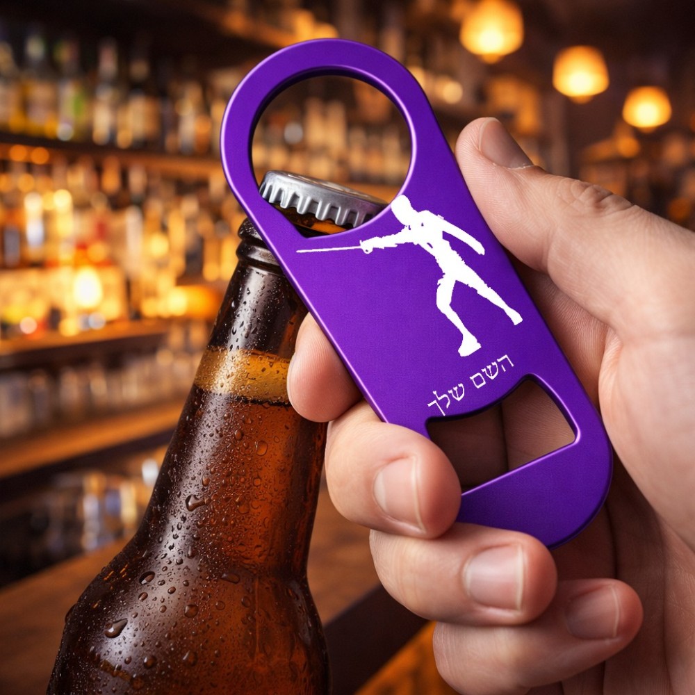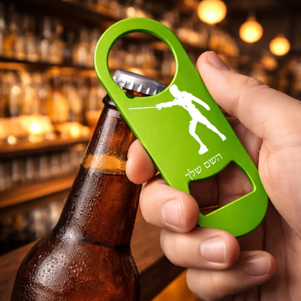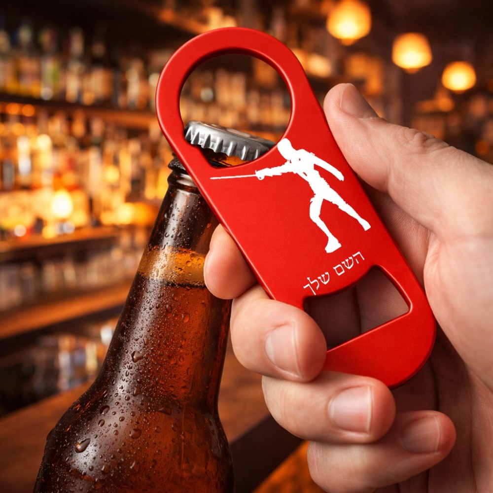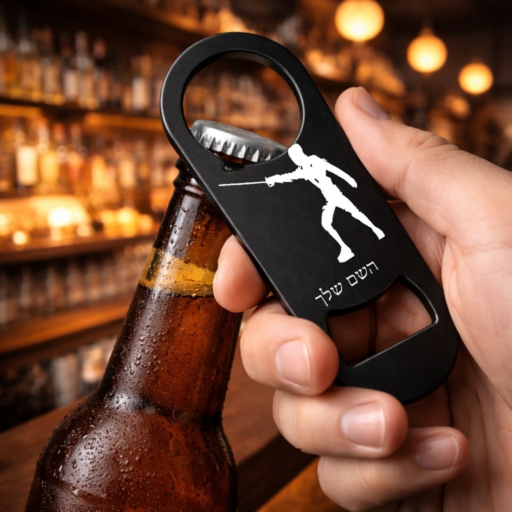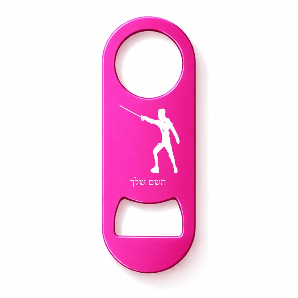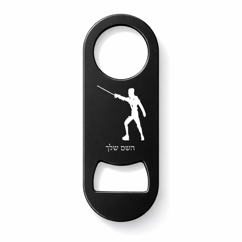 פותחן בקבוקים בעיצוב אישי עם השם שלך בעיצוב לוחם סייף. את השם המבוקש ניתן לציין בהזמנה, אם לא צויין אנחנו ניצור קשר לבירור.