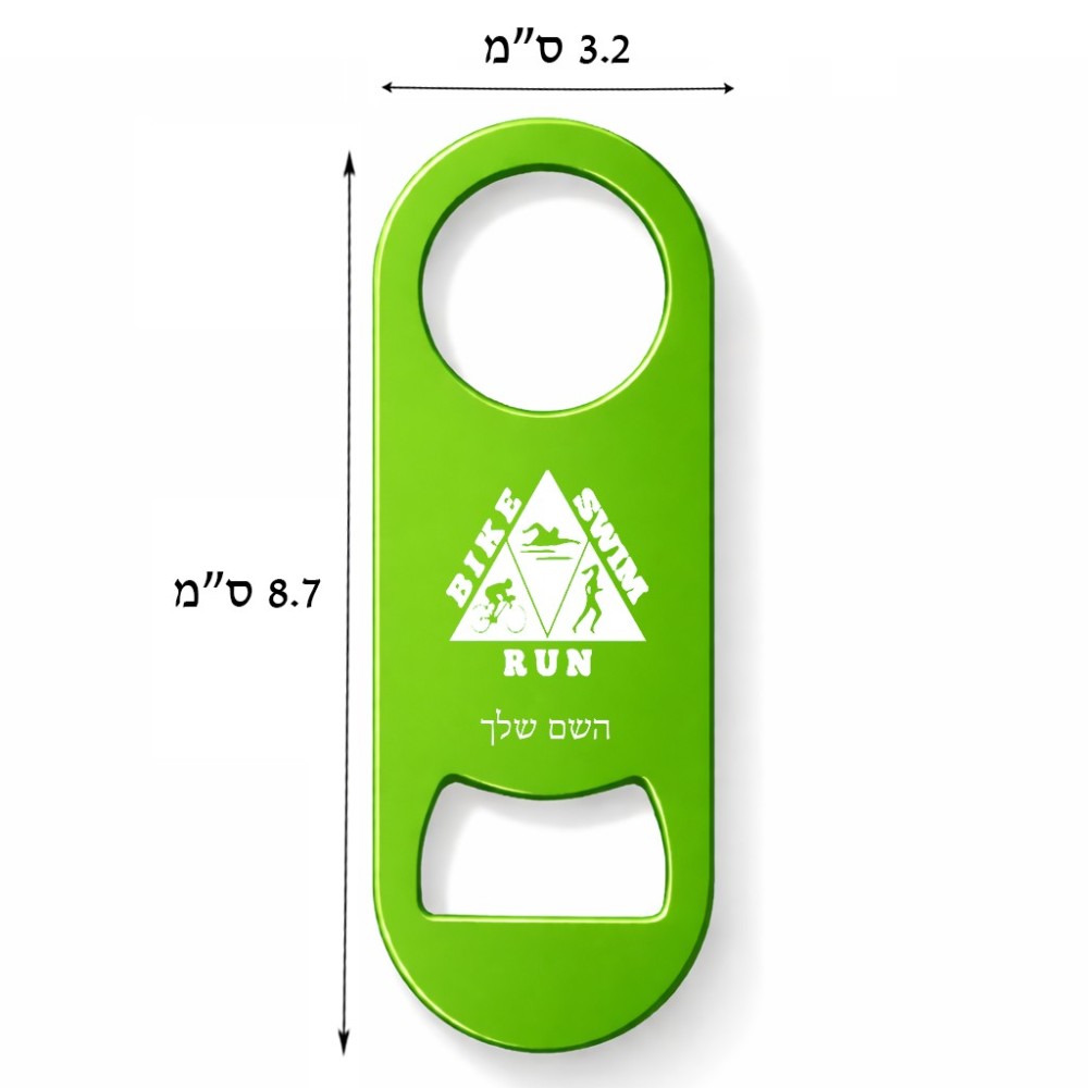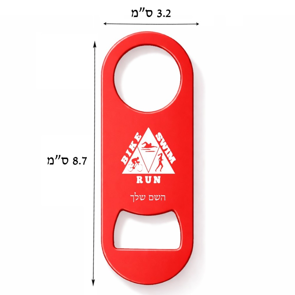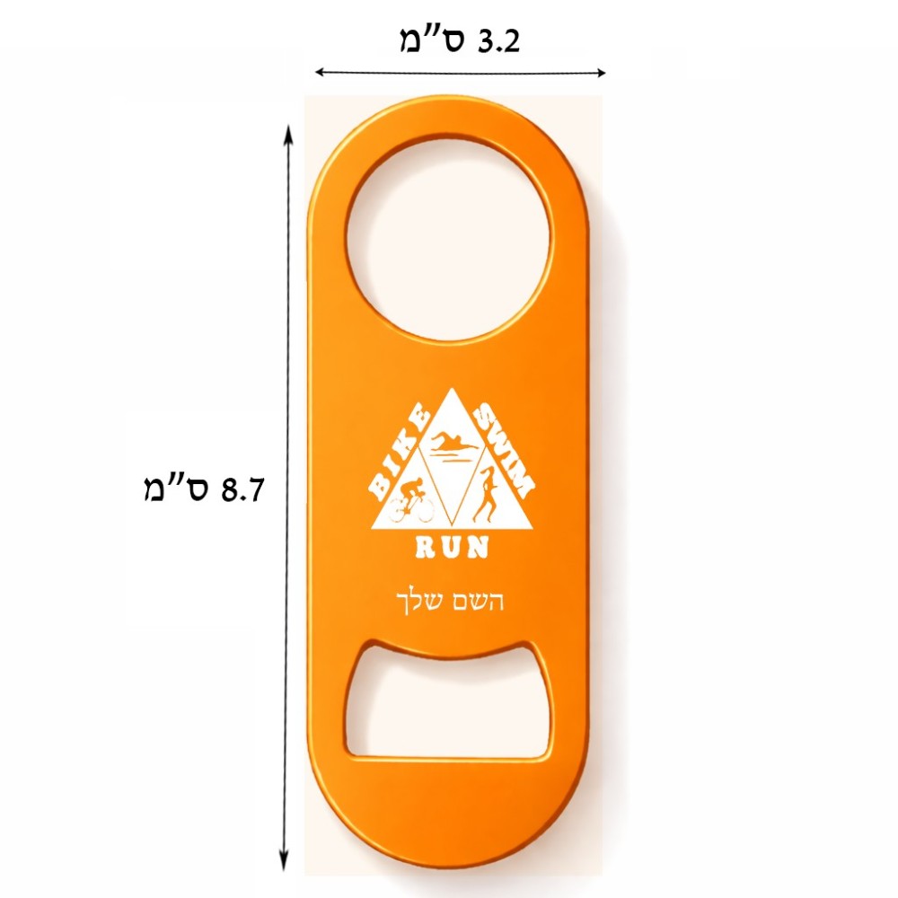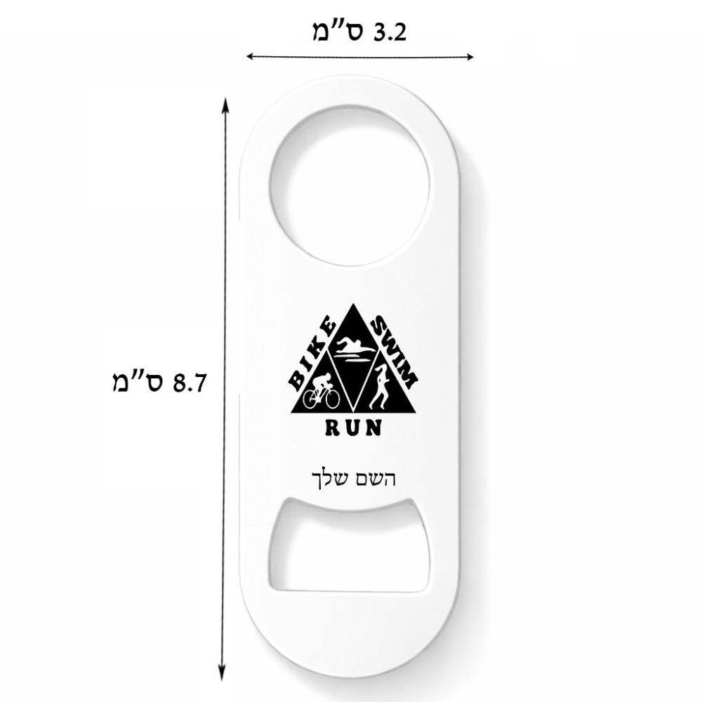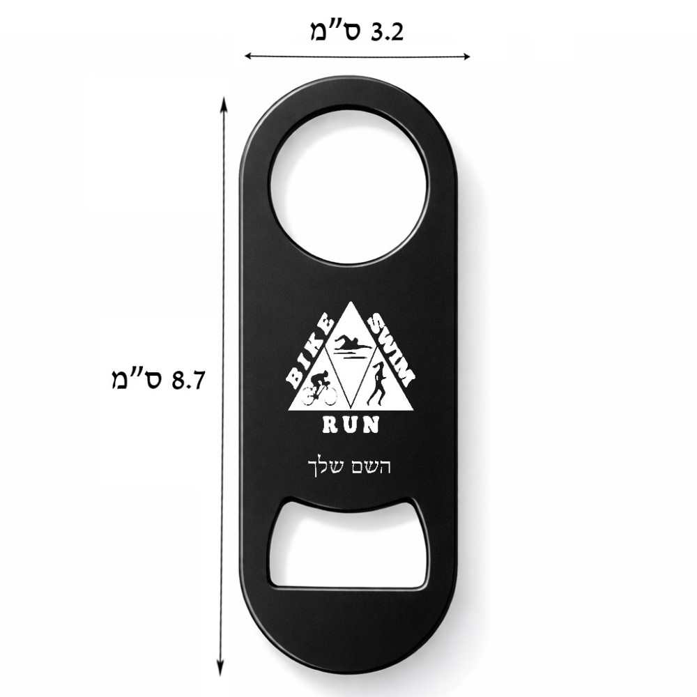 פותחן בקבוקים בעיצוב אישי עם השם שלך בעיצוב טריאתלון. את השם המבוקש ניתן לציין בהזמנה, אם לא צויין אנחנו ניצור קשר לבירור.