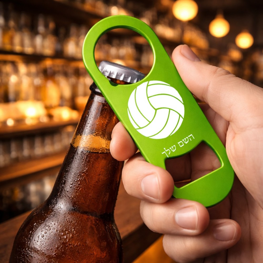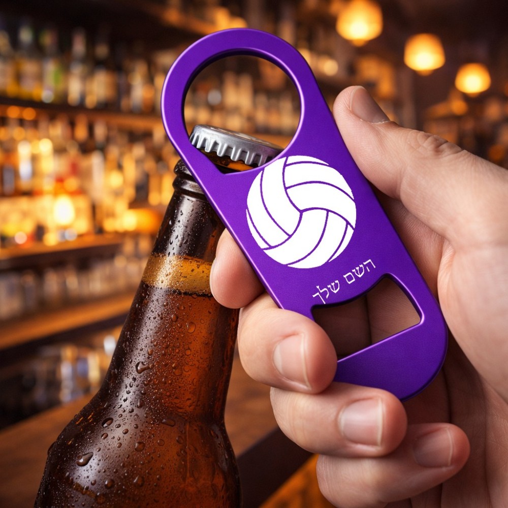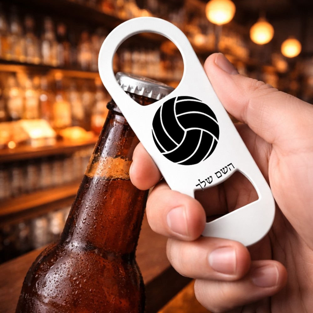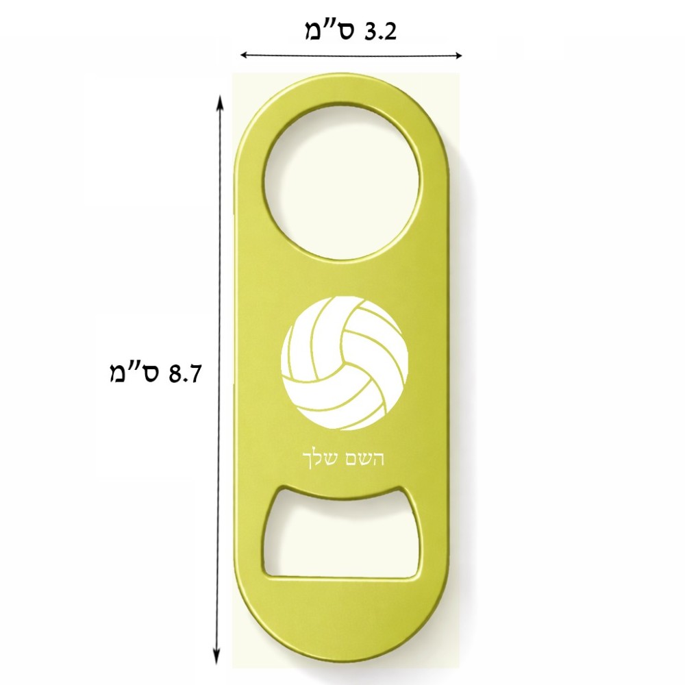 פותחן בקבוקים בעיצוב אישי עם השם שלך בעיצוב כדור כדורעף. את השם המבוקש ניתן לציין בהזמנה, אם לא צויין אנחנו ניצור קשר לבירור.