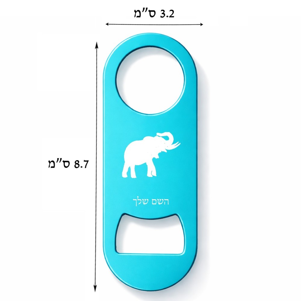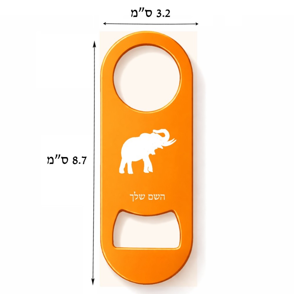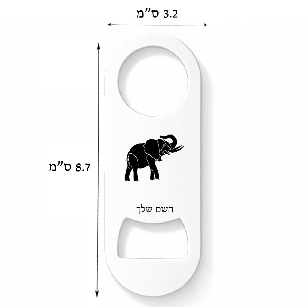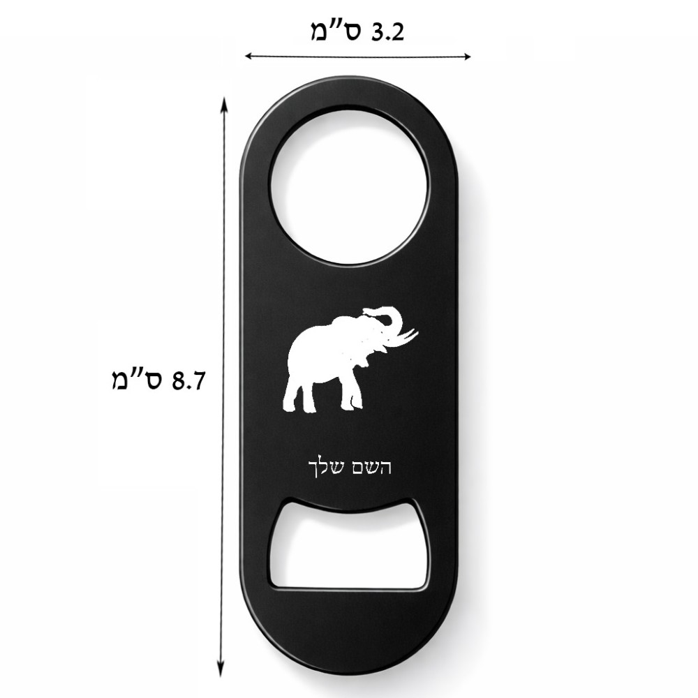 פותחן בקבוקים בעיצוב אישי עם השם שלך בעיצוב פיל גודל הפותחן 3.2 × 8.7 ס"מ