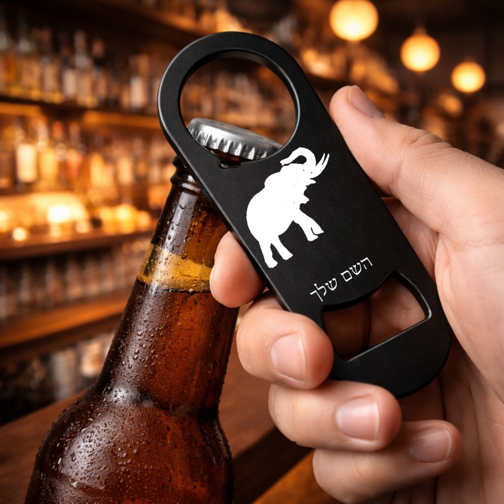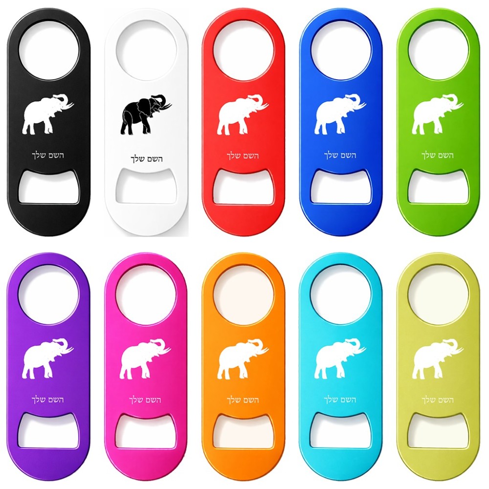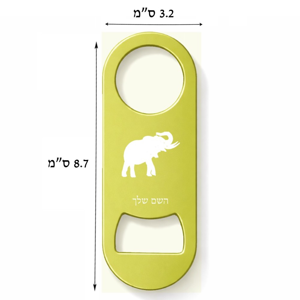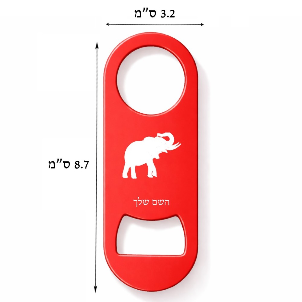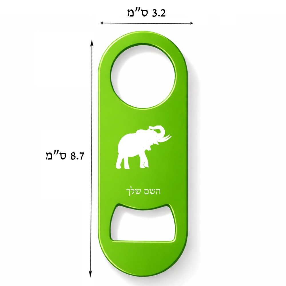 פותחן בקבוקים בעיצוב אישי עם השם שלך בעיצוב פיל גודל הפותחן 3.2 × 8.7 ס"מ