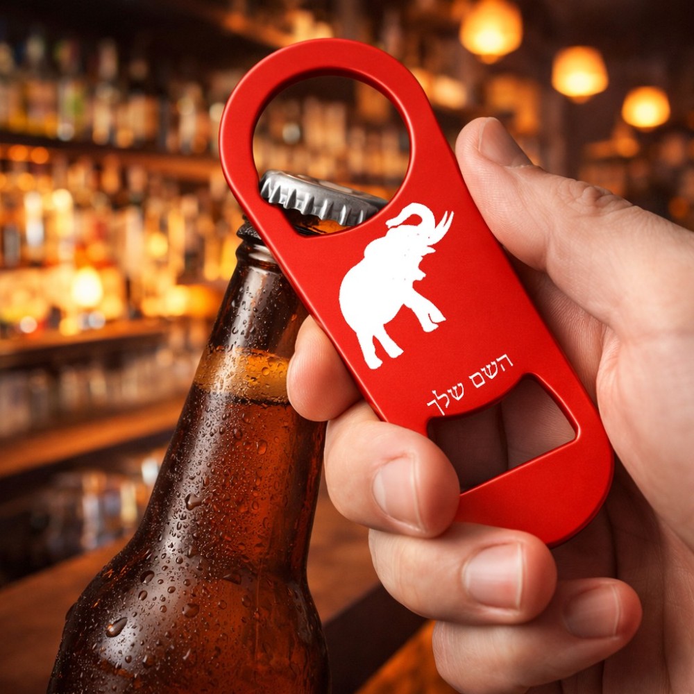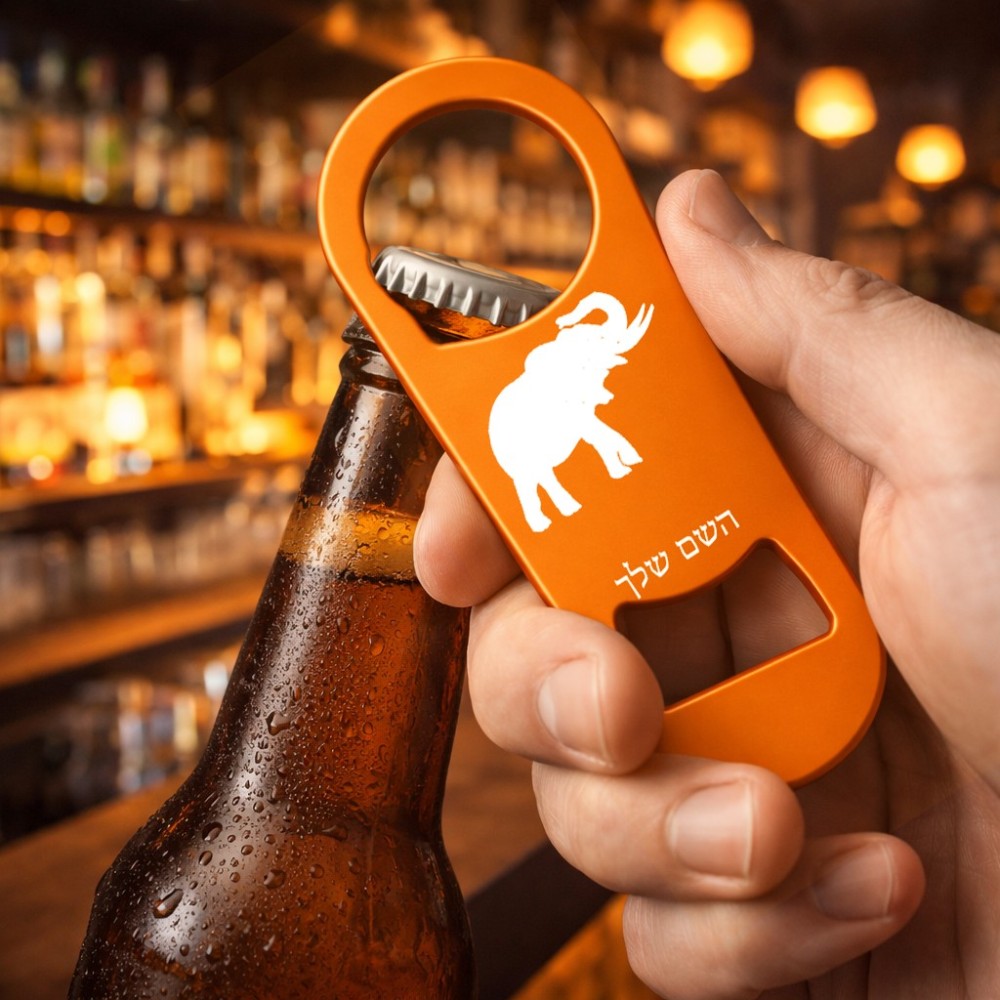 פותחן בקבוקים בעיצוב אישי עם השם שלך בעיצוב פיל. את השם המבוקש ניתן לציין בהזמנה, אם לא צויין אנחנו ניצור קשר לבירור.