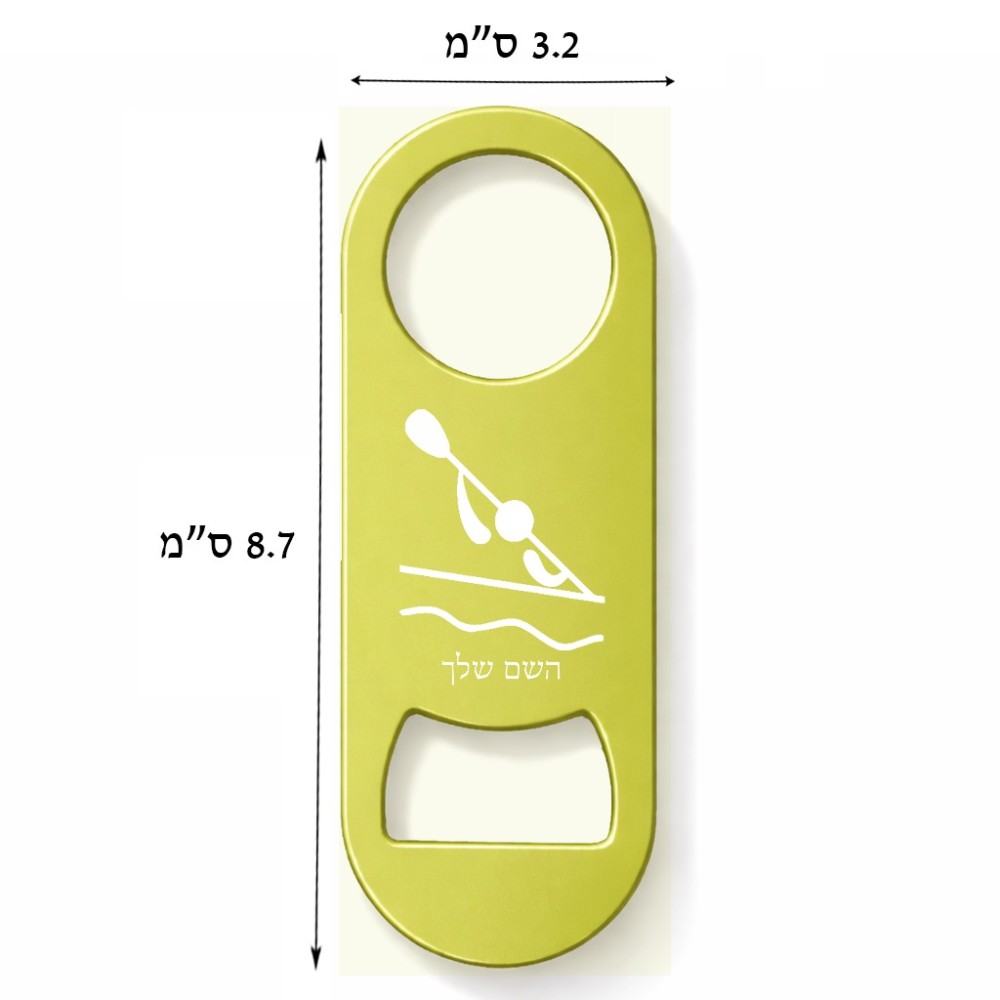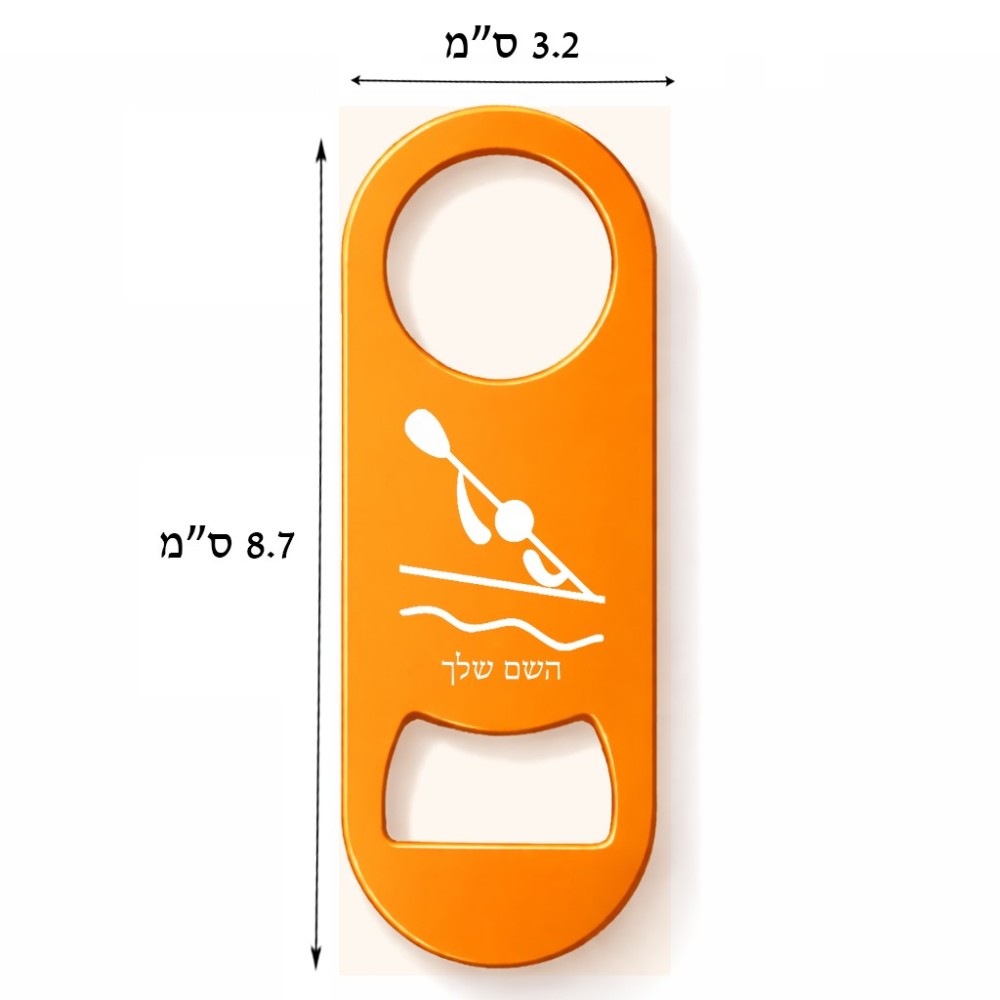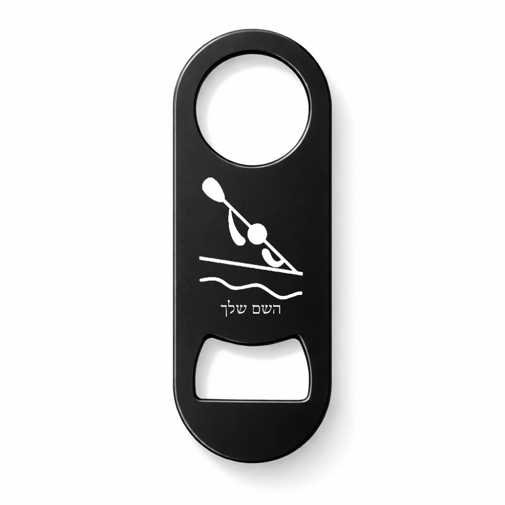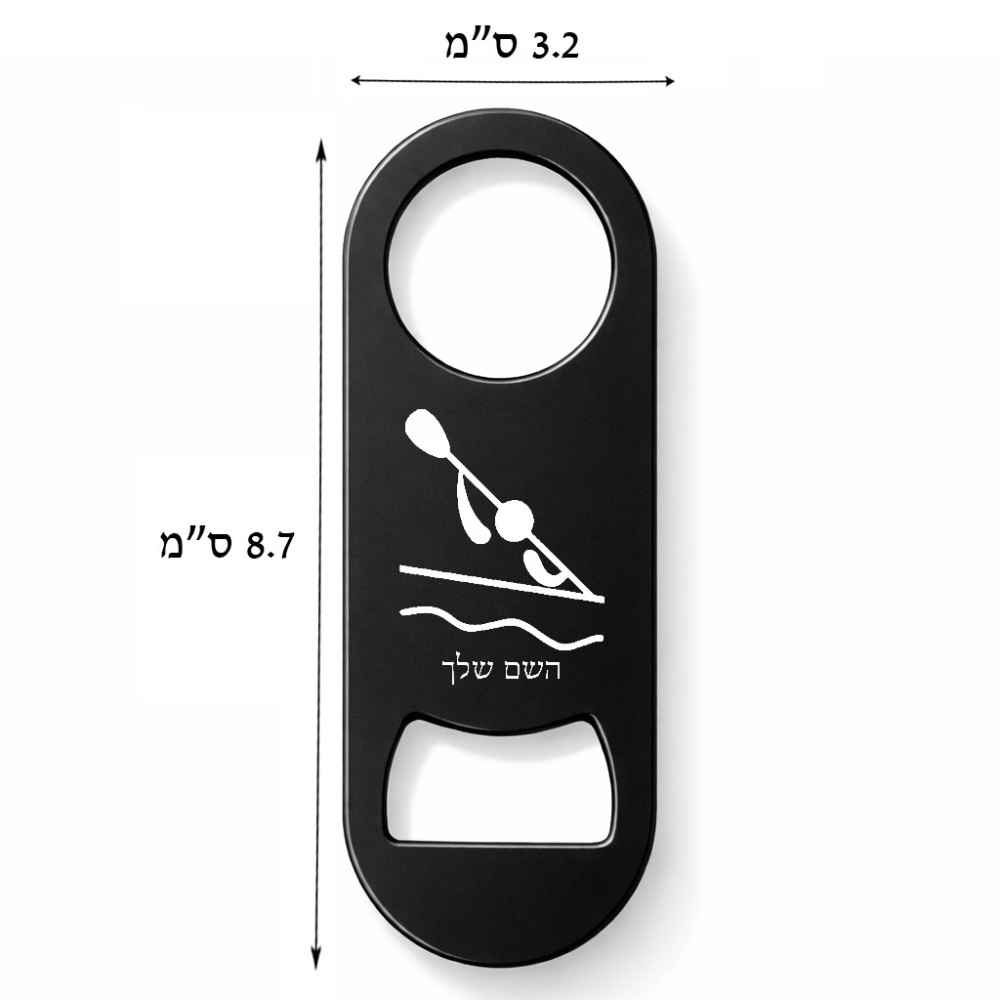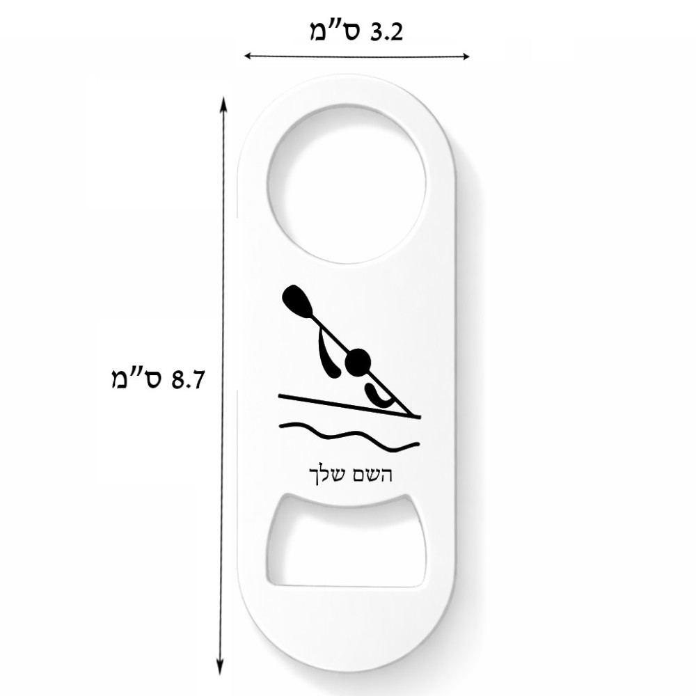 פותחן בקבוקים בעיצוב אישי עם השם שלך בעיצוב קיאק אולימפי. את השם המבוקש ניתן לציין בהזמנה, אם לא צויין אנחנו ניצור קשר לבירור.
