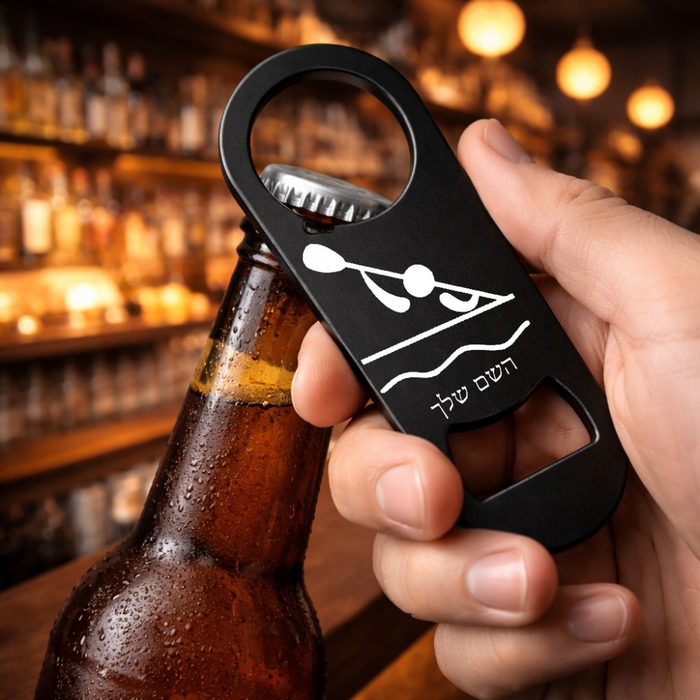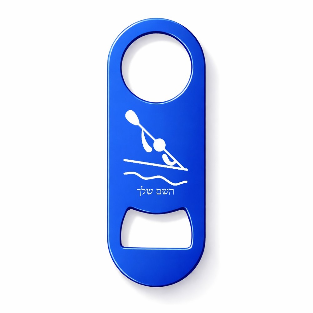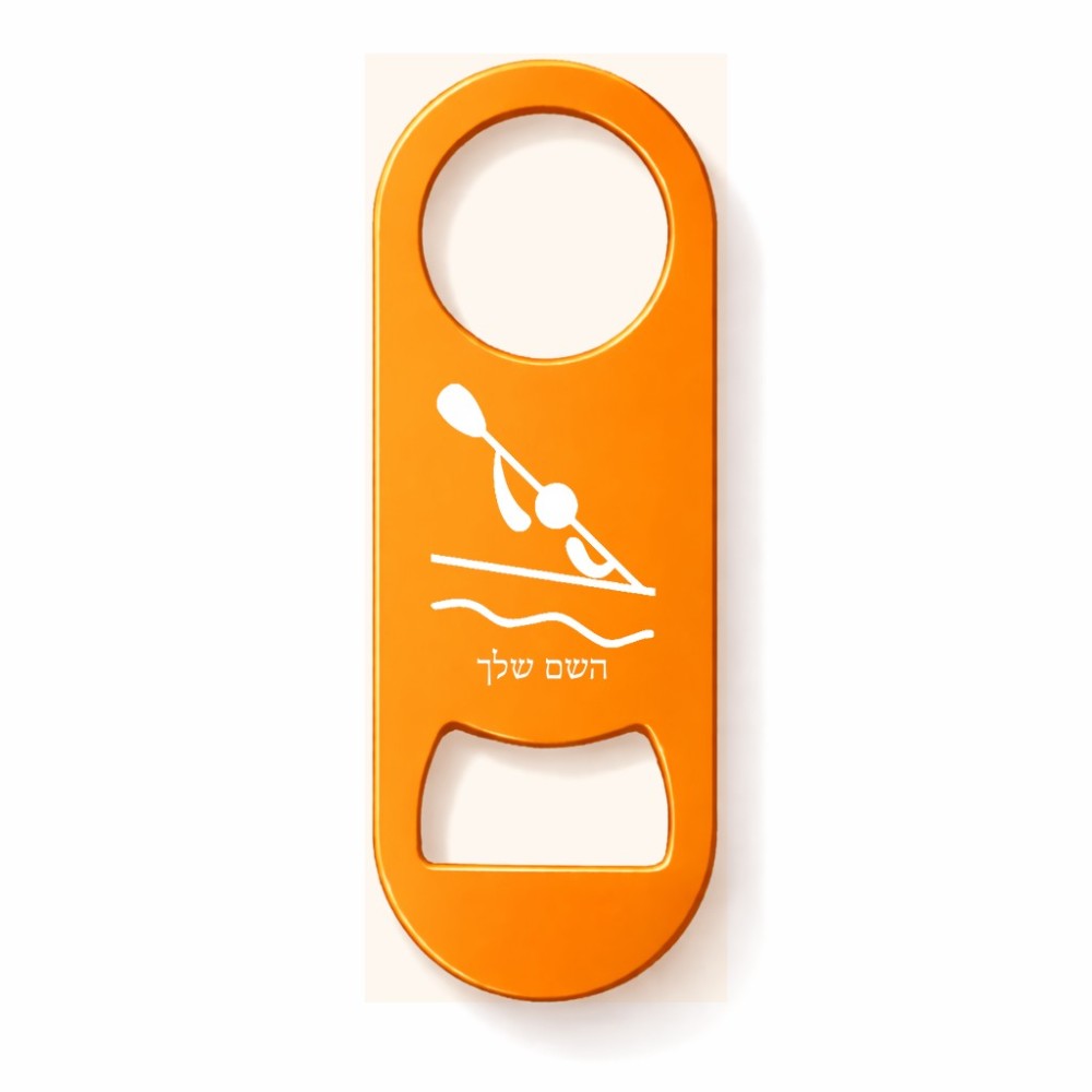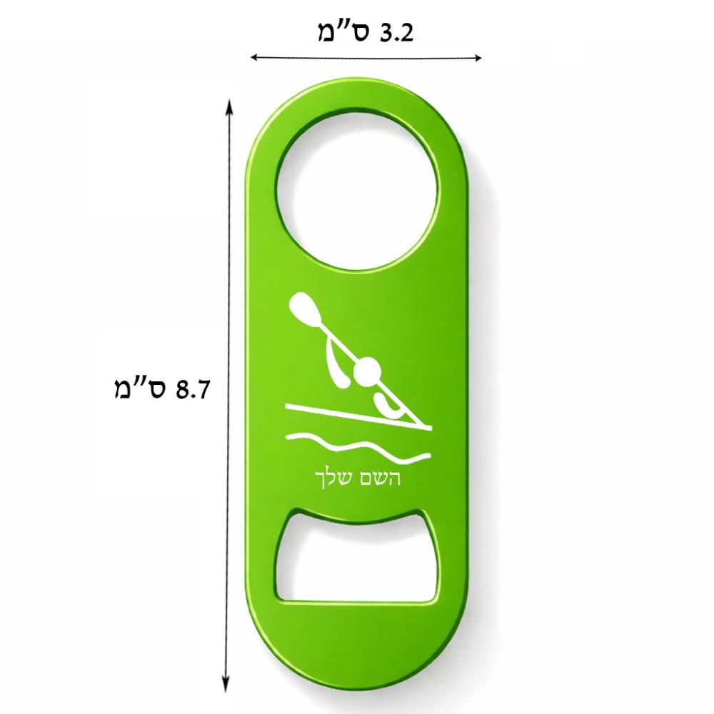 פותחן בקבוקים בעיצוב אישי עם השם שלך בעיצוב קיאק אולימפי. את השם המבוקש ניתן לציין בהזמנה, אם לא צויין אנחנו ניצור קשר לבירור.