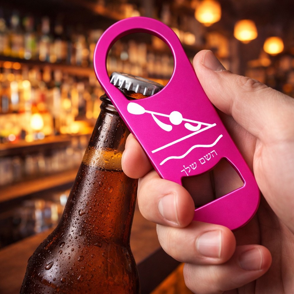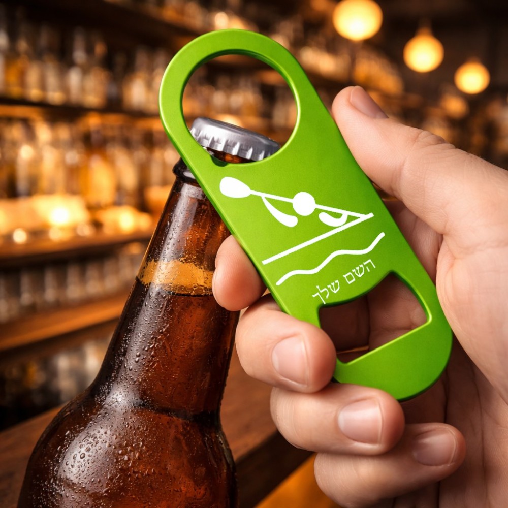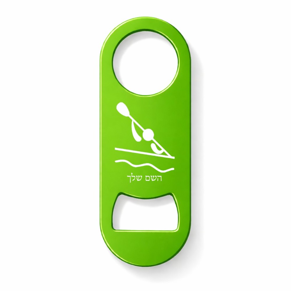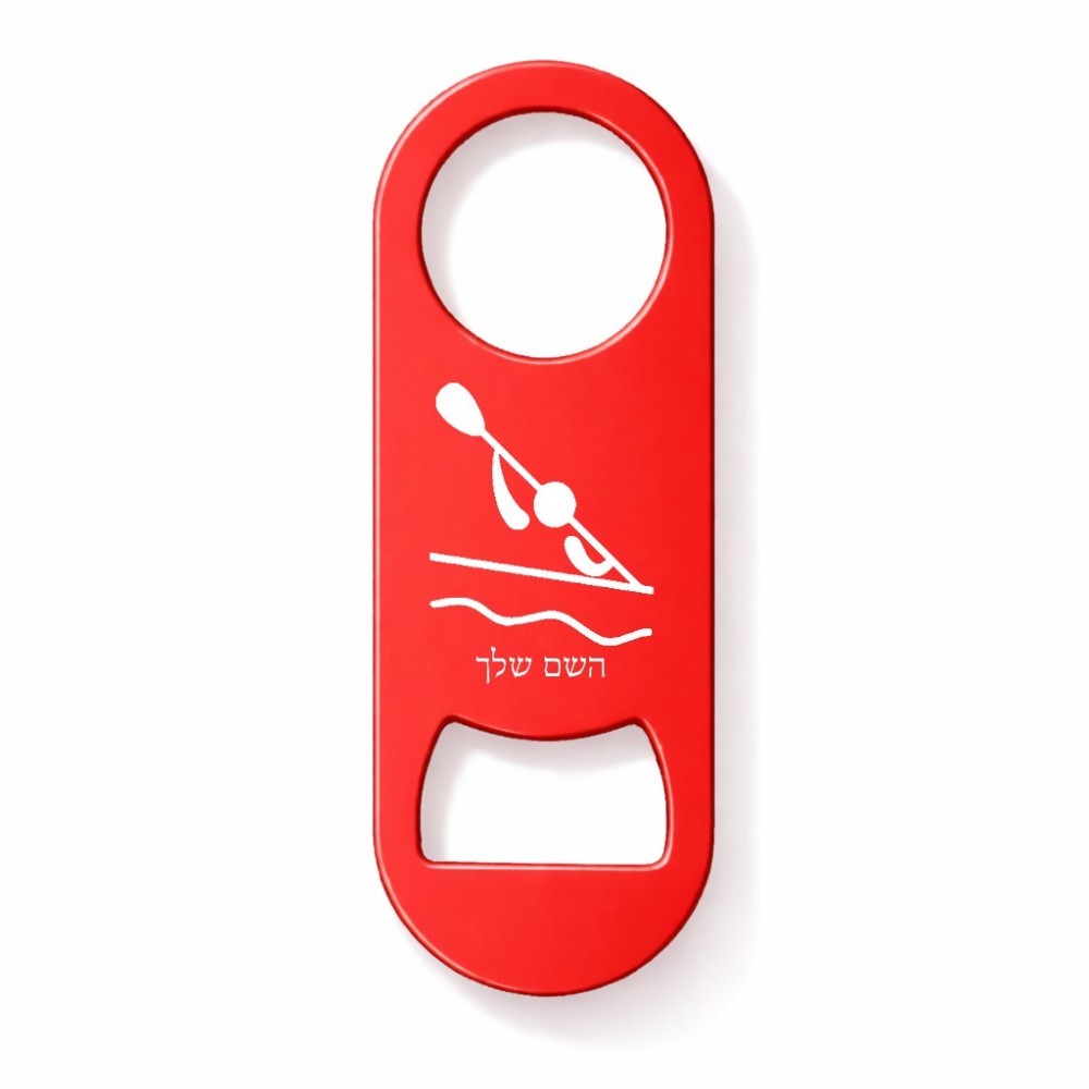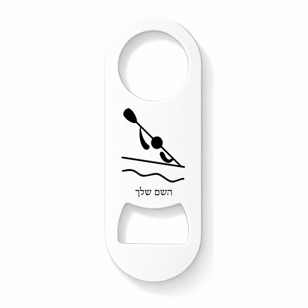 פותחן בקבוקים בעיצוב אישי עם השם שלך בעיצוב קיאק אולימפי. את השם המבוקש ניתן לציין בהזמנה, אם לא צויין אנחנו ניצור קשר לבירור.
