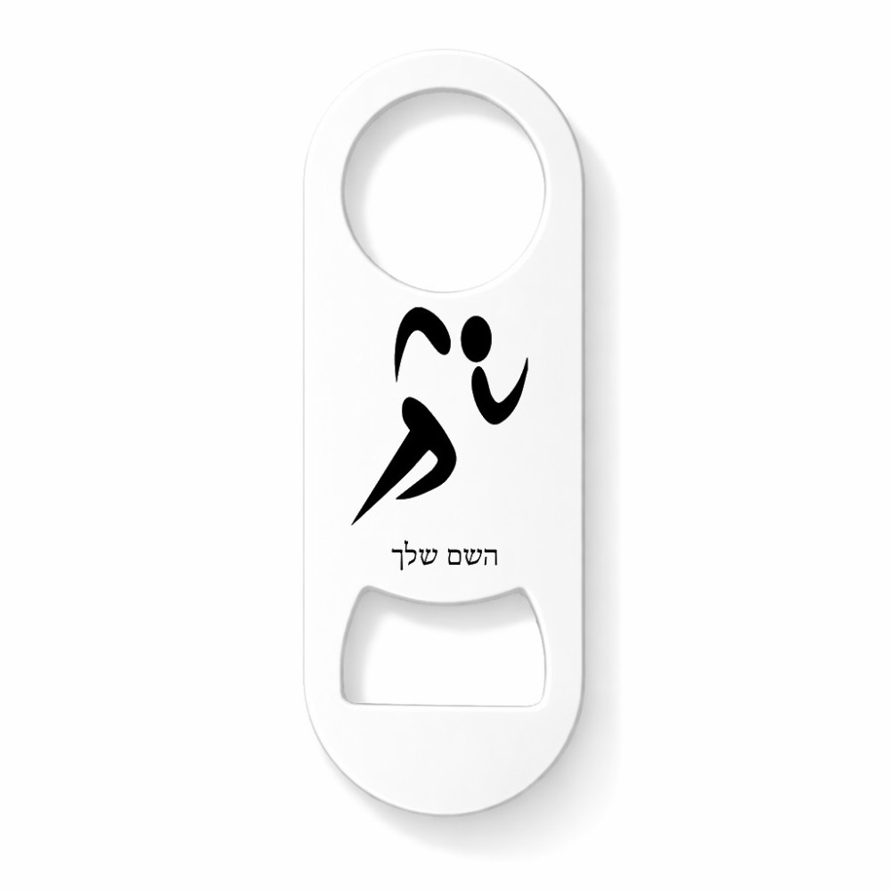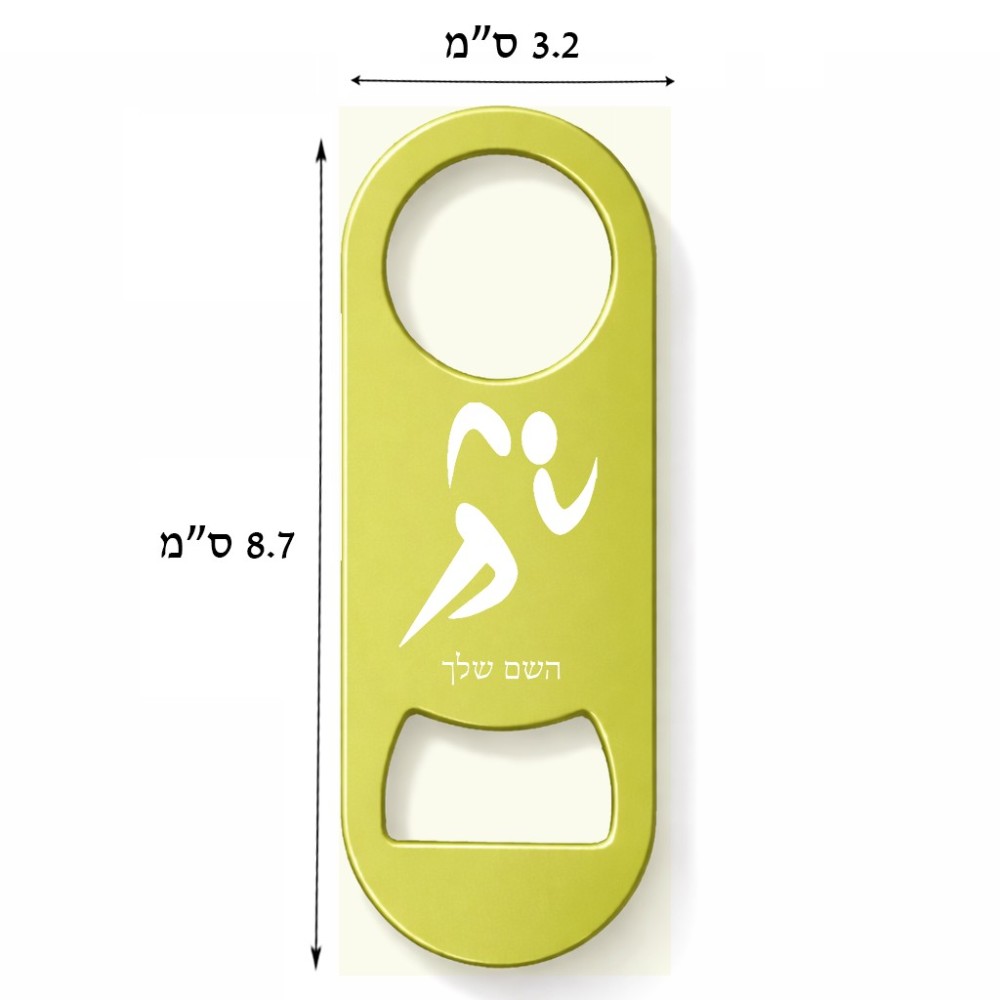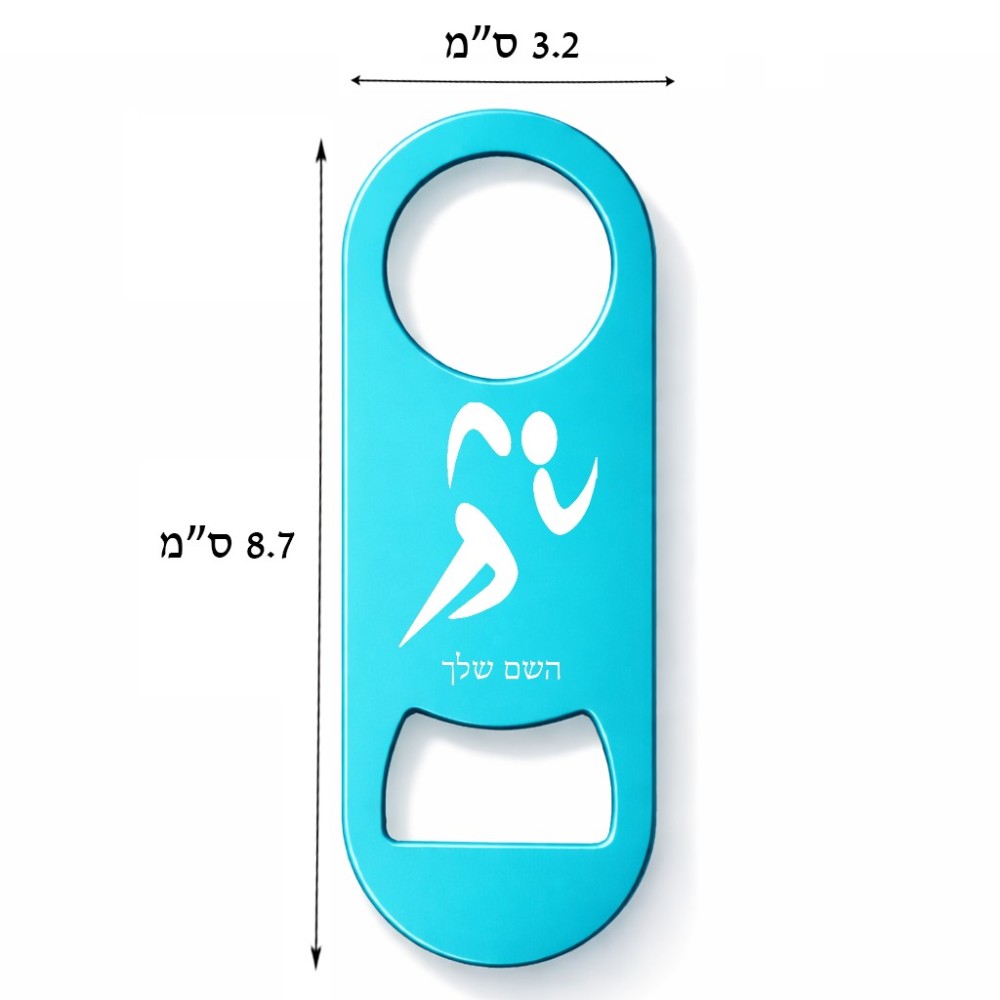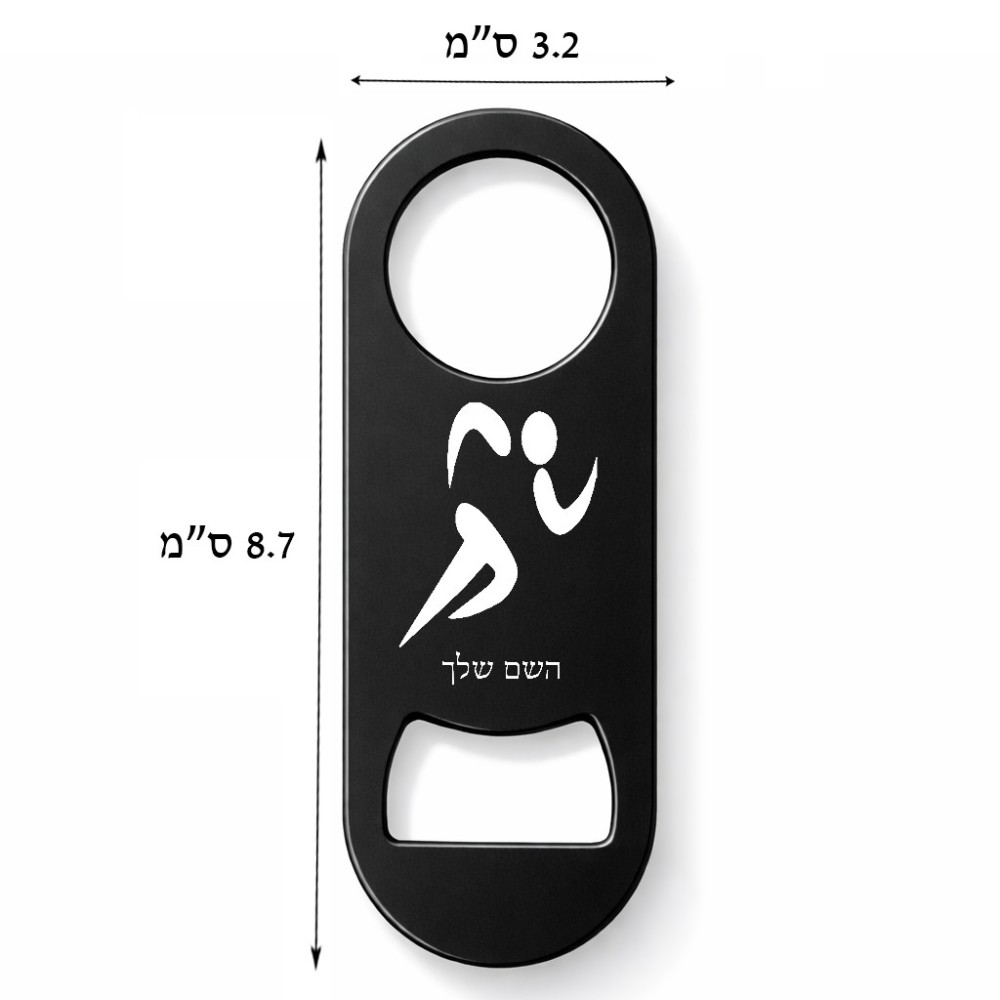 פותחן בקבוקים בעיצוב אישי עם השם שלך בעיצוב רצים אולימפיים גודל הפותחן 3.2 × 8.7 ס"מ