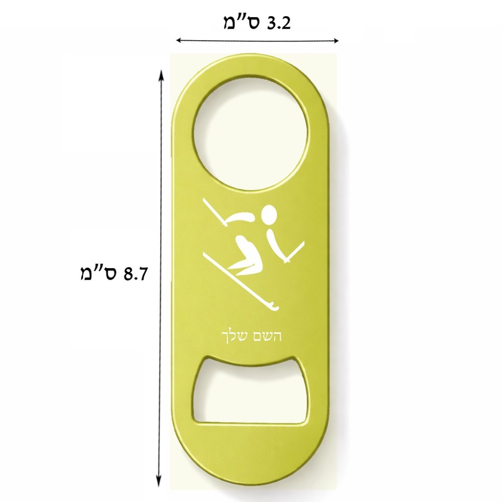פותחן בקבוקים בעיצוב אישי עם השם שלך בעיצוב סקי אולימפי. את השם המבוקש ניתן לציין בהזמנה, אם לא צויין אנחנו ניצור קשר לבירור.