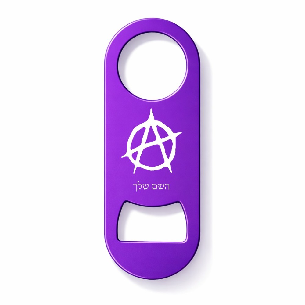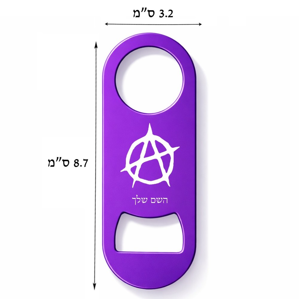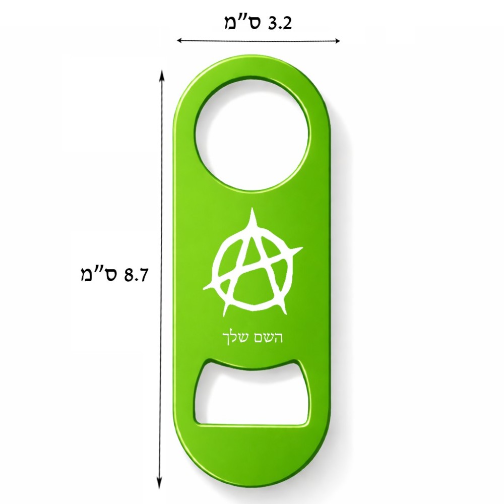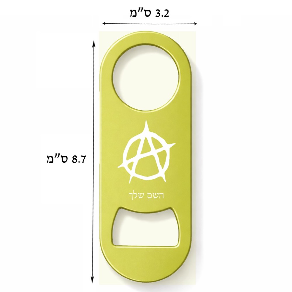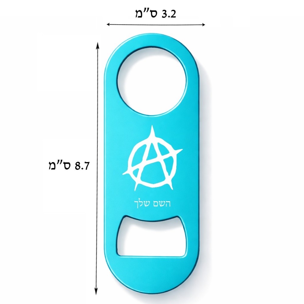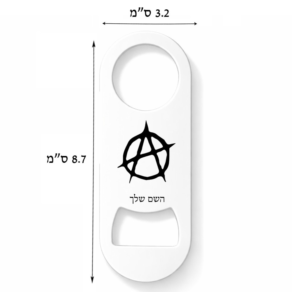 פותחן בקבוקים בעיצוב אישי עם השם שלך בעיצוב אנרכיה גודל הפותחן 3.2 × 8.7 ס"מ